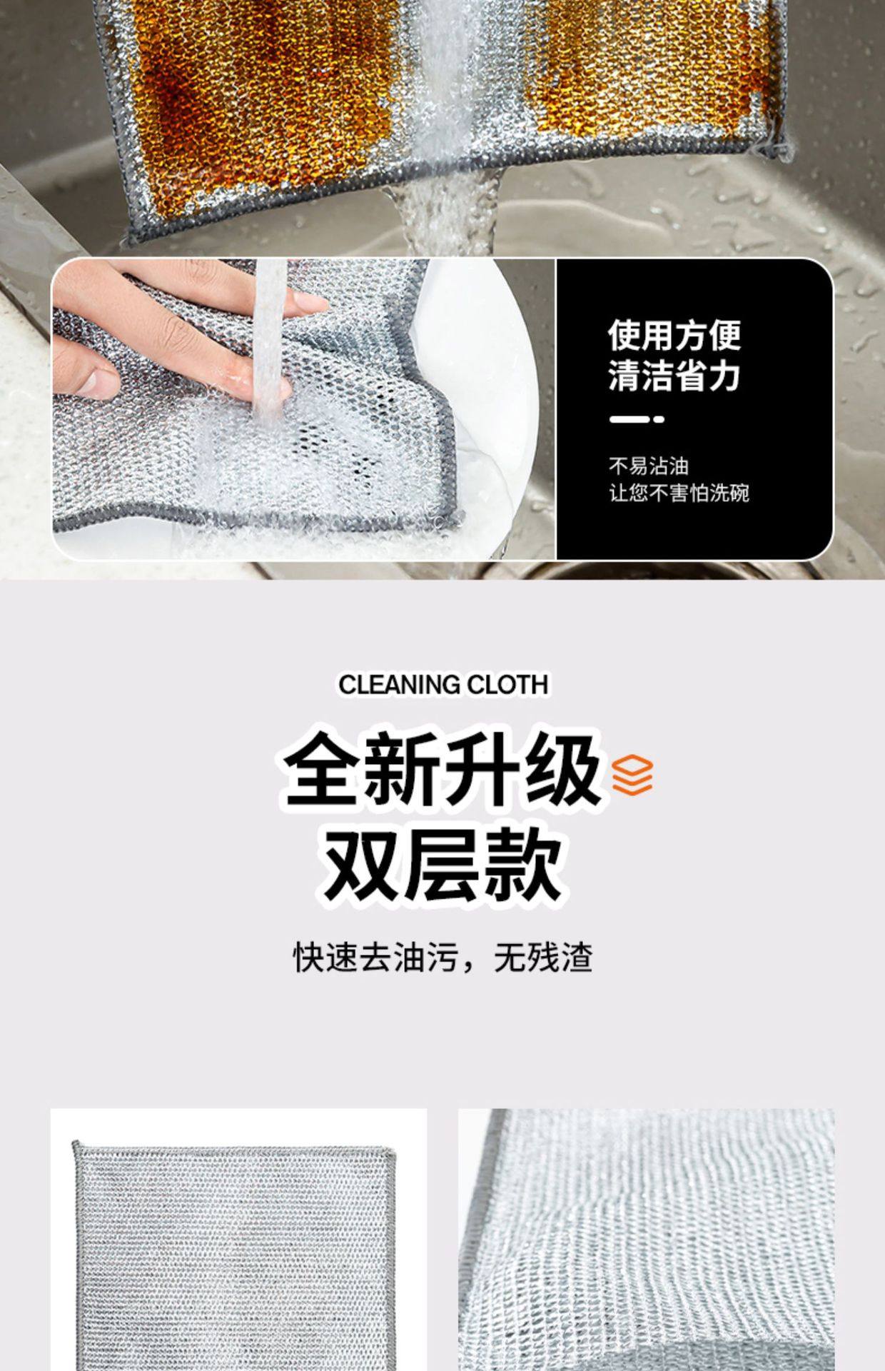 易清洗去污网格刷锅钢丝强力家用洗碗耐磨双面不沾油洗碗布抹布
