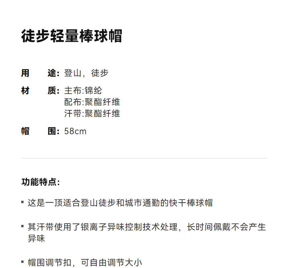 KAILAS凯乐石 户外运动 徒步轻量棒球帽 KF2461502【Z】