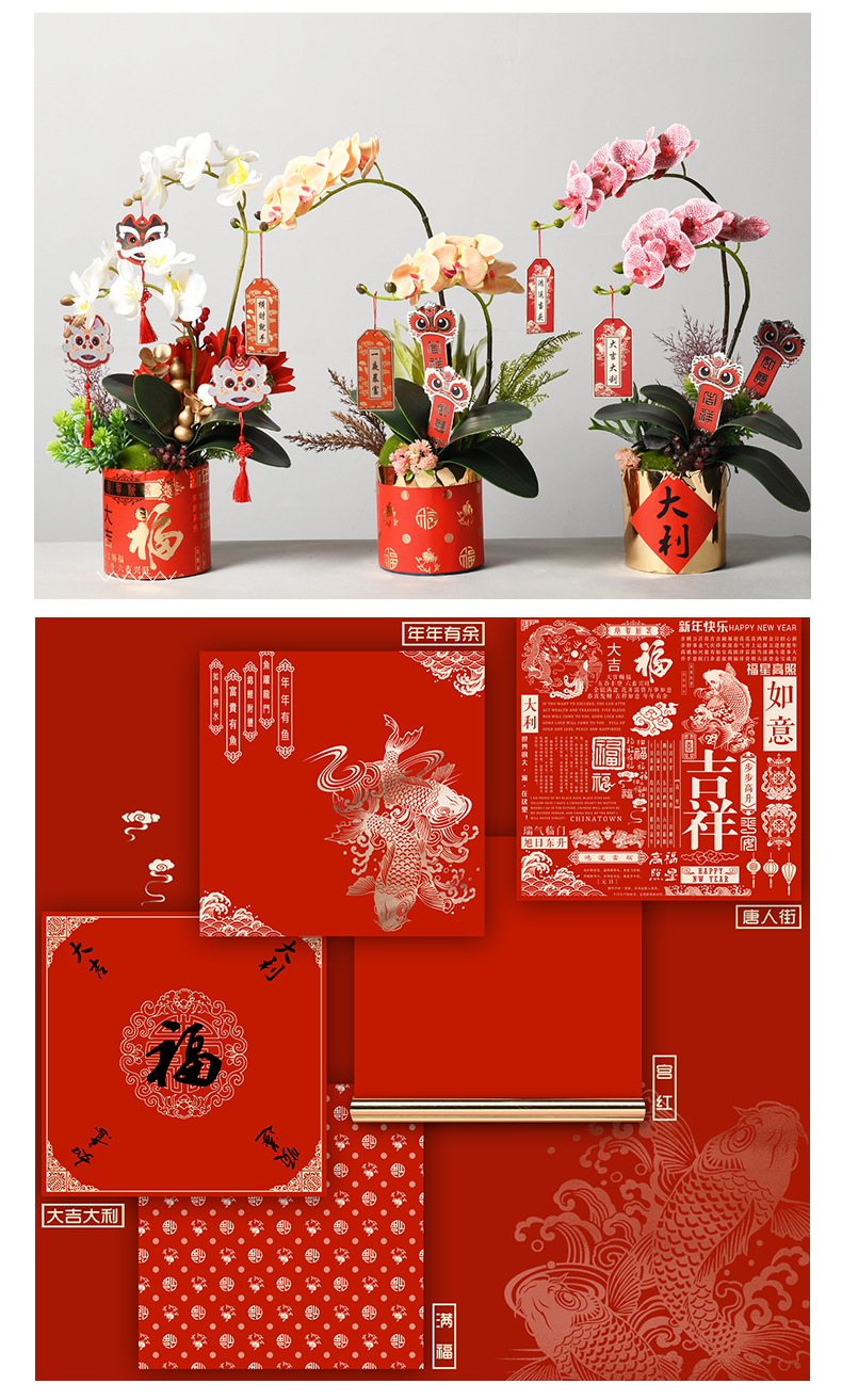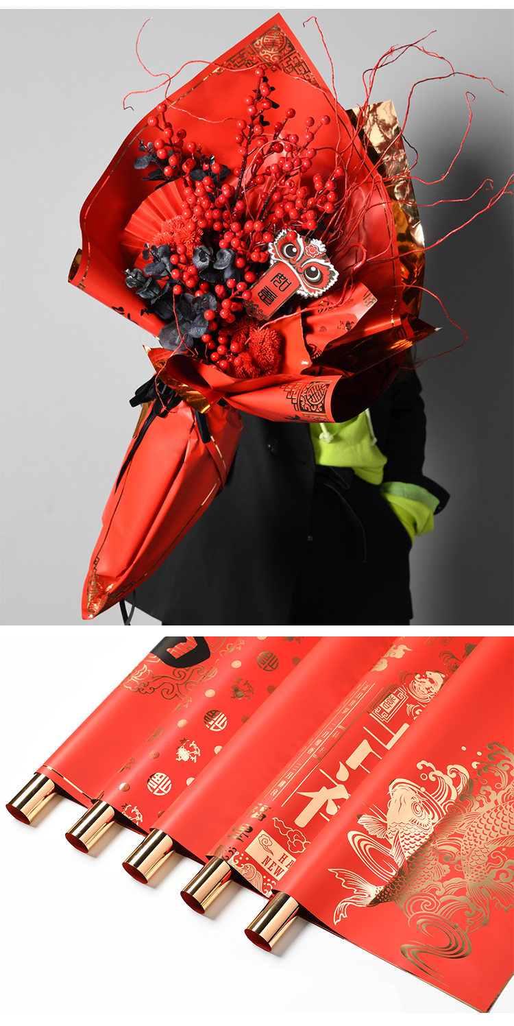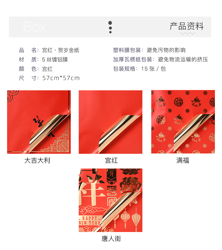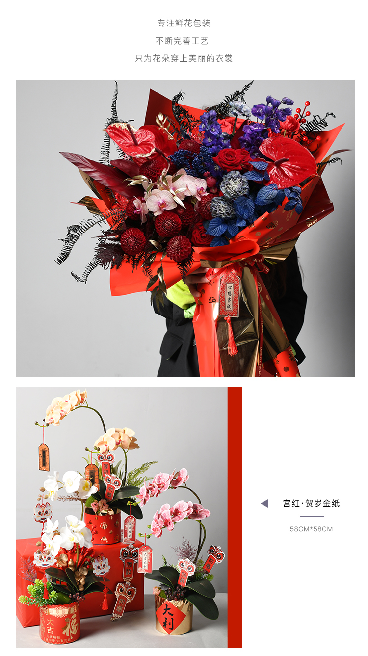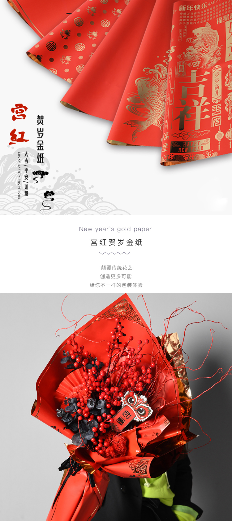 *【新年包装纸】贺岁金纸(宫红)(15张/包 100包/件)57*57cm