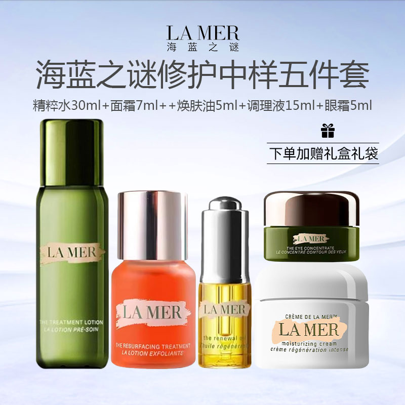 【送礼盒礼袋】LA MER/海蓝之谜 修护中样五件套(精萃水30ml+焕肤油5ml+调理液15ml+海蓝之谜面霜7ml+眼霜5ml)