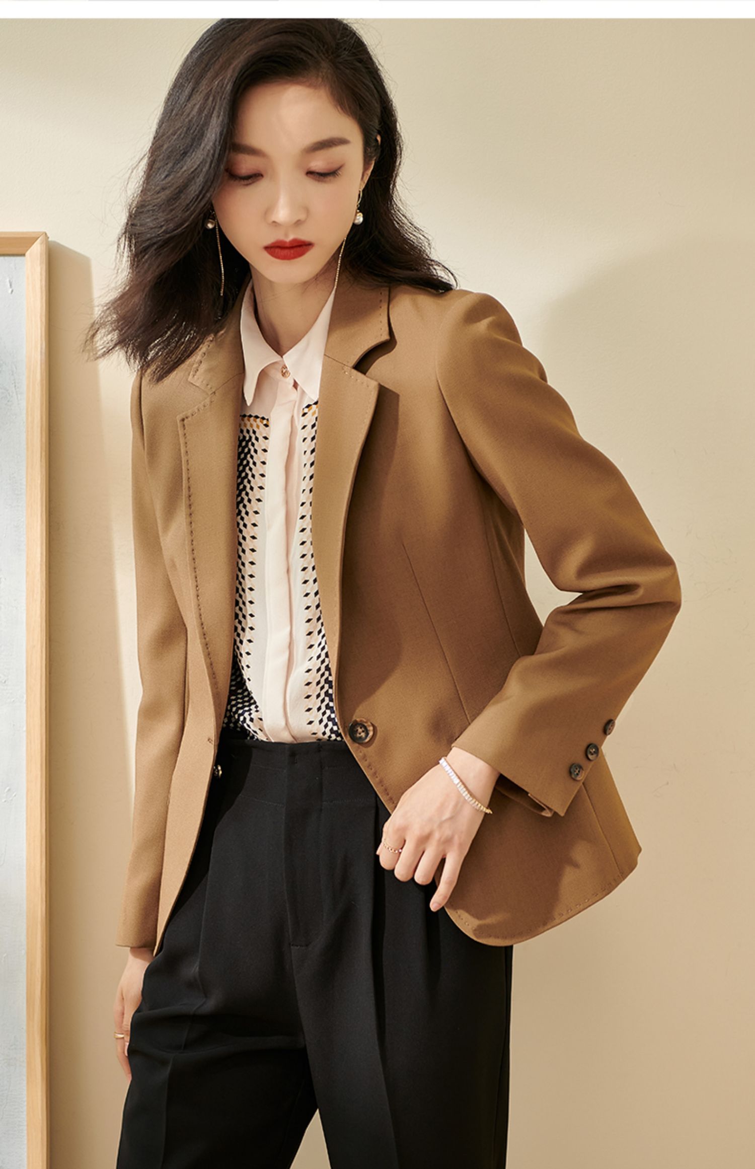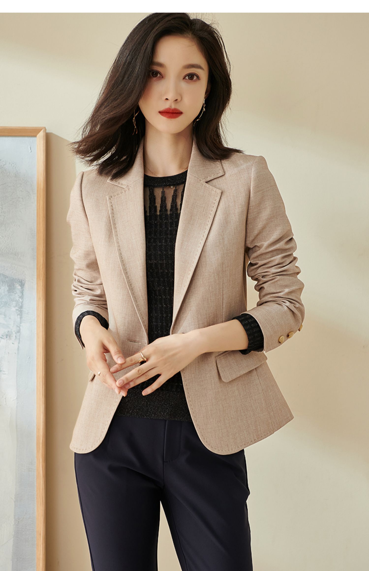 静奢奶茶色通勤职业小西装外套2025新款春季时尚气质修身知性西服1683