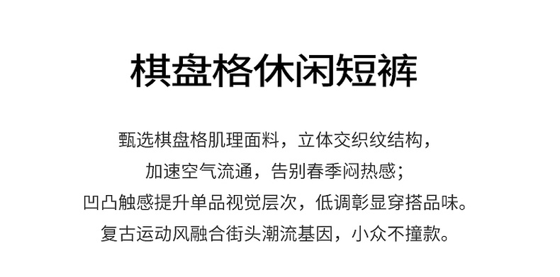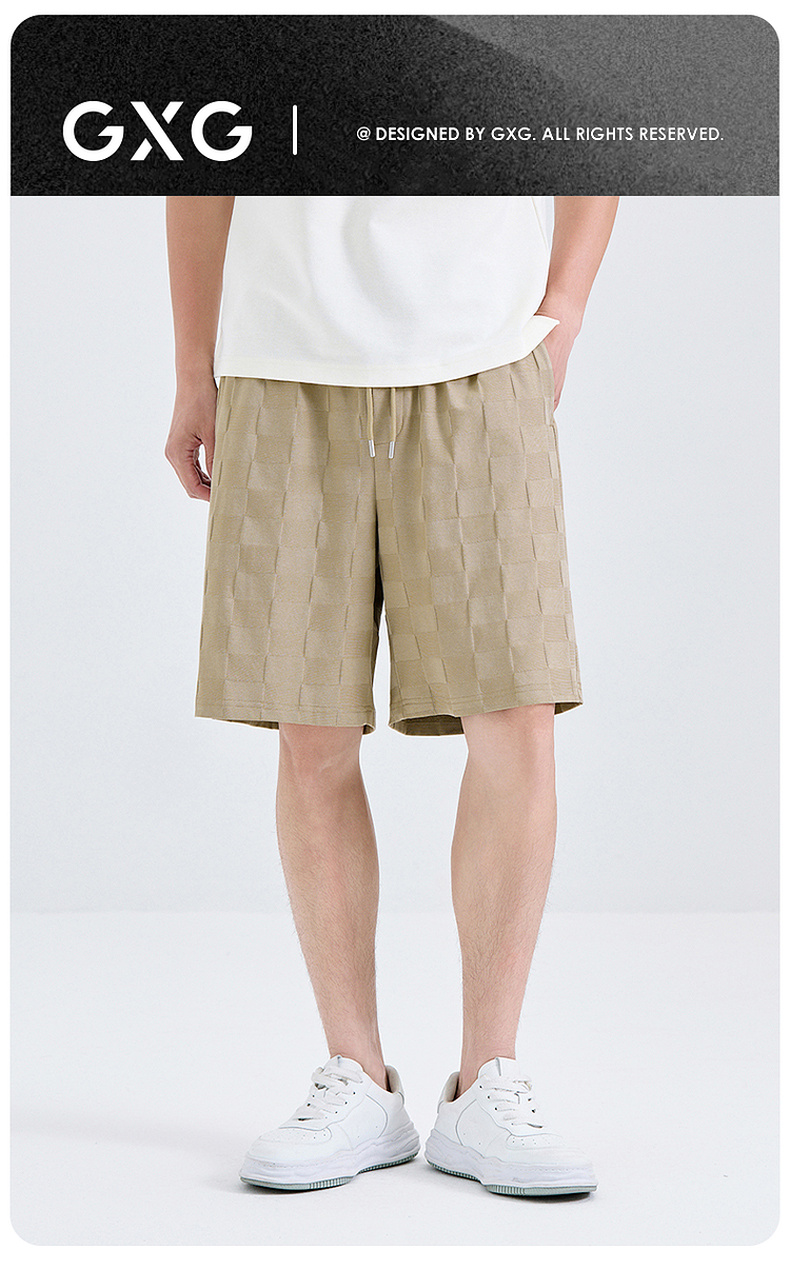 GXG男装【棋盘格】25夏季时尚松紧腰五分裤轻薄透气男式休闲短裤K&C