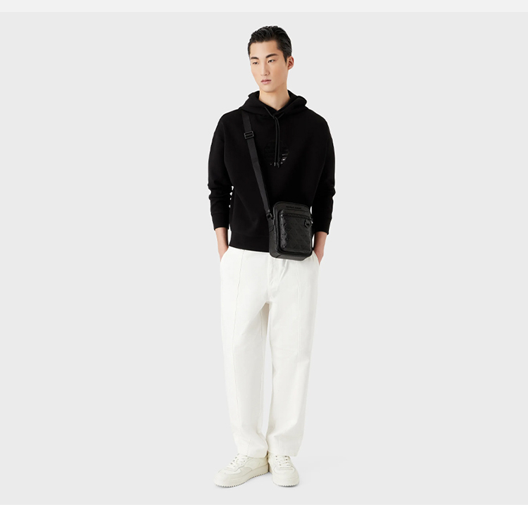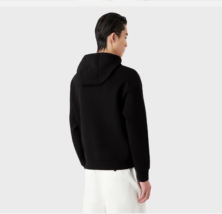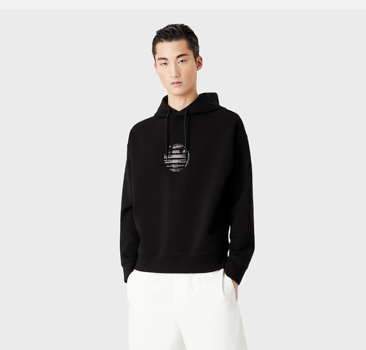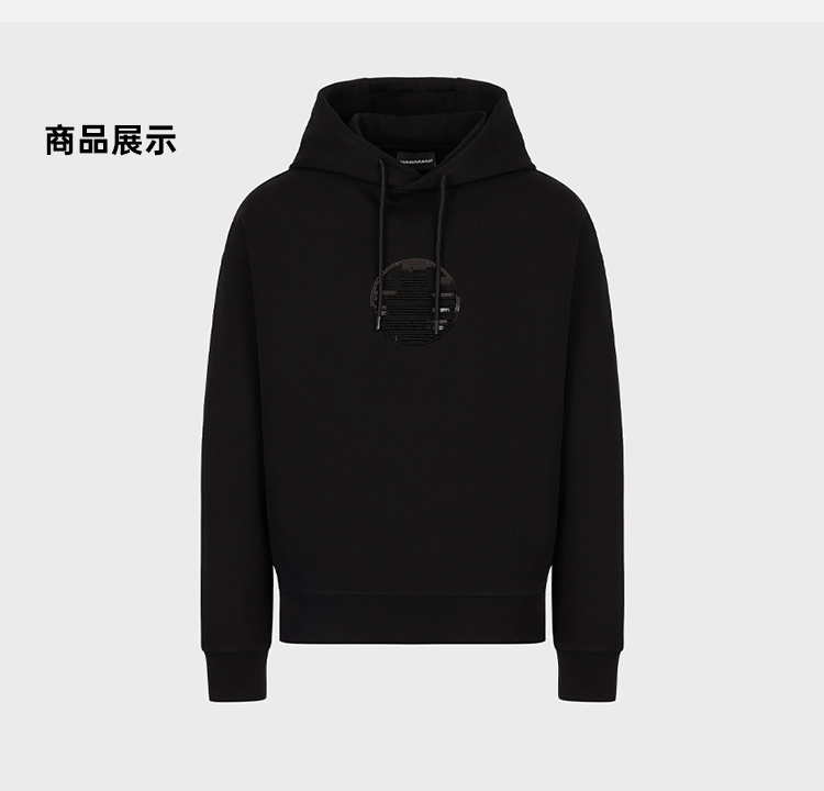 EMPORIO ARMANI 阿玛尼 男士棉质装饰亮片双面针织连帽卫衣 黑色 3R1MBI 1JHSZ 0044