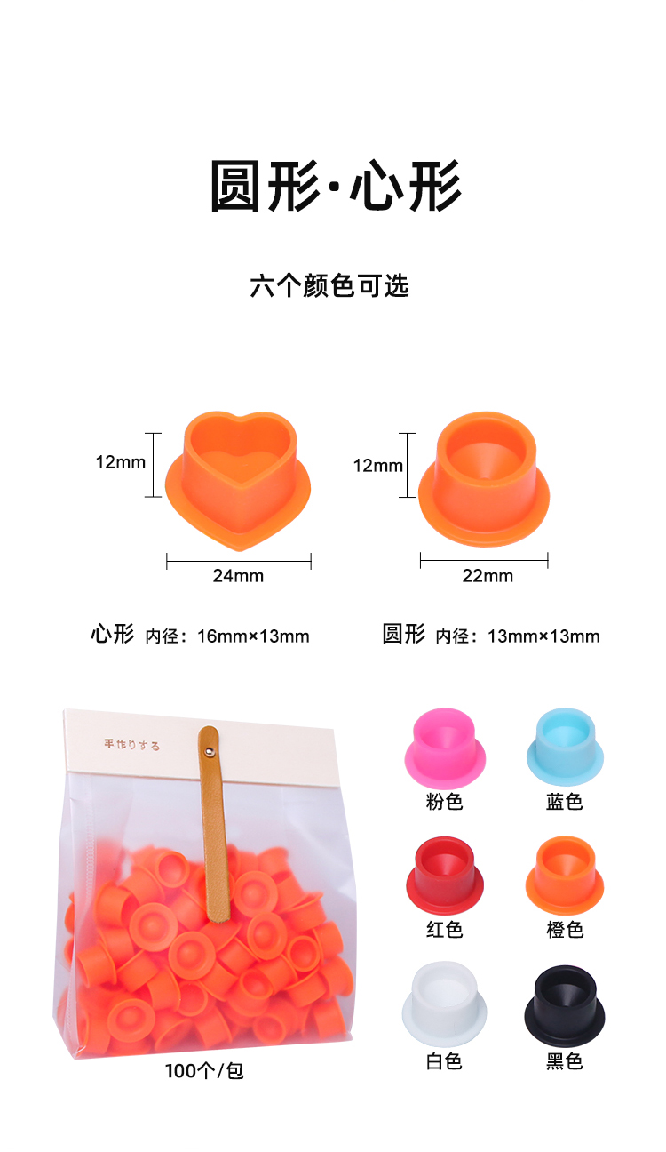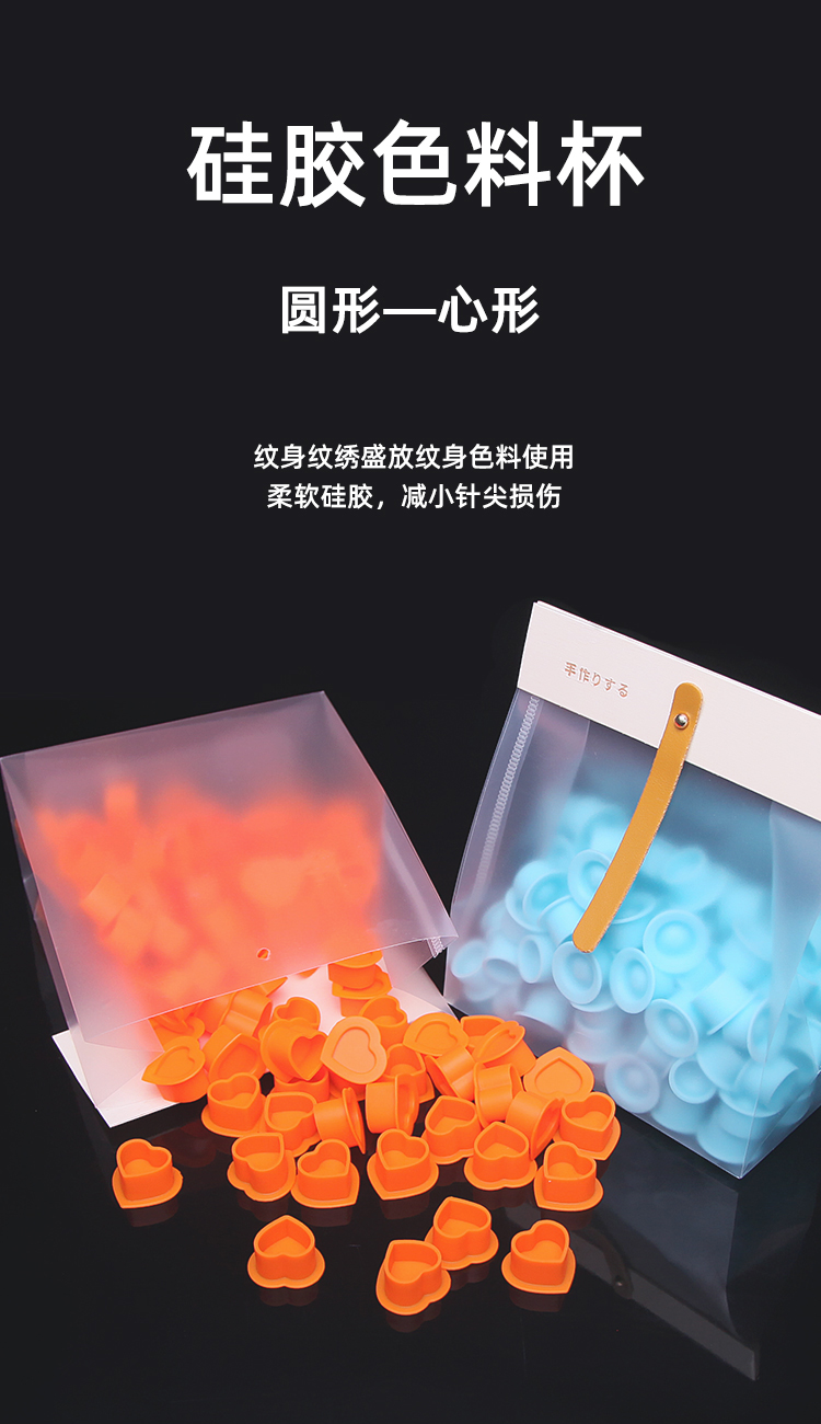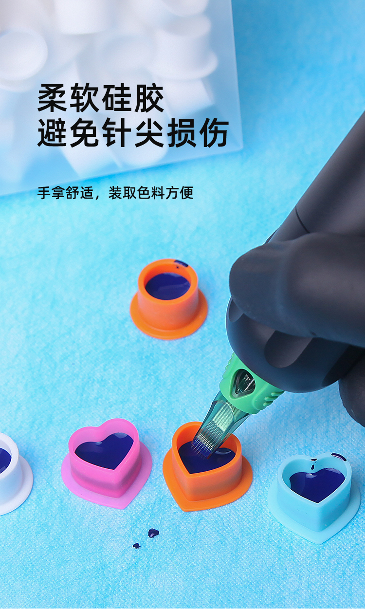 硅胶纹身色料杯心型圆型一整包100个装不伤针尖惊蛰刺青器材