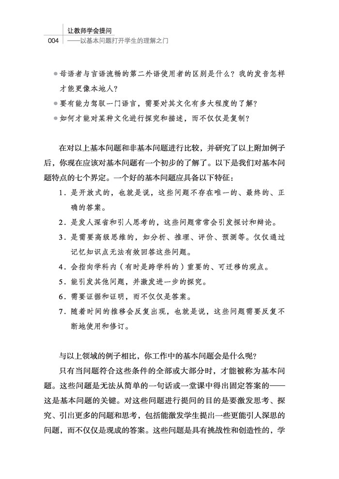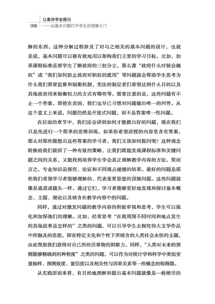 从问题的设计到问题的使用,从具体学科提问案例到教师提问中的常见问题,本书一一道来,必能帮助教师掌握课堂提问策略,以基本问题打开学生的理解之门。