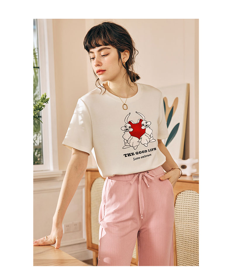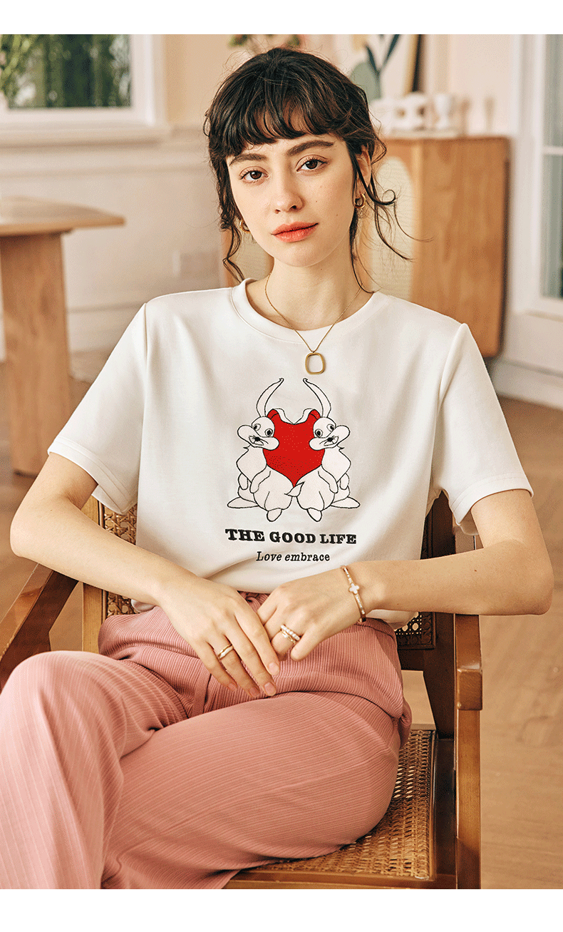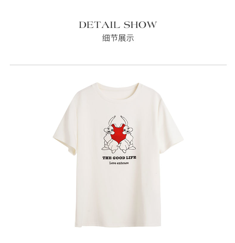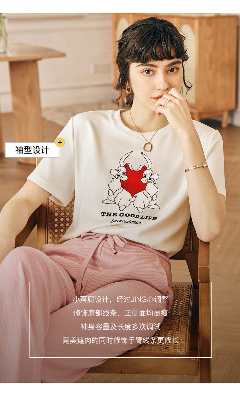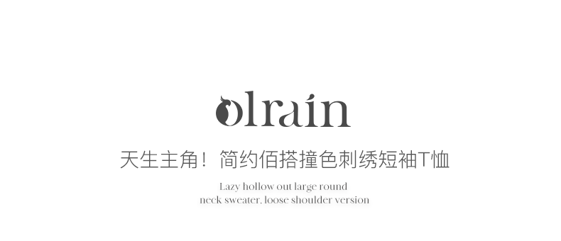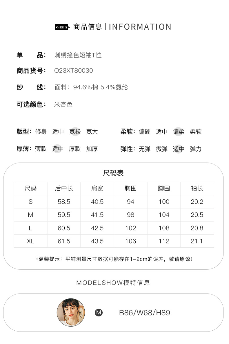 OLrain欧芮儿法式短袖T恤女夏季2023年新款重工刺绣撞色正肩上衣