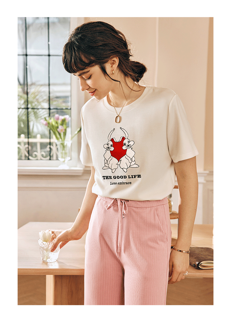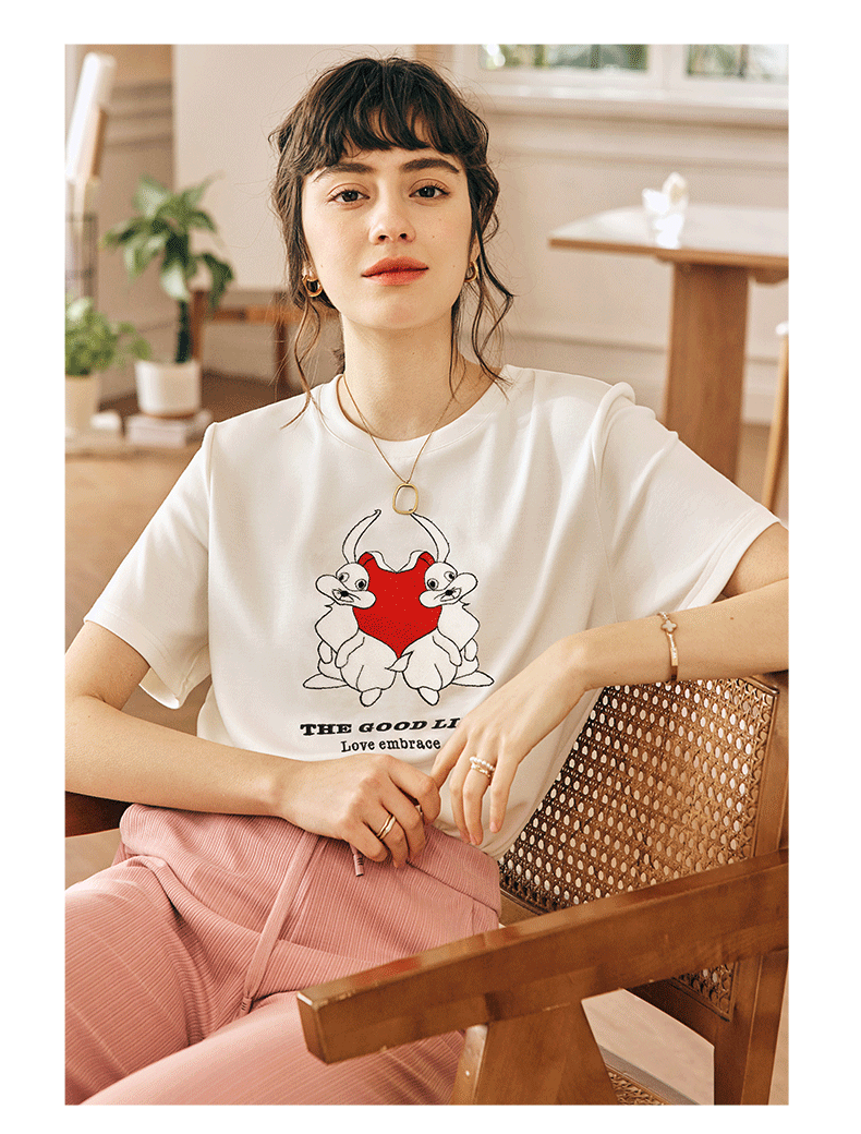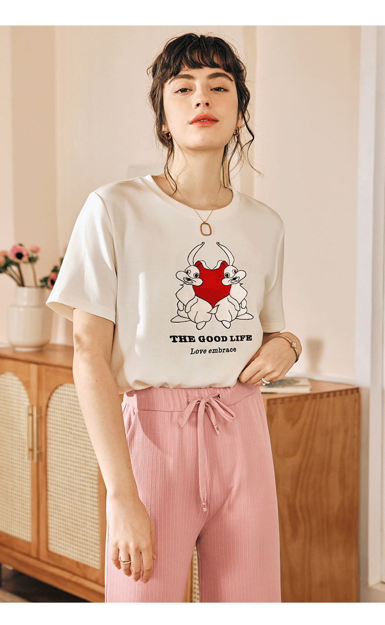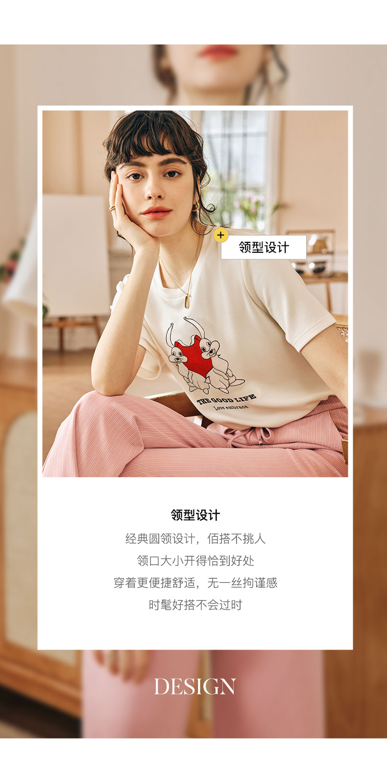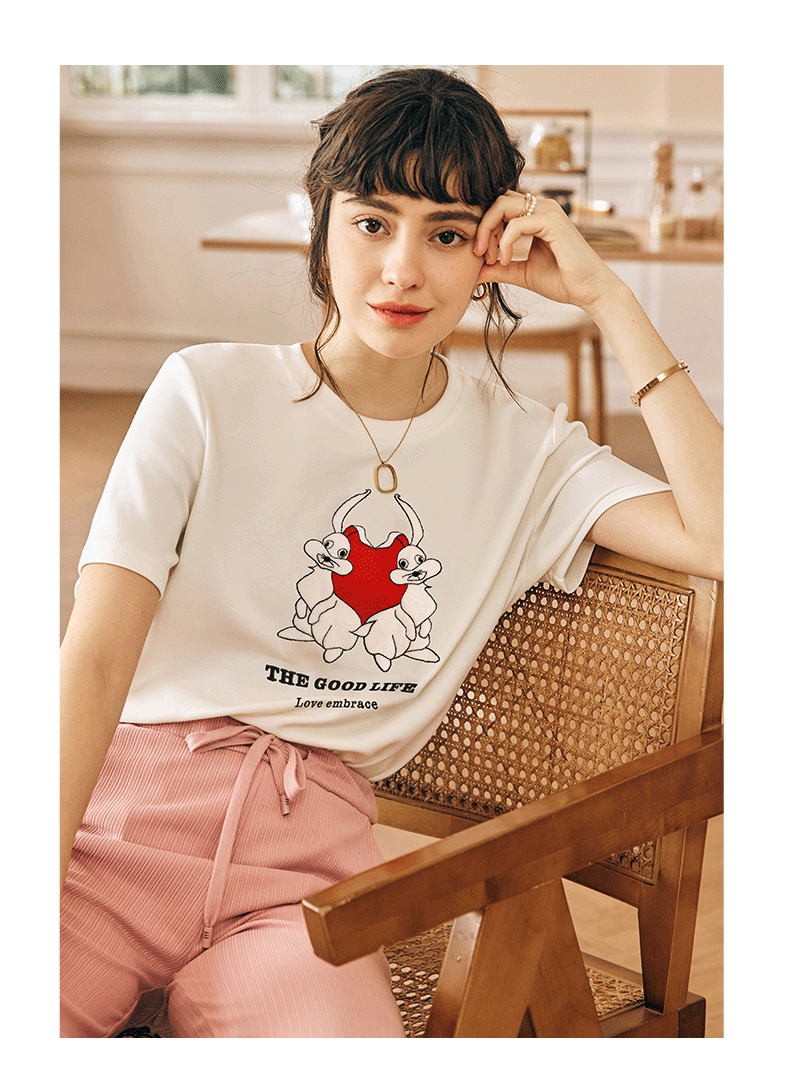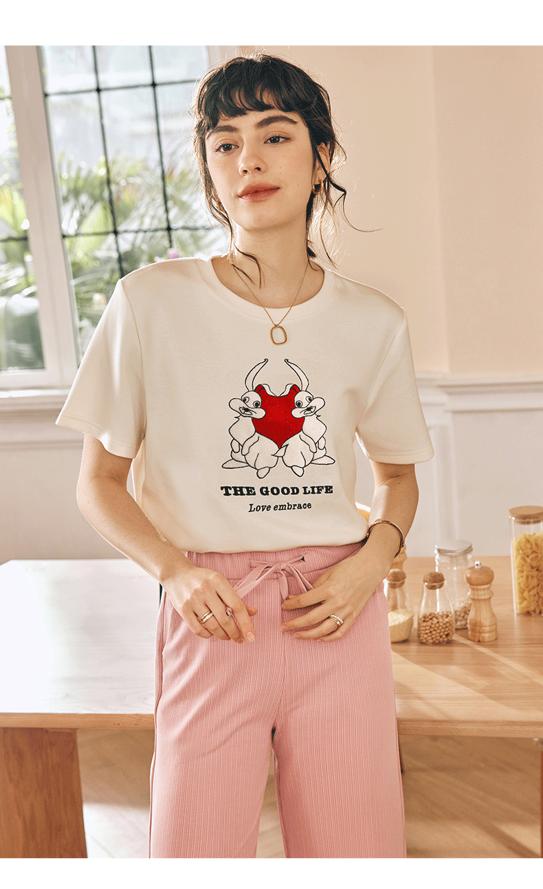 OLrain欧芮儿法式短袖T恤女夏季2023年新款重工刺绣撞色正肩上衣