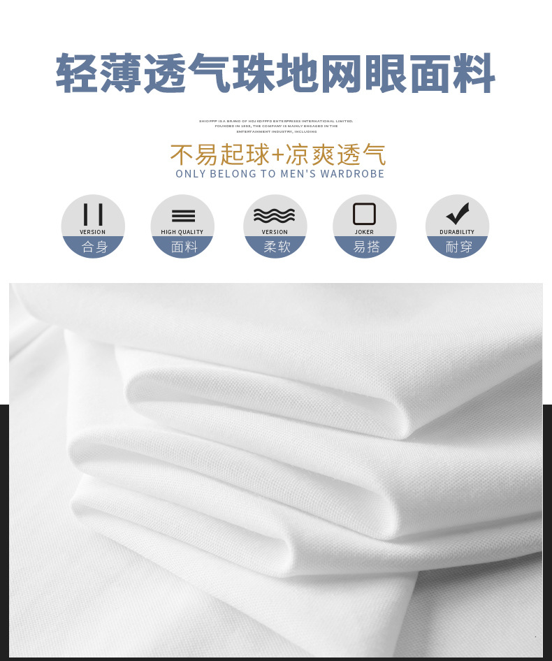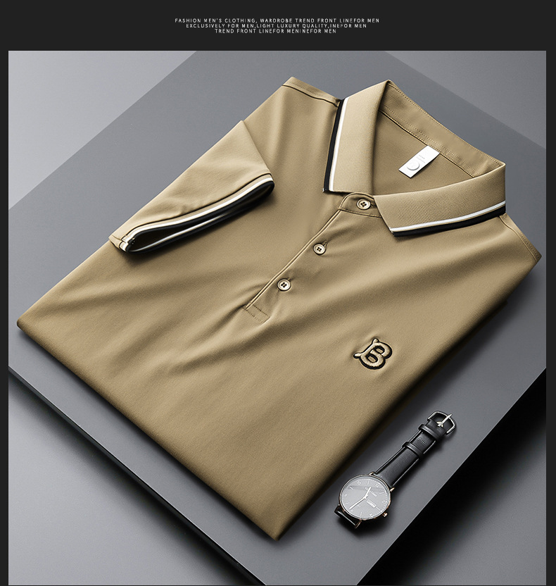 「三款配色!冰丝光珠地面料」夏季薄款冰丝光珠地商务休闲polo衫 男短袖修身刺绣字母白色t恤男上衣