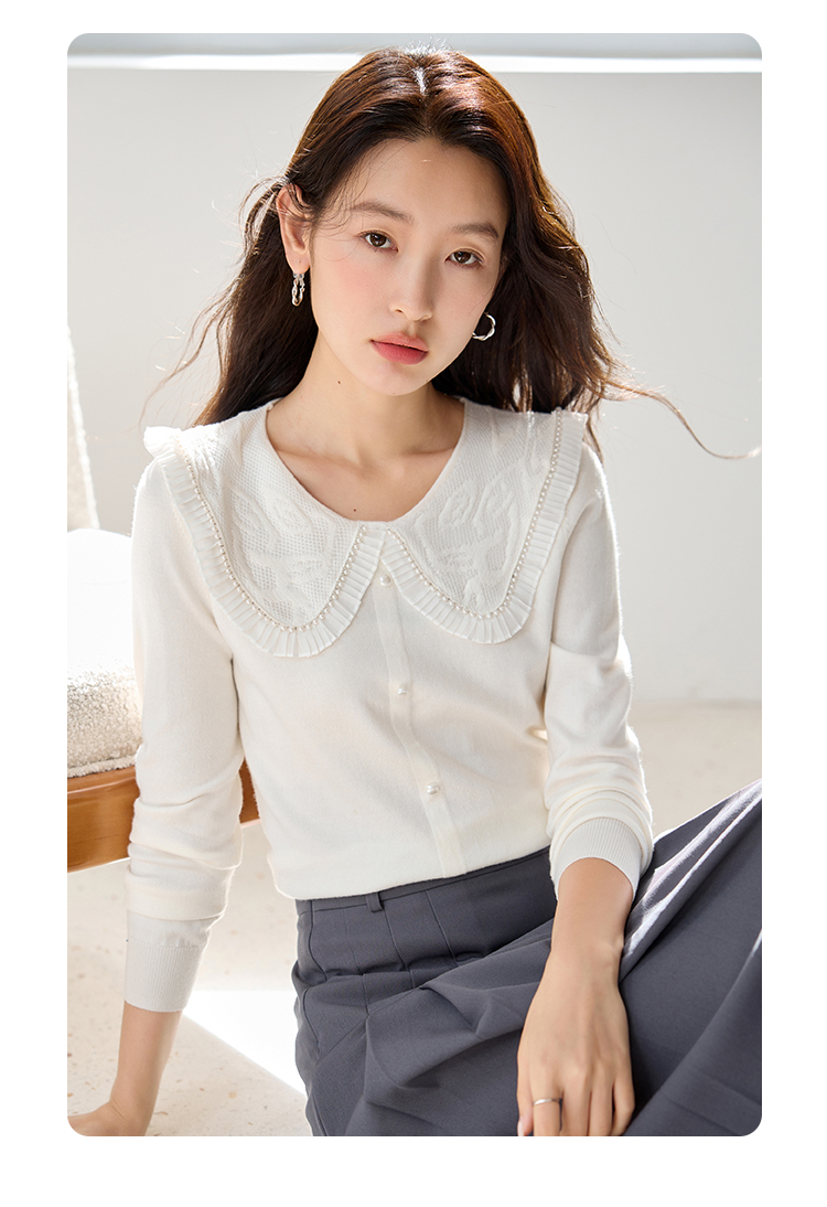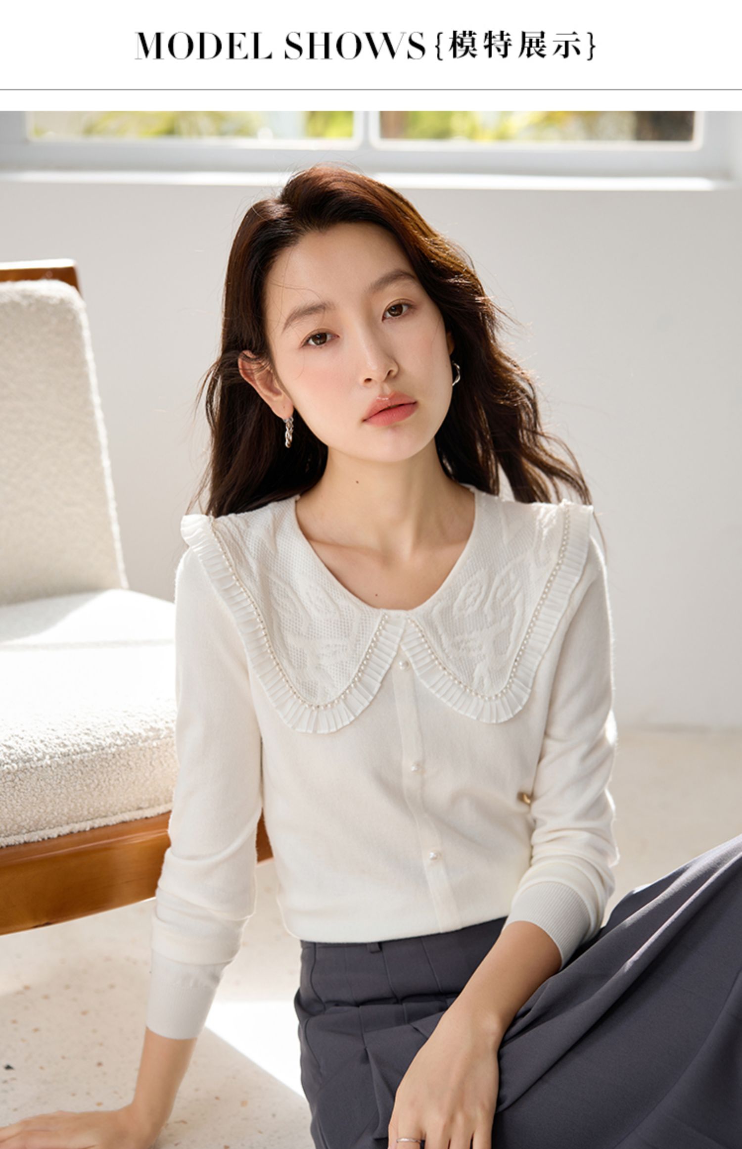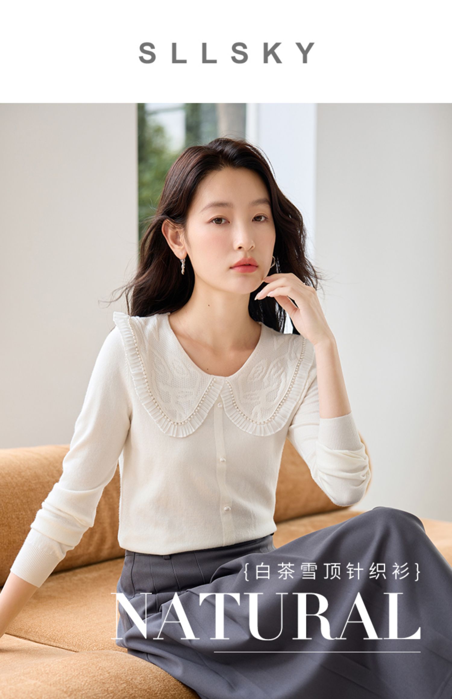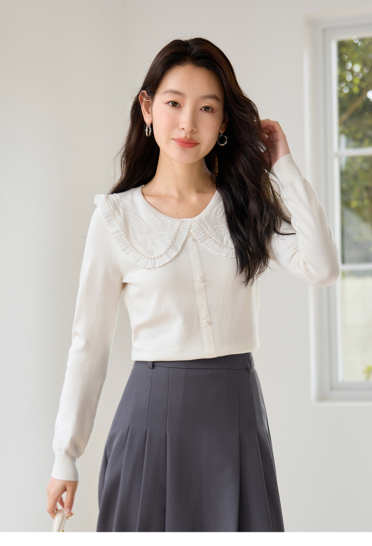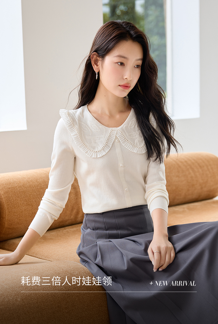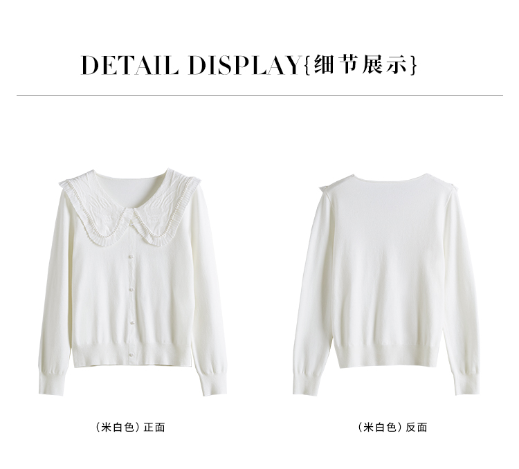 【专属特价】熙世界白色娃娃领针织衫2025秋季新款法式甜美风羊毛打底衫上衣