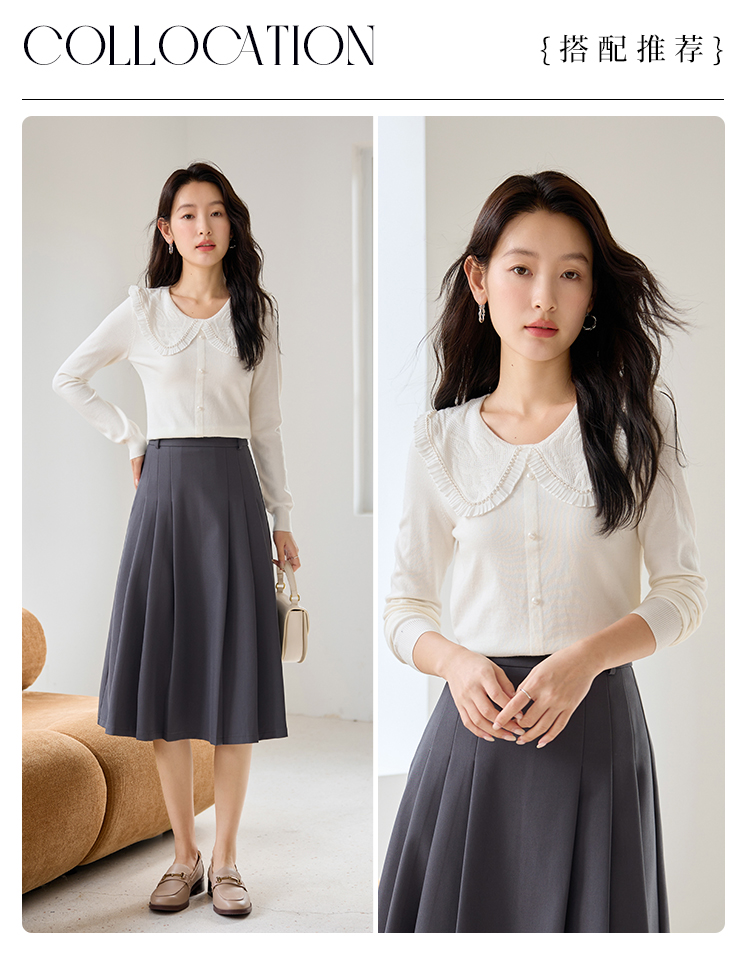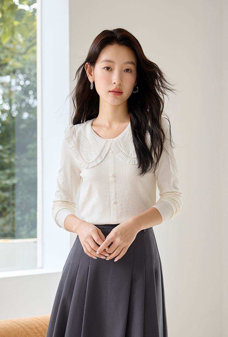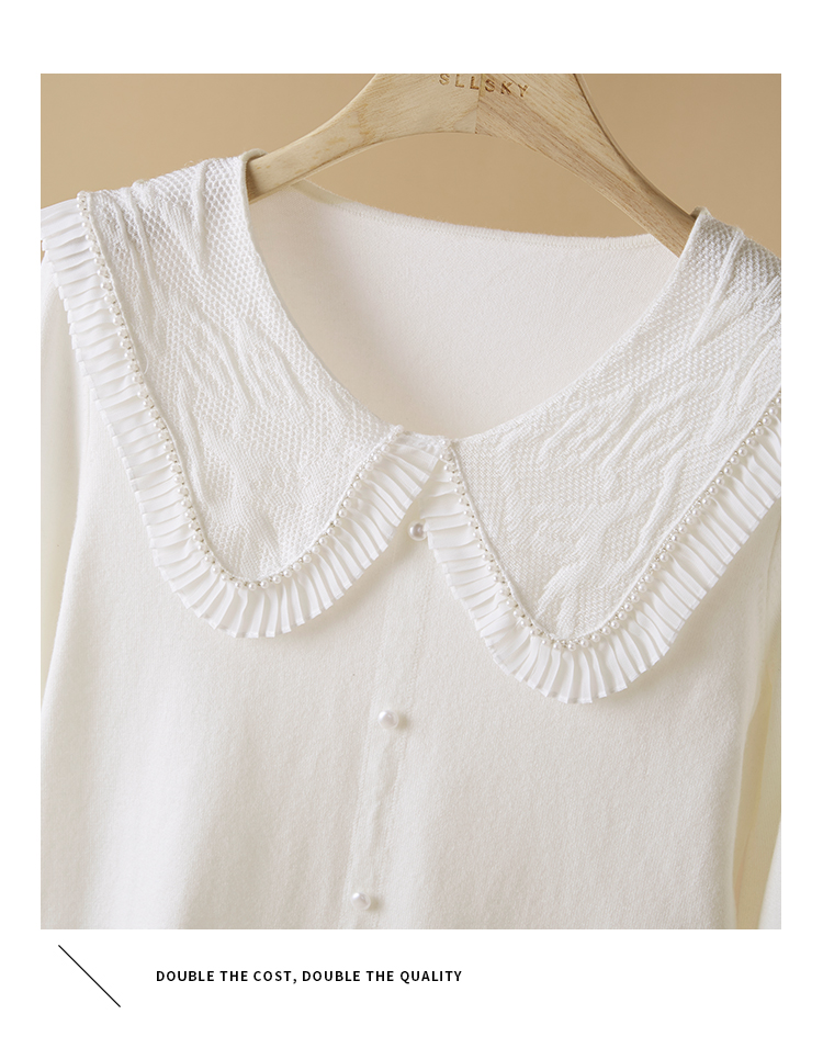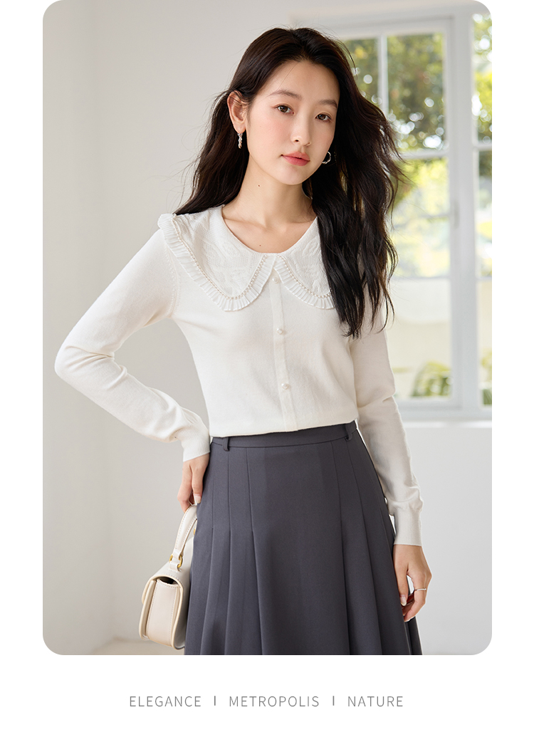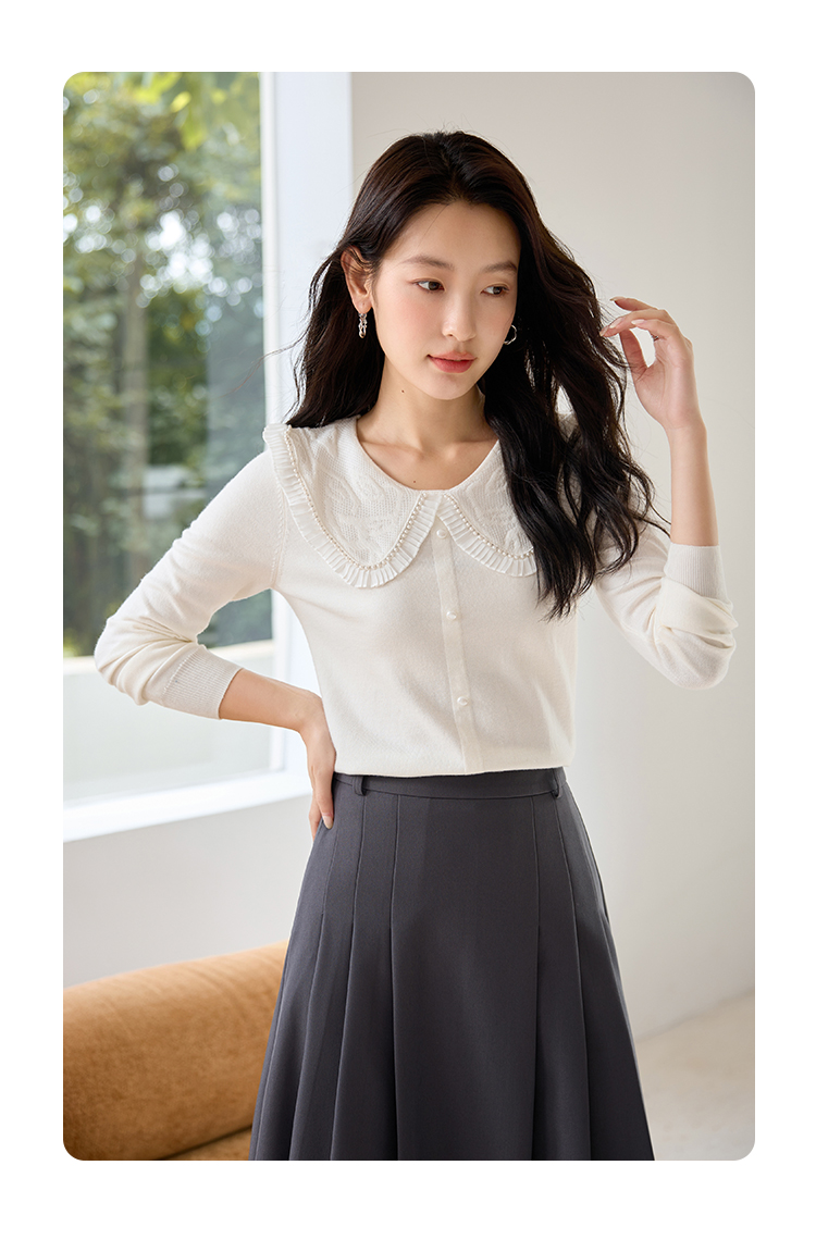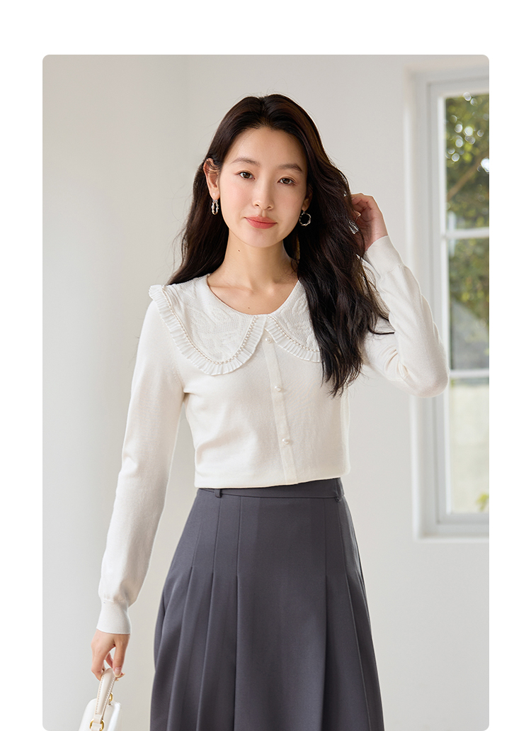 【专属特价】熙世界白色娃娃领针织衫2025秋季新款法式甜美风羊毛打底衫上衣