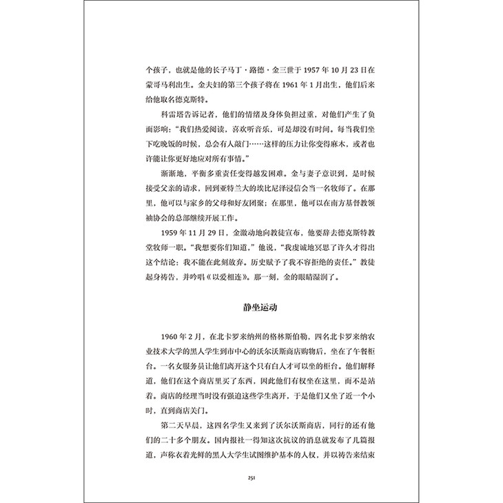 马丁·路德·金将他的一生奉献给了非洲裔美国人平权运动。他从小生活在种族隔离的环境中,但始终被家人和朋友的爱包围。长大后,他也把爱传递给了更多的人:他多次领导抗议运动和示威游行,鼓舞非洲裔美国人为其权利不懈斗争,发表《我有一个梦想》的演说,促使美国国会通过 1964 年《民权法案》。马丁·路德·金实现了他的梦想,也改变了世界。