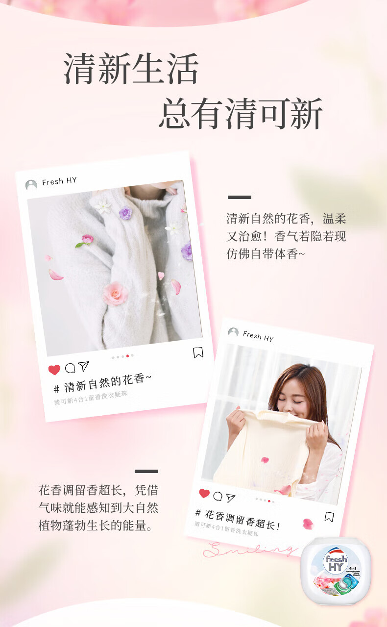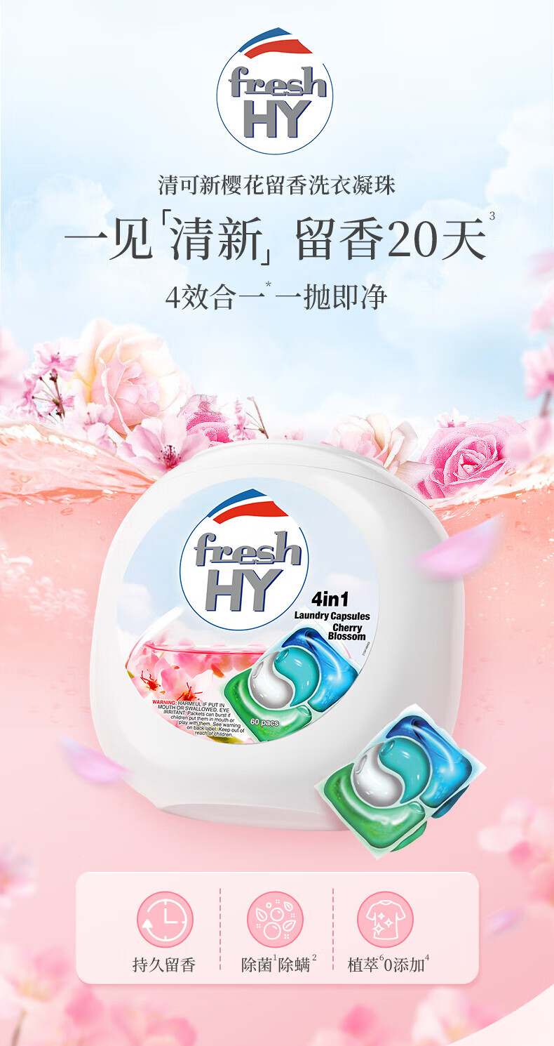 【秒杀】清可新盒装4合1洗衣凝珠(樱花)60粒*10ml
