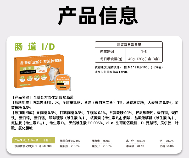 澳滋麦流体处方罐头餐盒肠道猫益生菌肥胖猫口炎专用主食湿粮猫咪