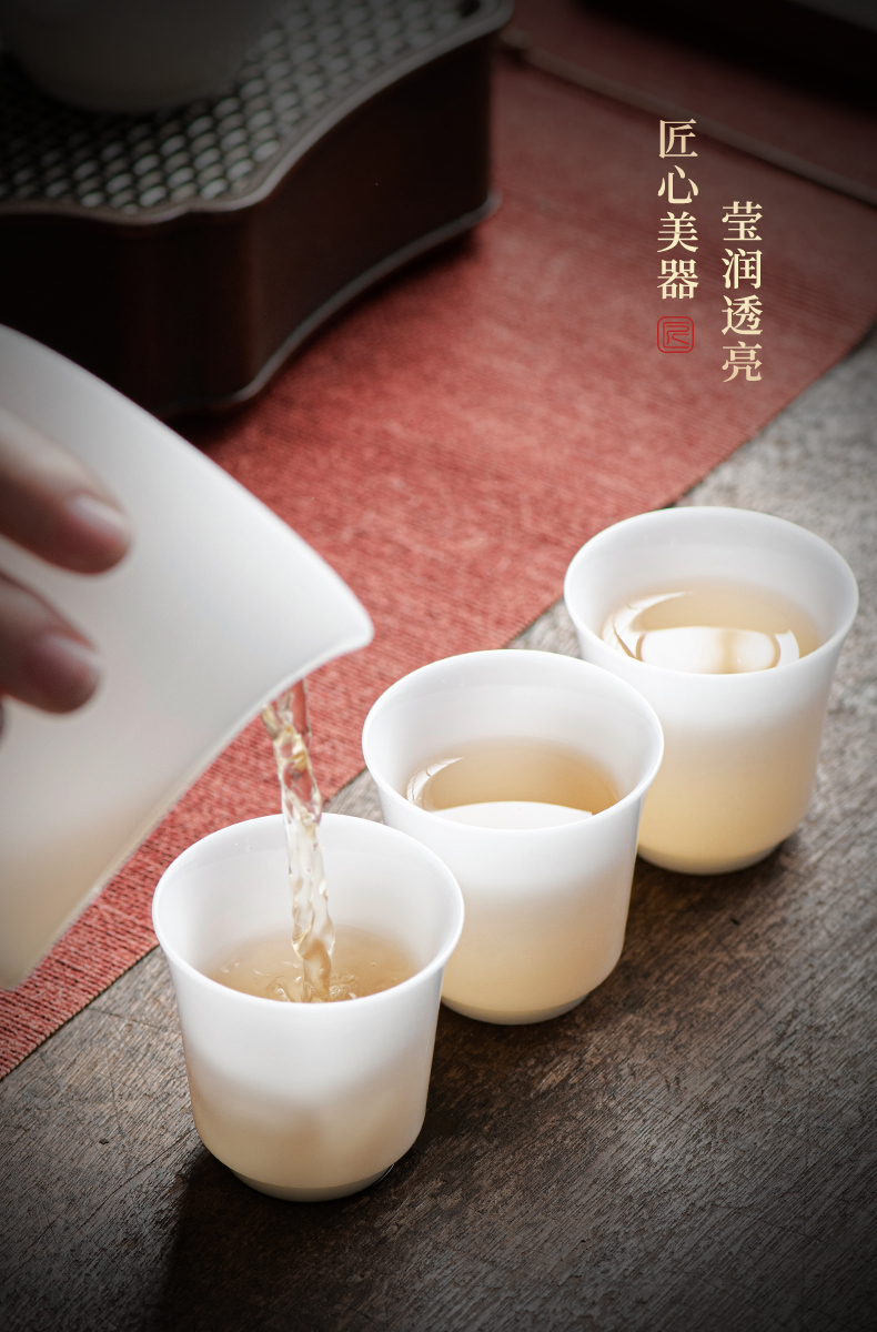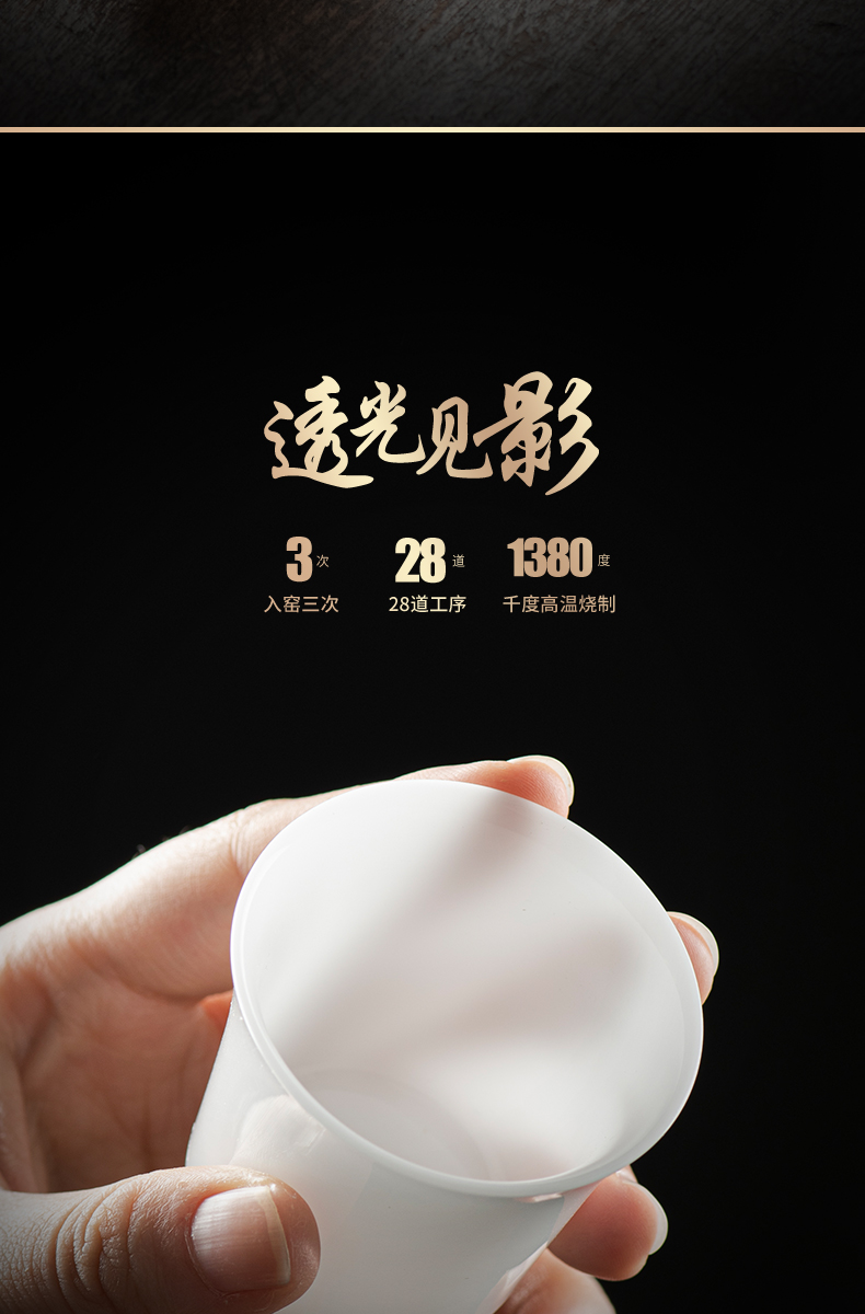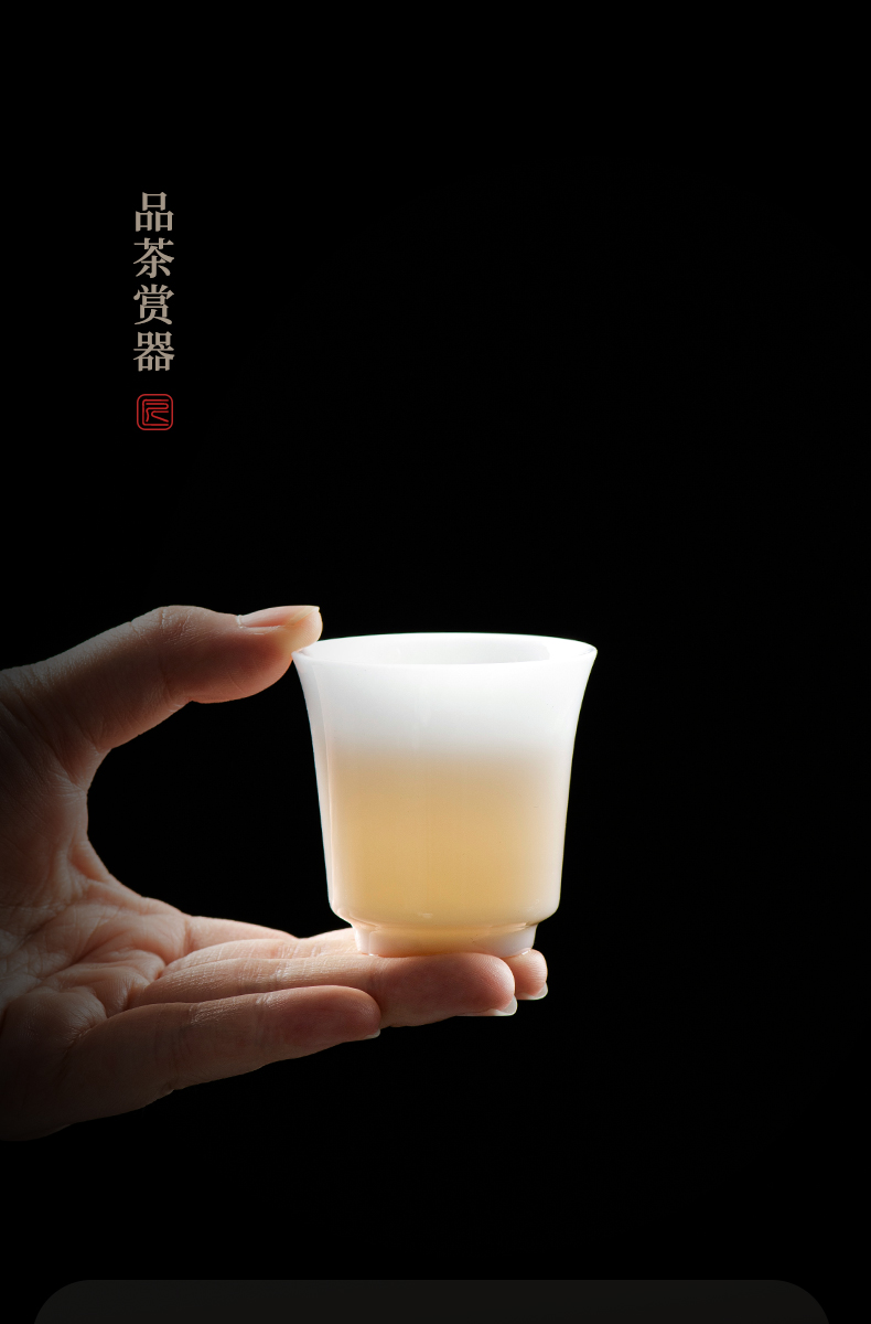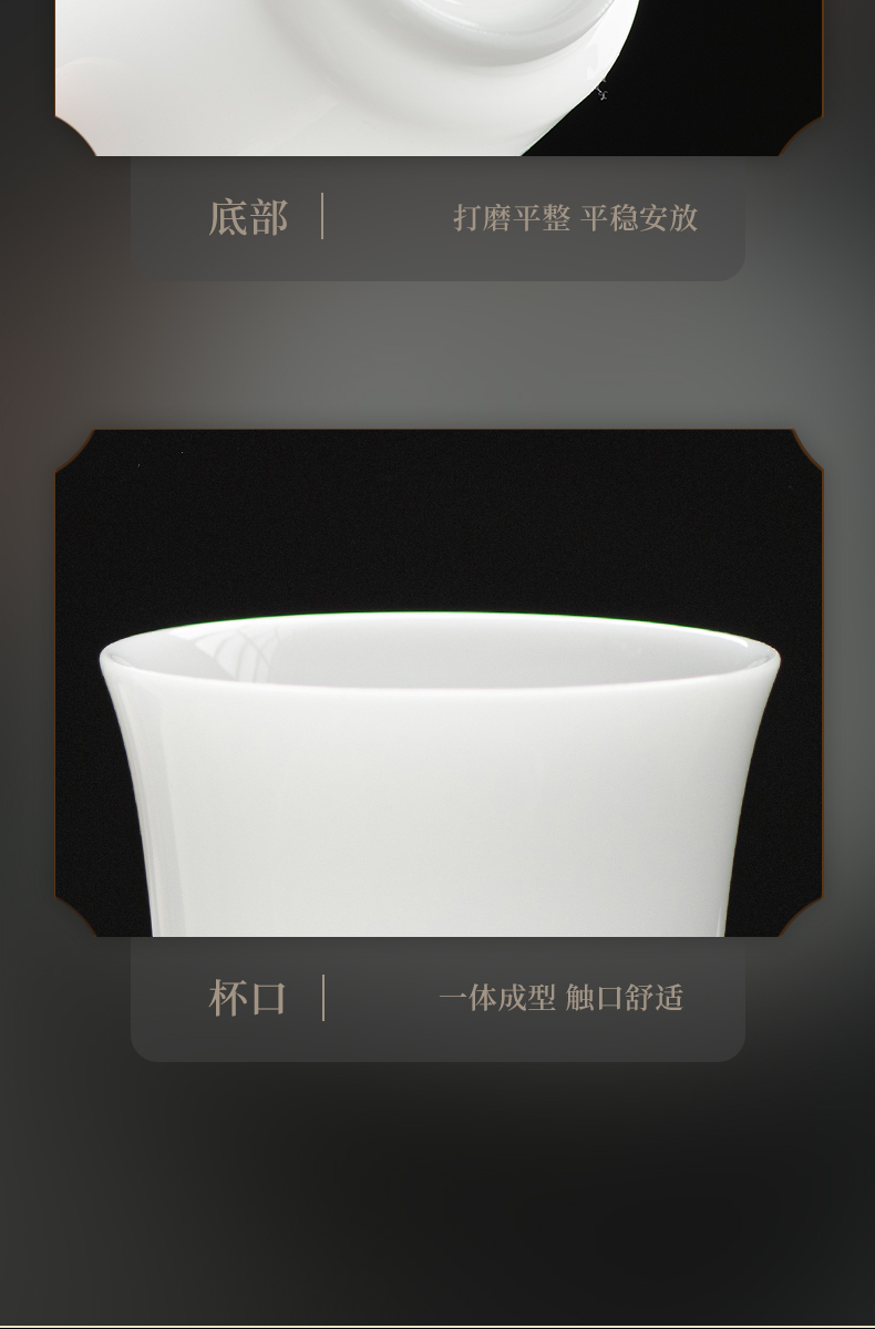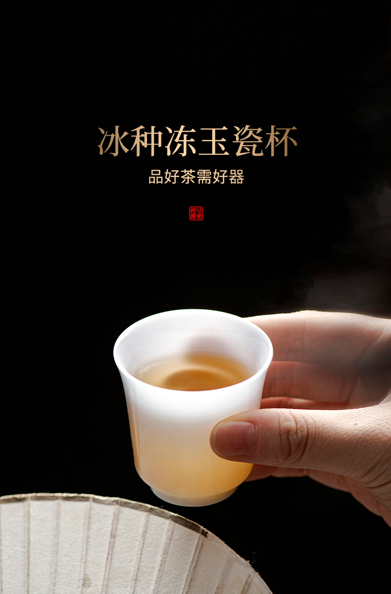 冰种玉瓷一号聚香杯10入 白瓷茶杯羊脂玉功夫陶瓷杯子品茗杯手工