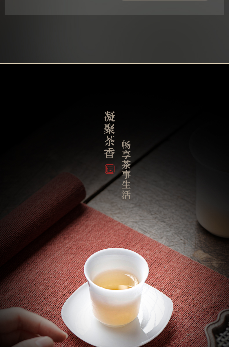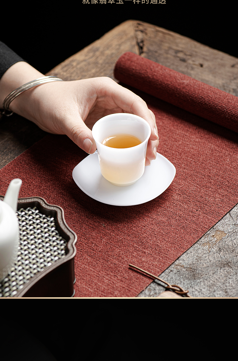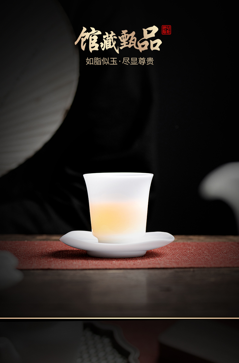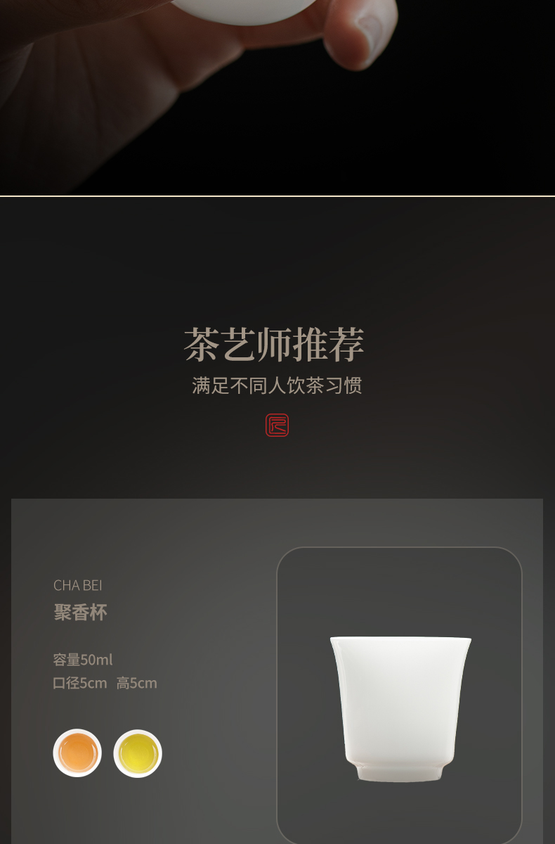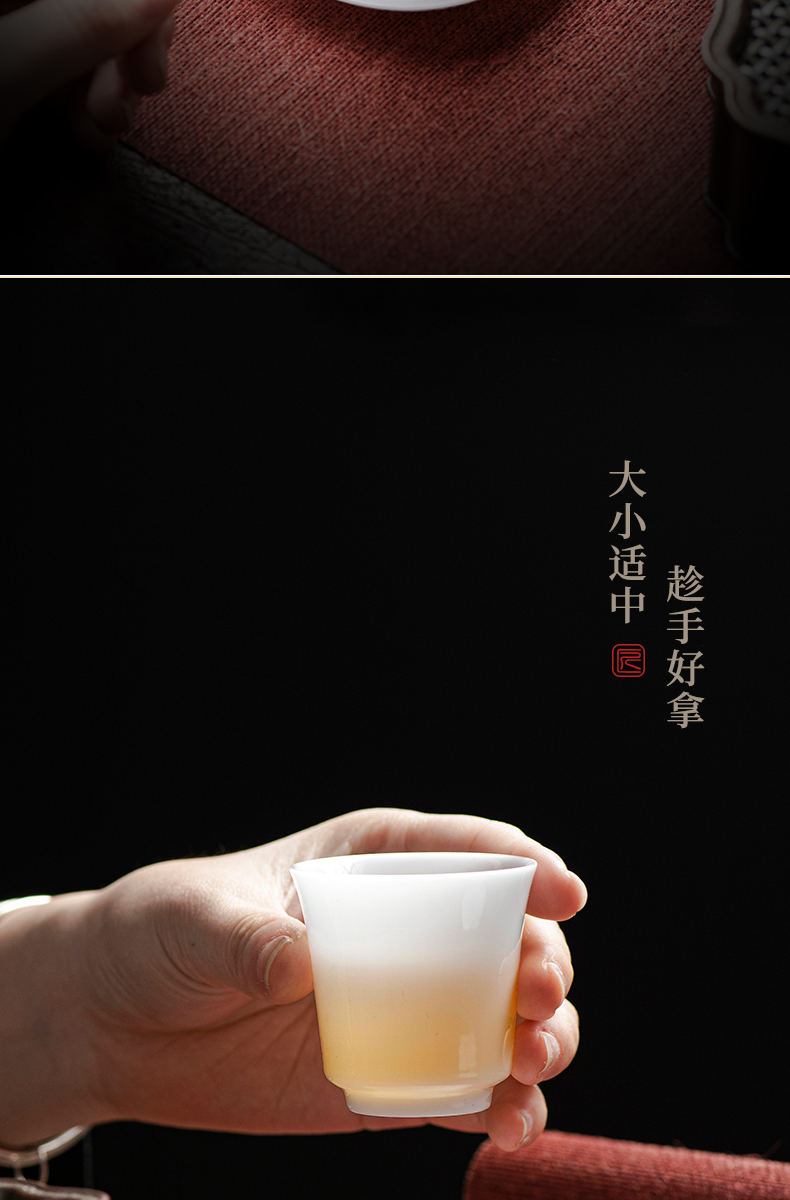 冰种玉瓷一号聚香杯10入 白瓷茶杯羊脂玉功夫陶瓷杯子品茗杯手工