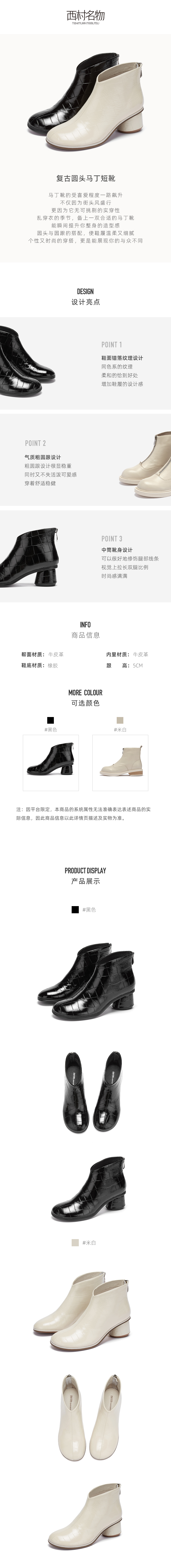 西村名物2020冬季圆头中跟牛皮革新品复古圆头马丁短靴X20DS40381