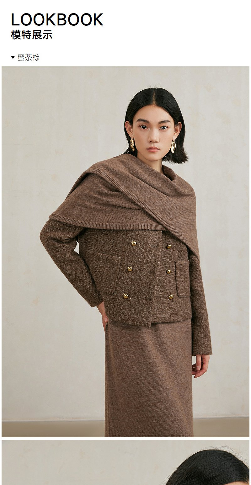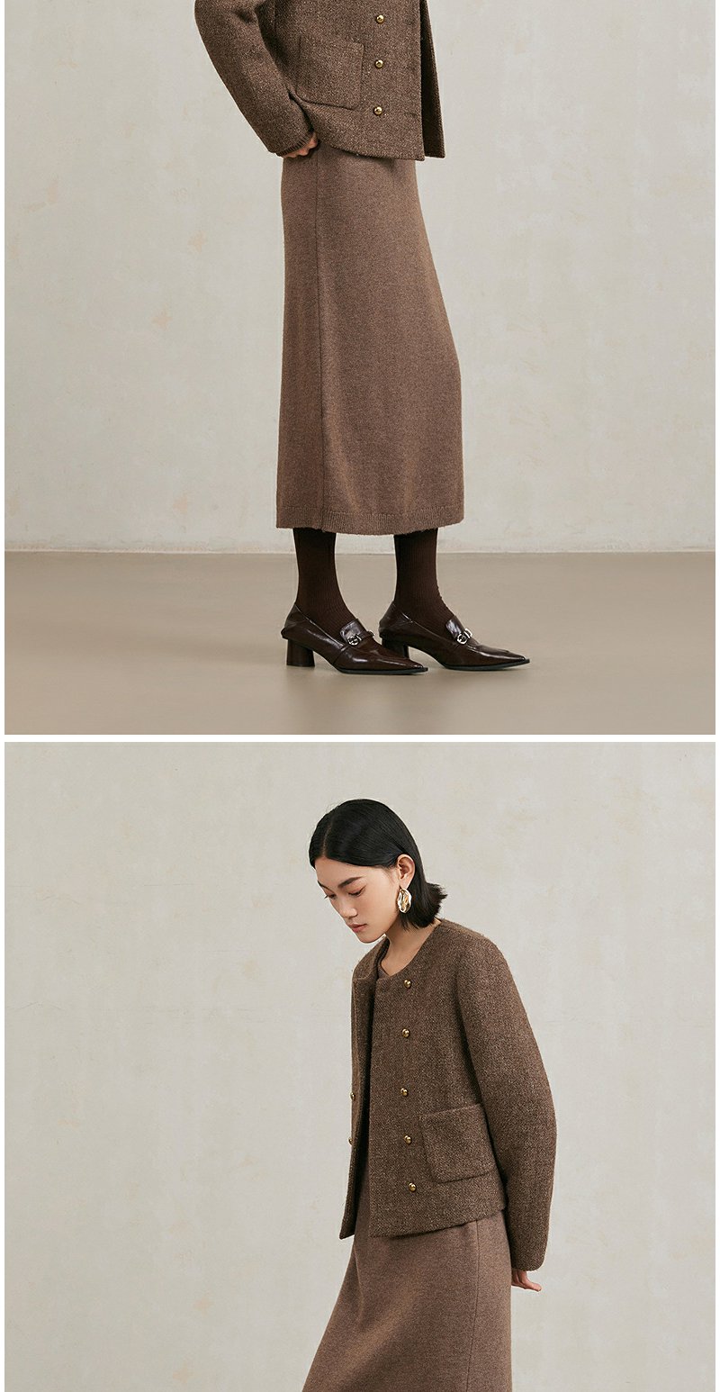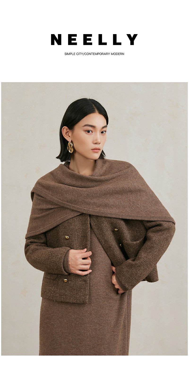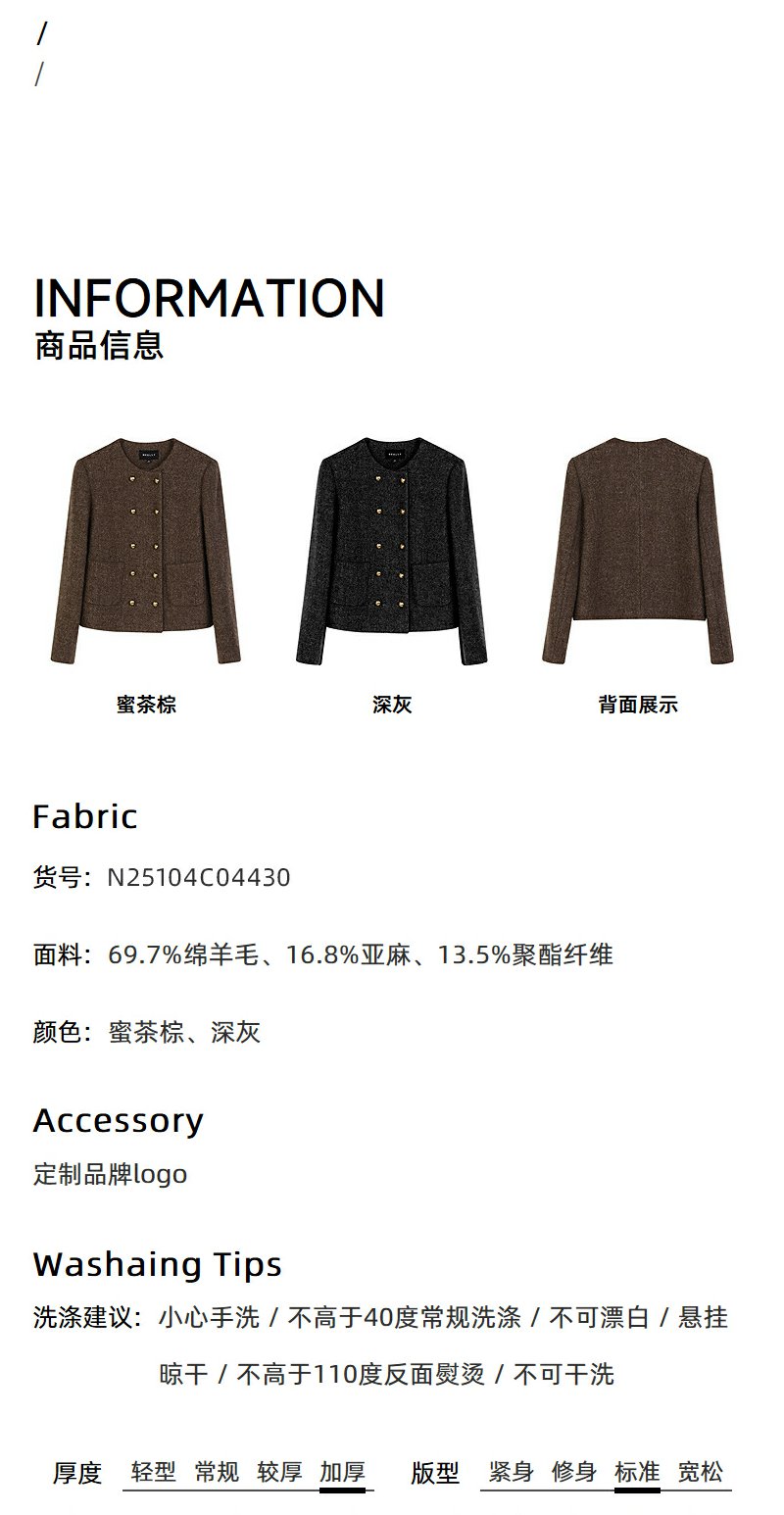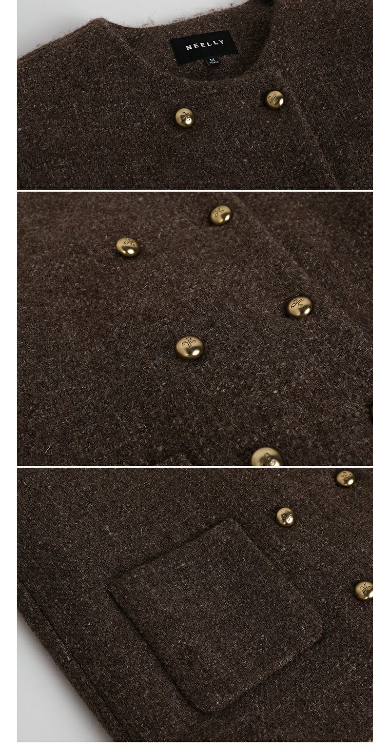 NEELLY纳俪商场同款冬季新款亮丝高级感绵羊毛圆领短外套肌理感女N25104C04430