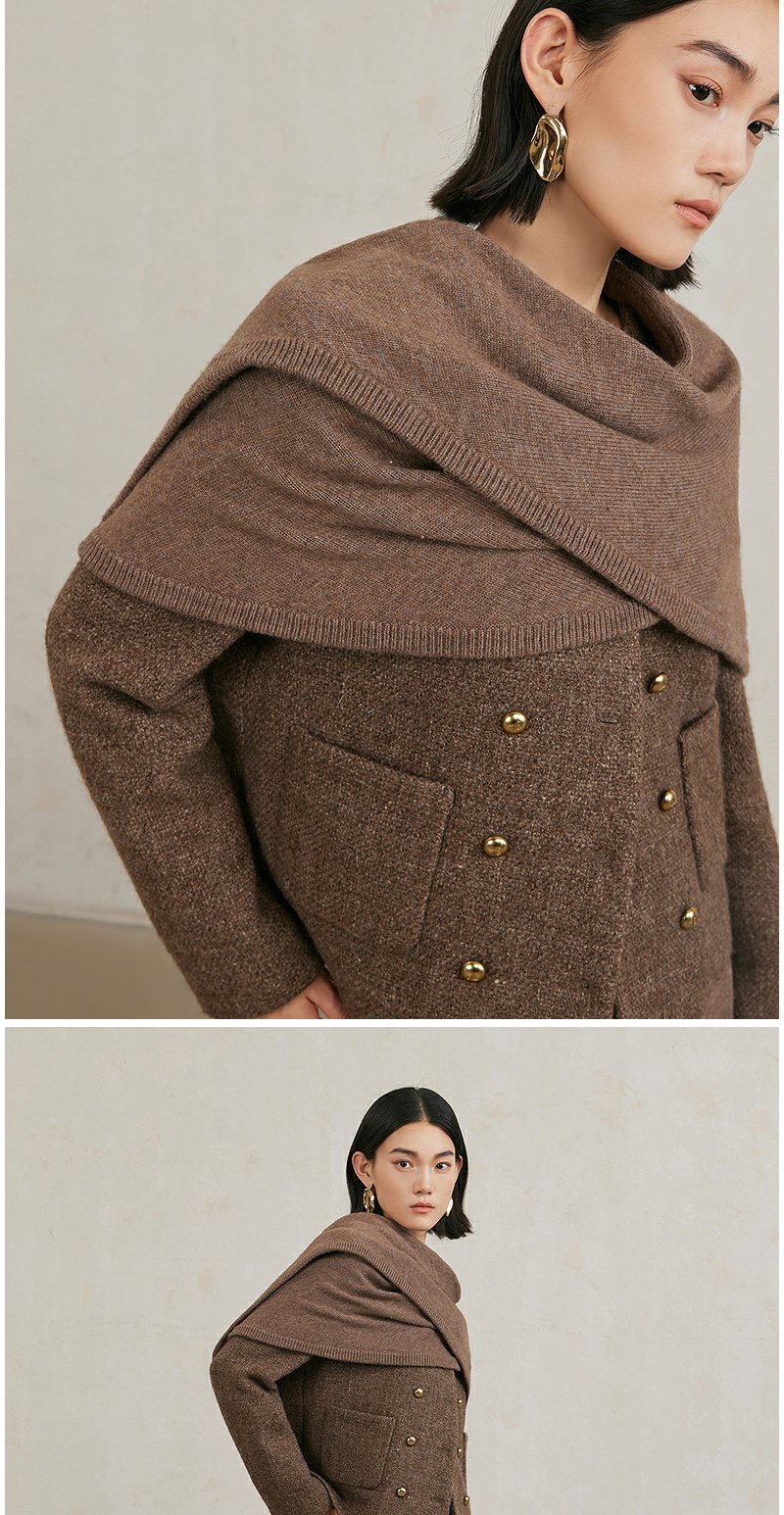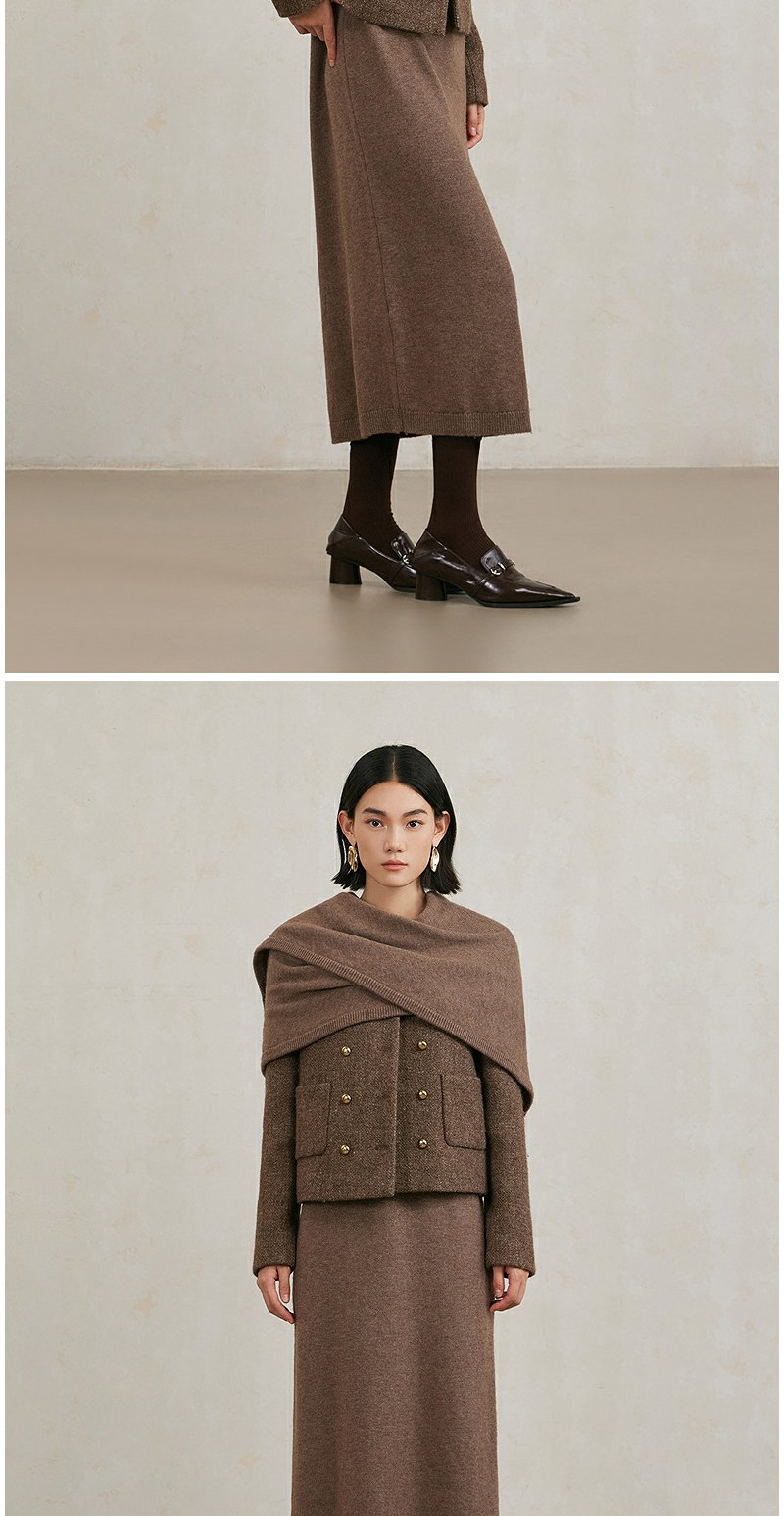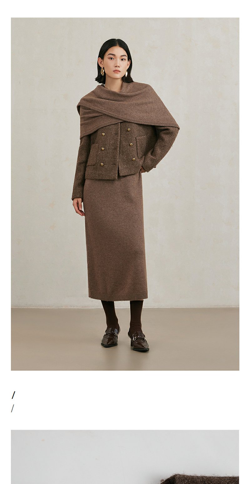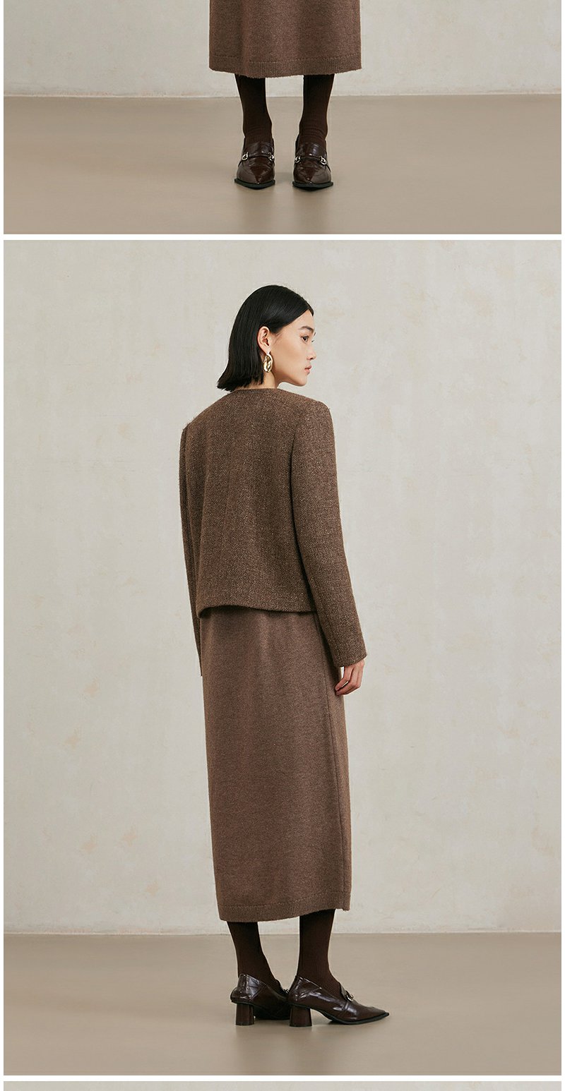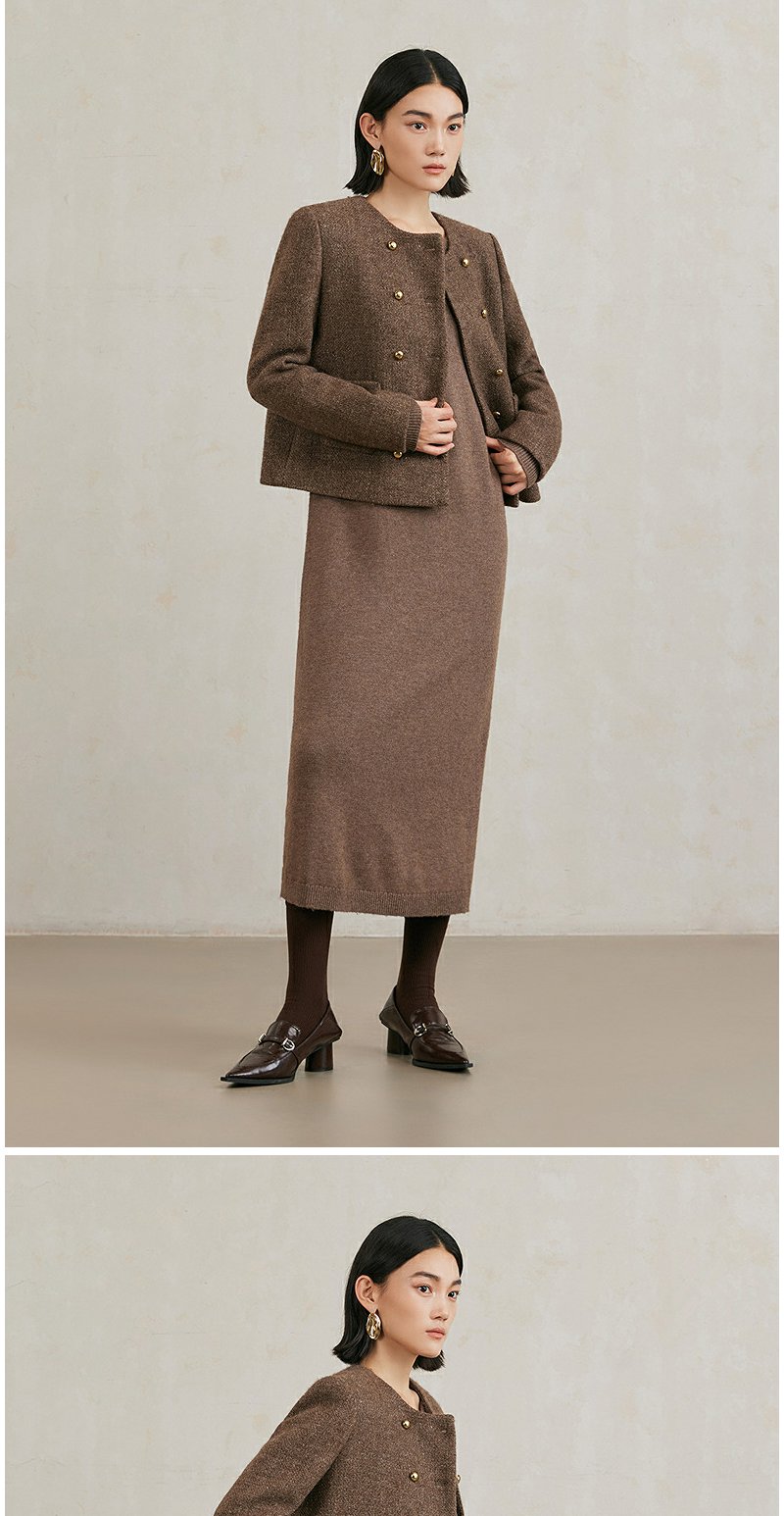 NEELLY纳俪商场同款冬季新款亮丝高级感绵羊毛圆领短外套肌理感女N25104C04430