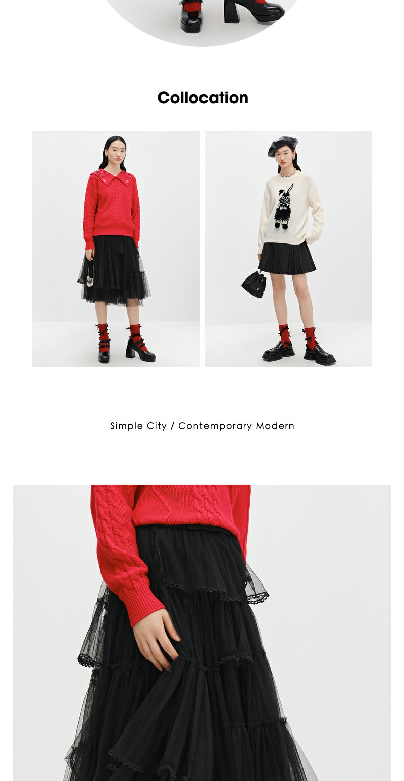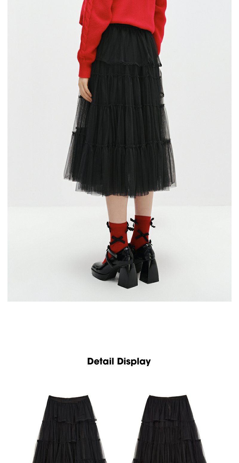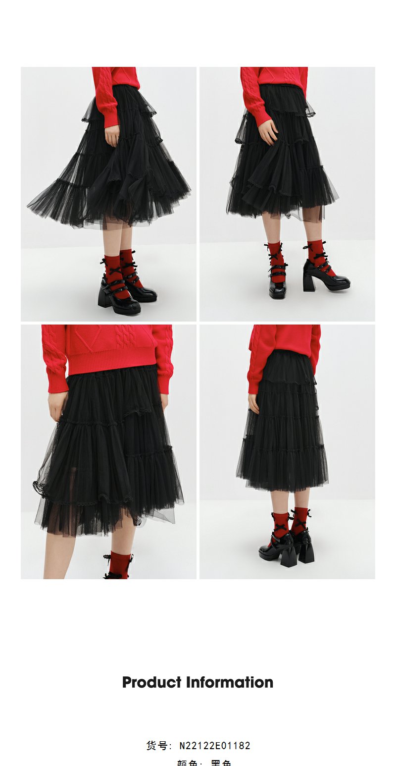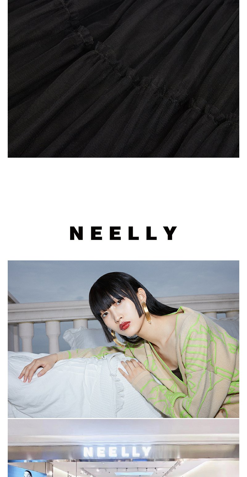 NEELLY纳俪商场同款黑色半身裙女中长款百搭纱裙冬季新款A字裙N22122E01182
