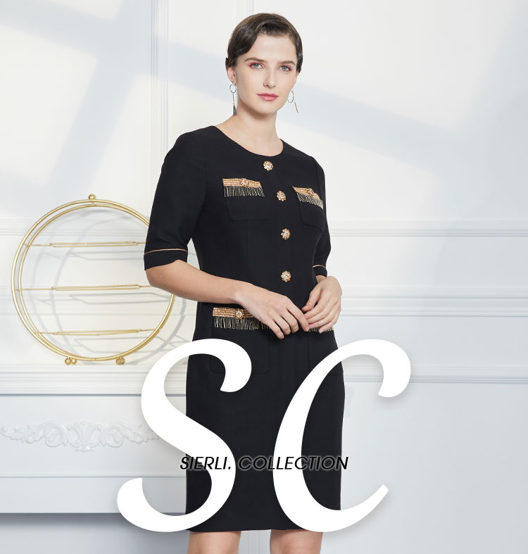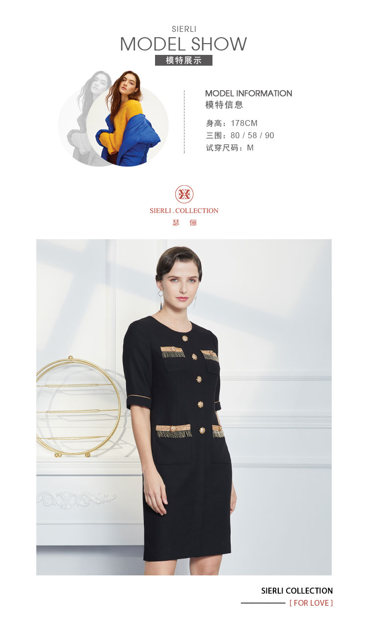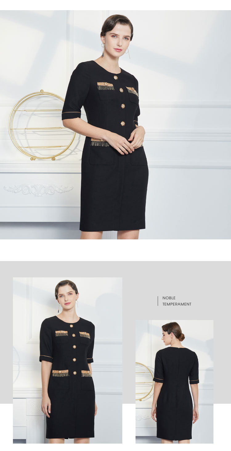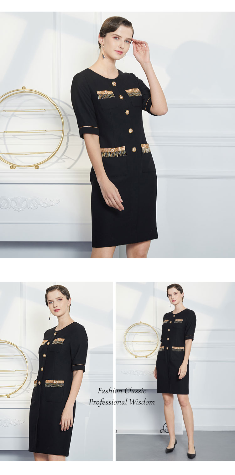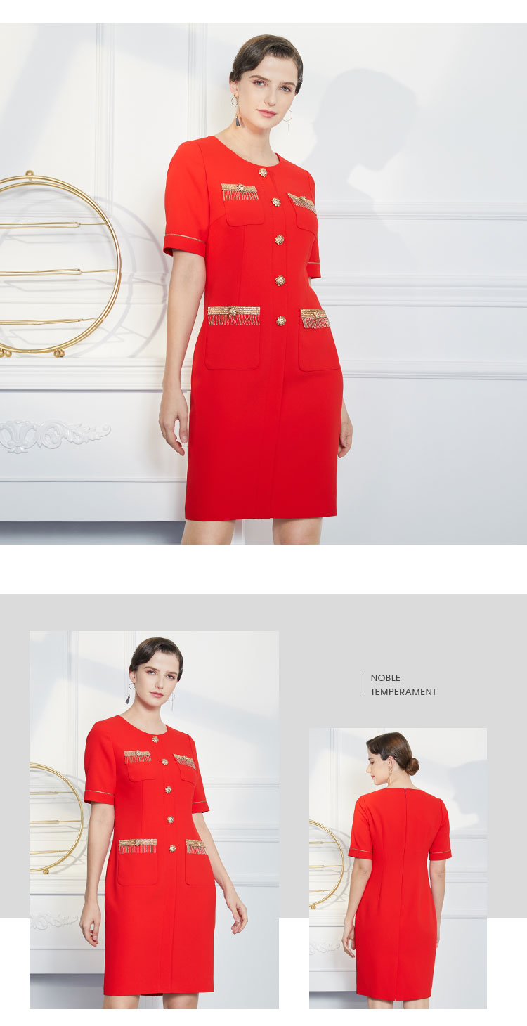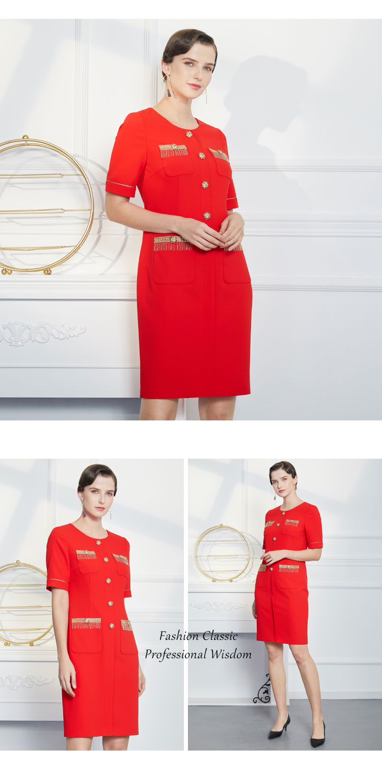 QF82A斯尔丽瑟俪春秋季新品正装四口袋职业连衣裙