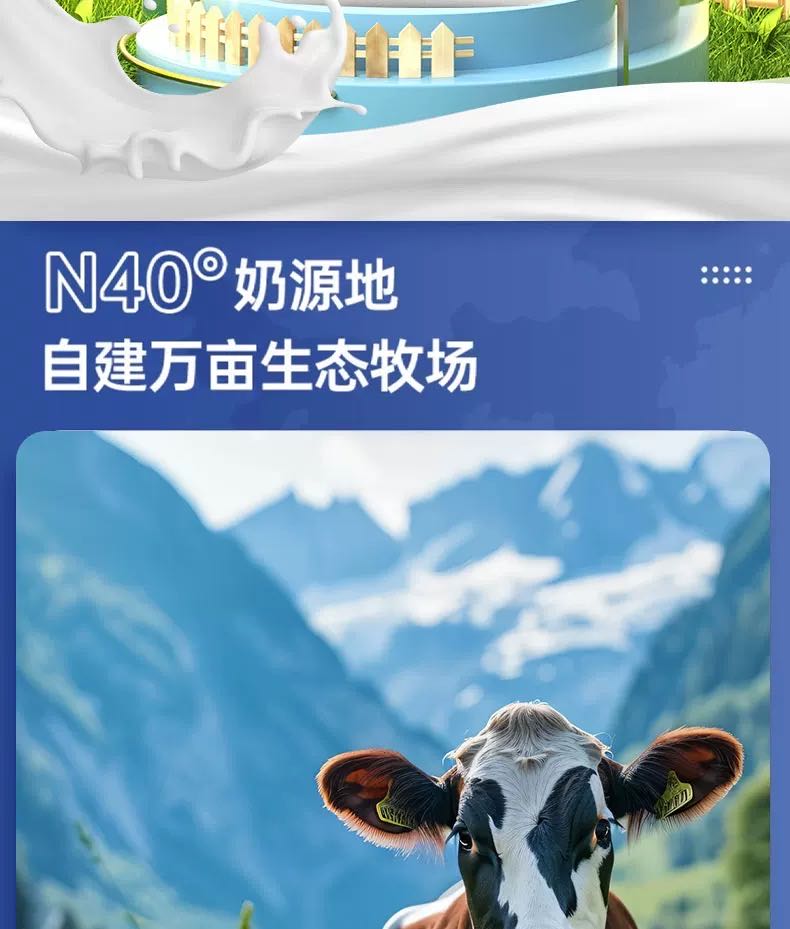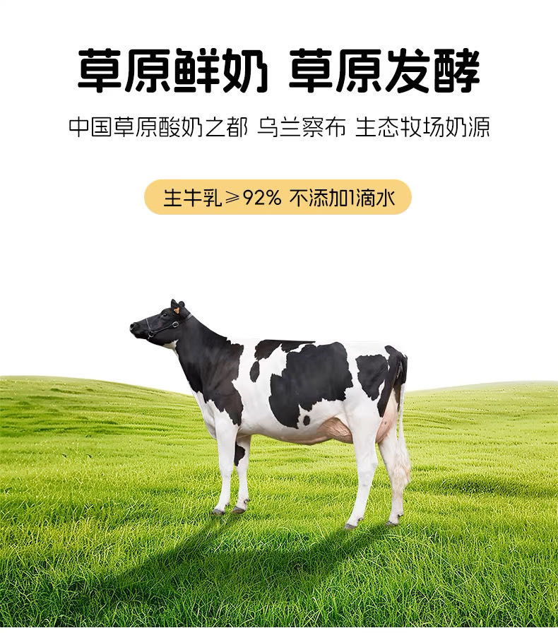 来自北纬40°大草原生态牧场奶源,专利活菌生牛乳发酵;