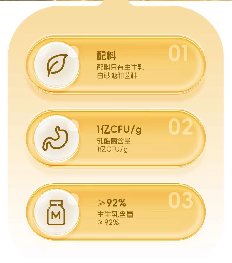 配料干净,只含有生牛乳、白砂糖和菌种;