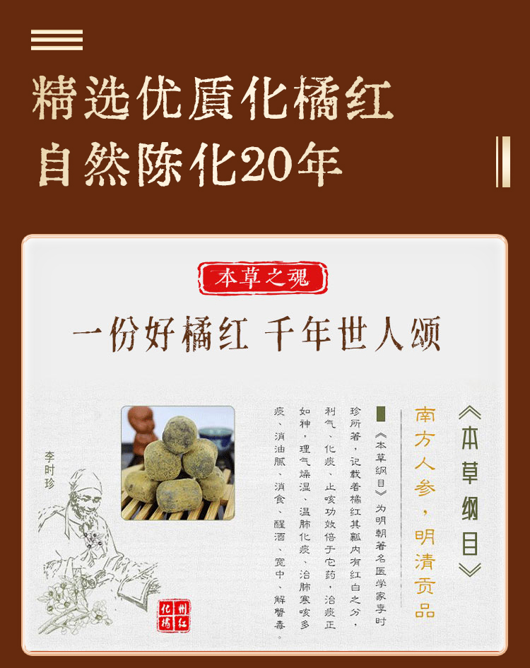 【第2罐半价,买3送1】 匠心秘方 20年陈橘红 百年古法工艺 | 李时珍陈年化橘红片