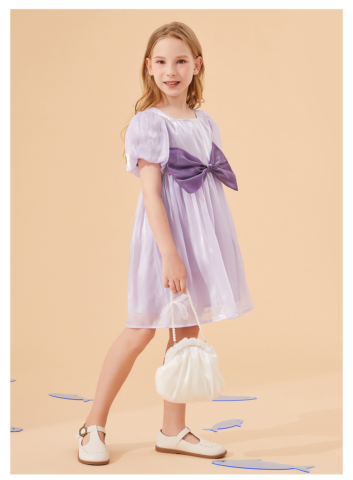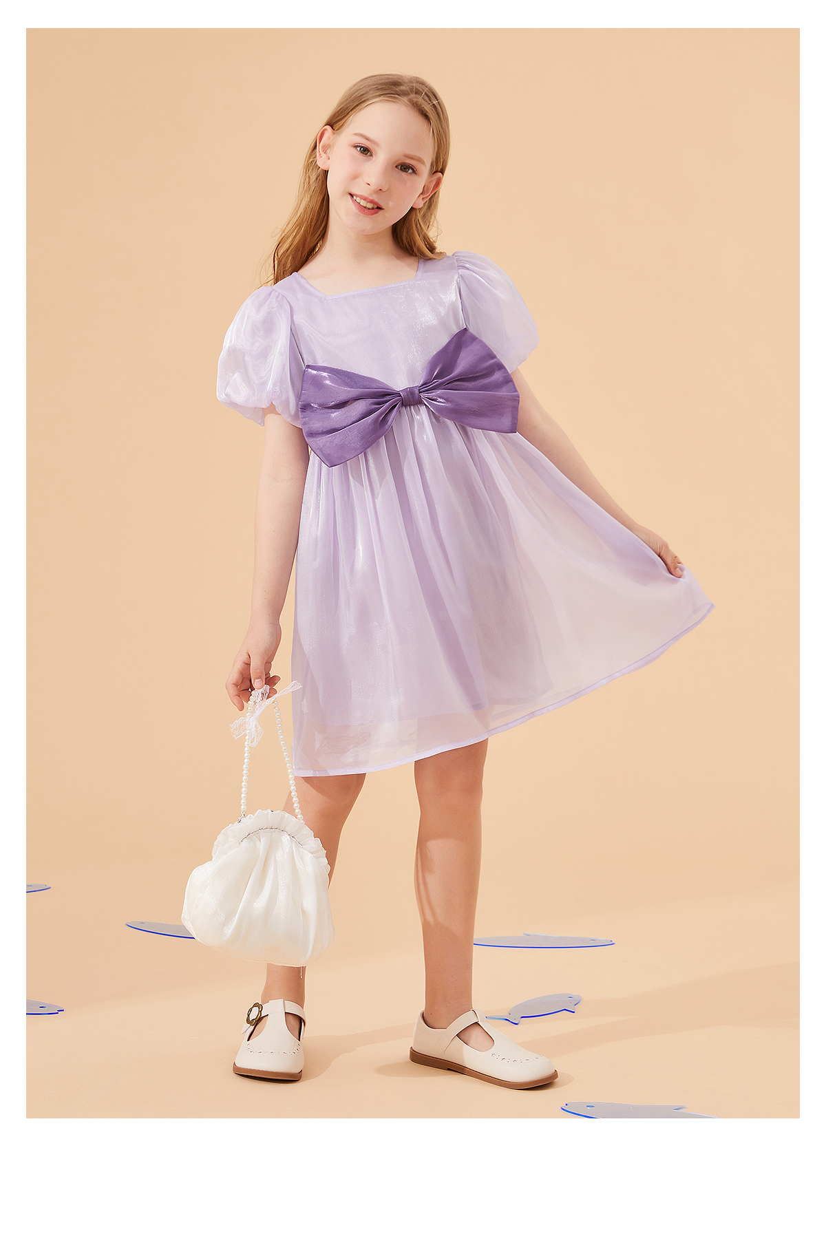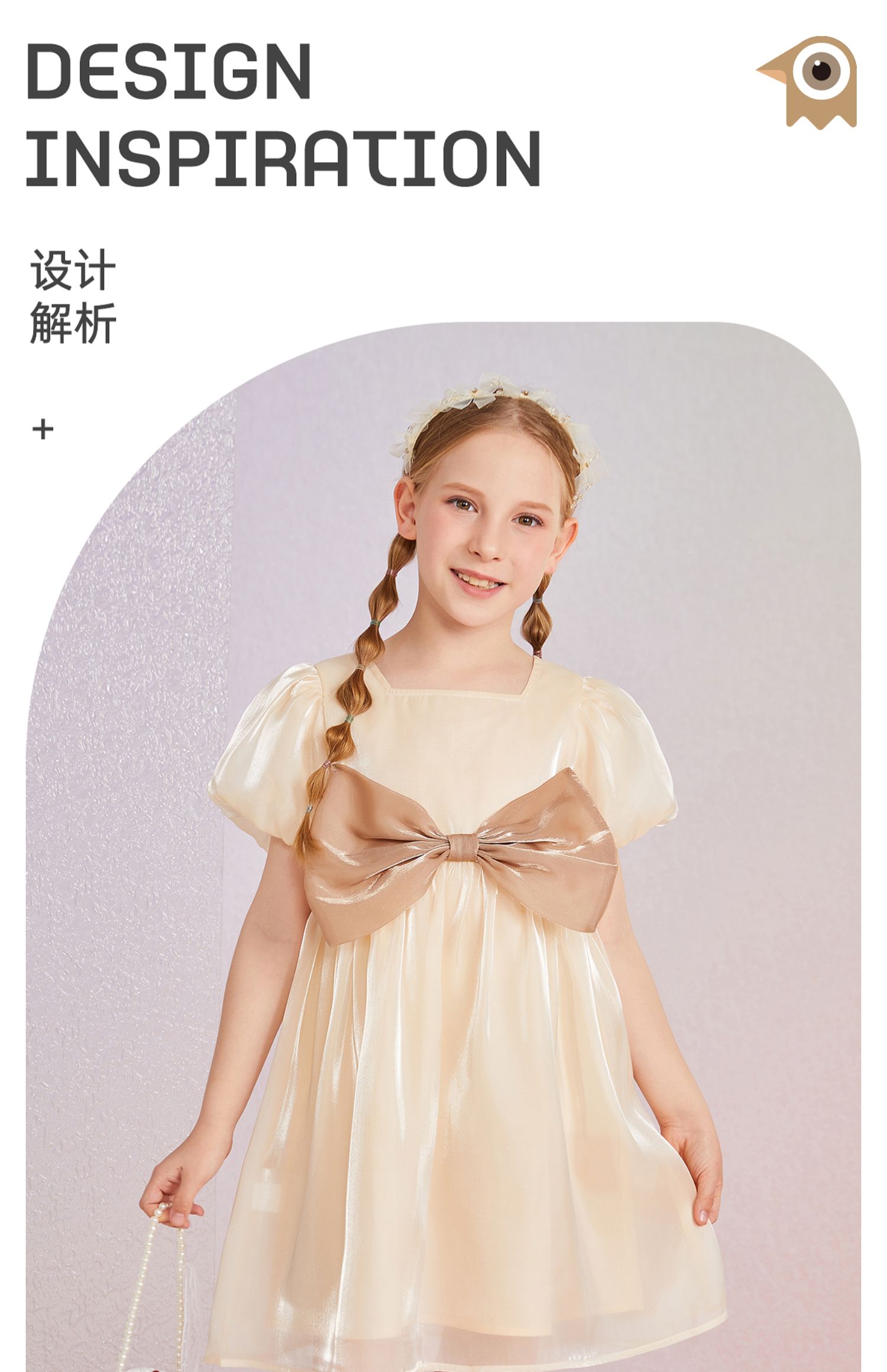 littletime女童暮云纱蝴蝶结公主裙洋气连衣裙夏装2023新款儿童裙