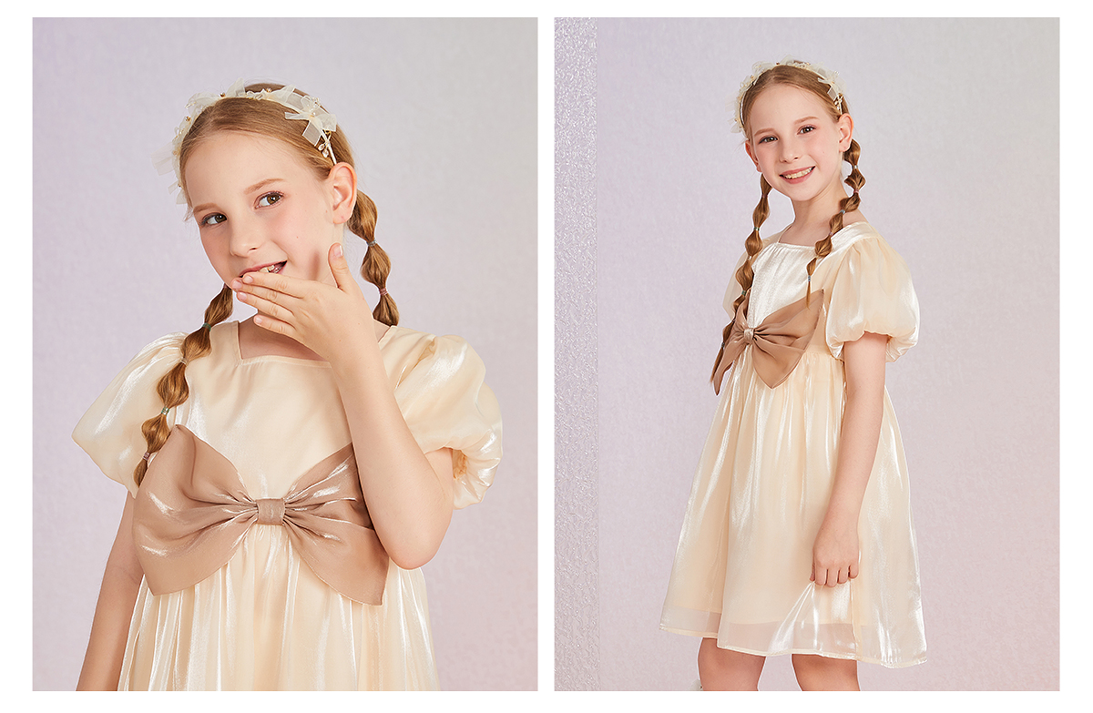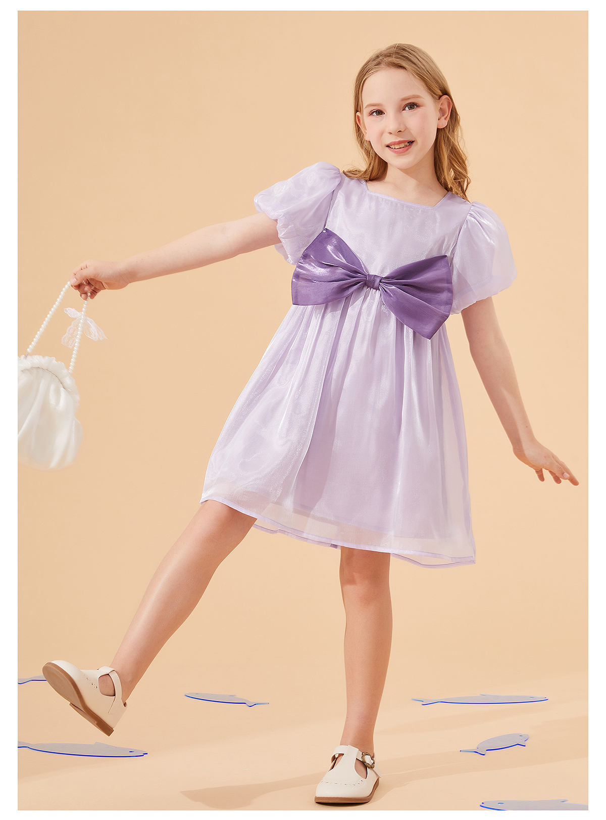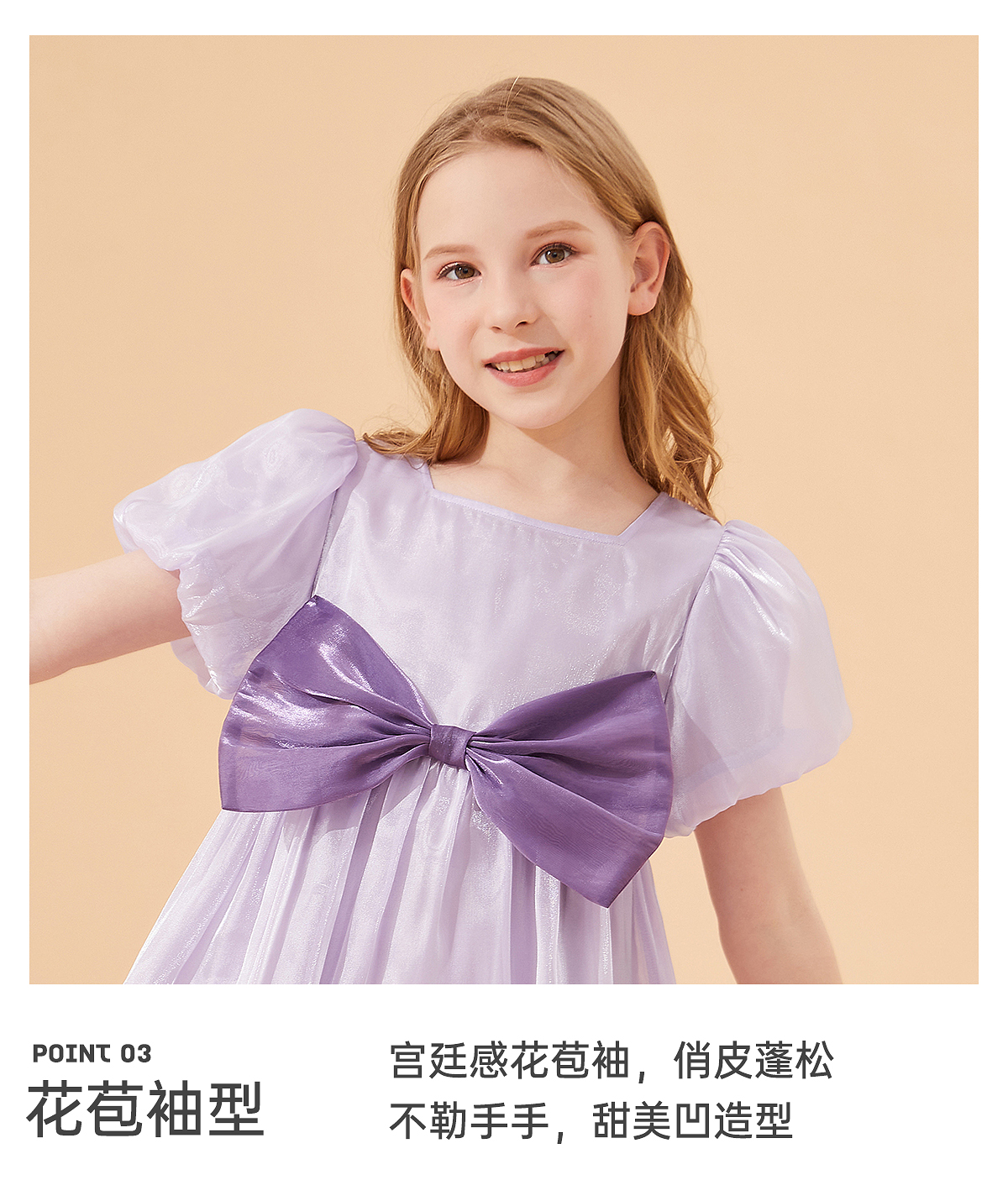 littletime女童暮云纱蝴蝶结公主裙洋气连衣裙夏装2023新款儿童裙