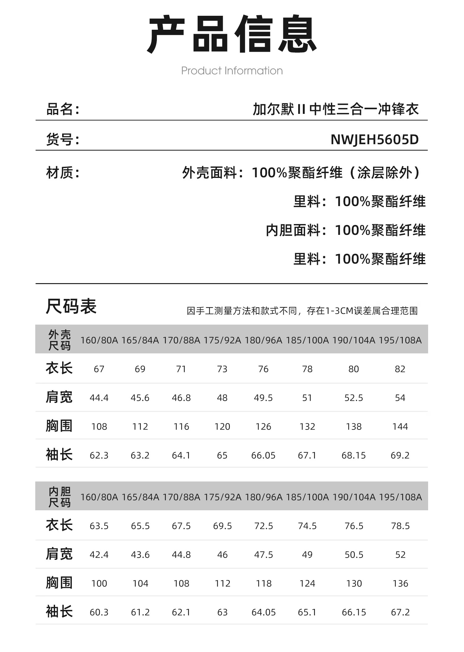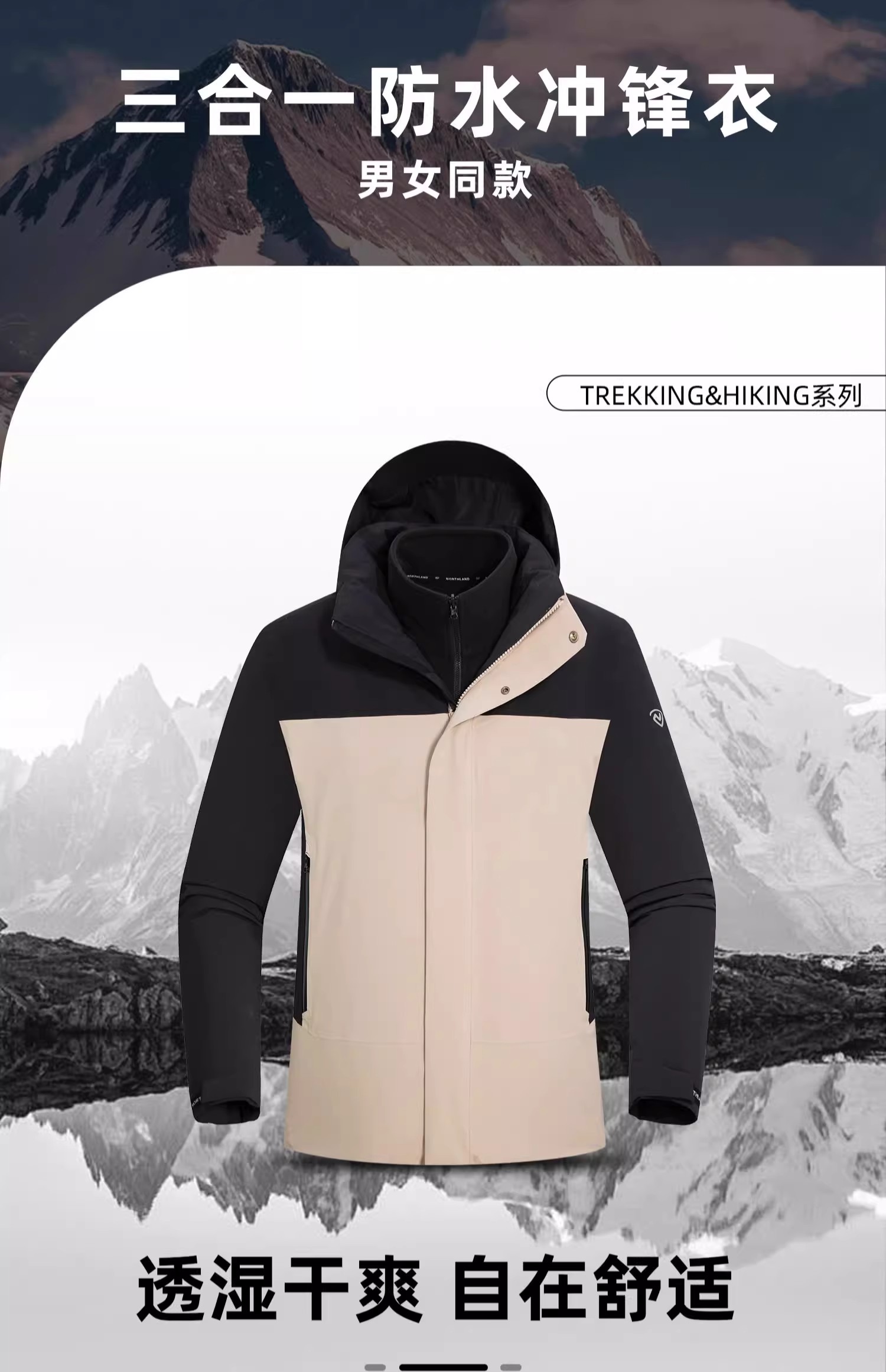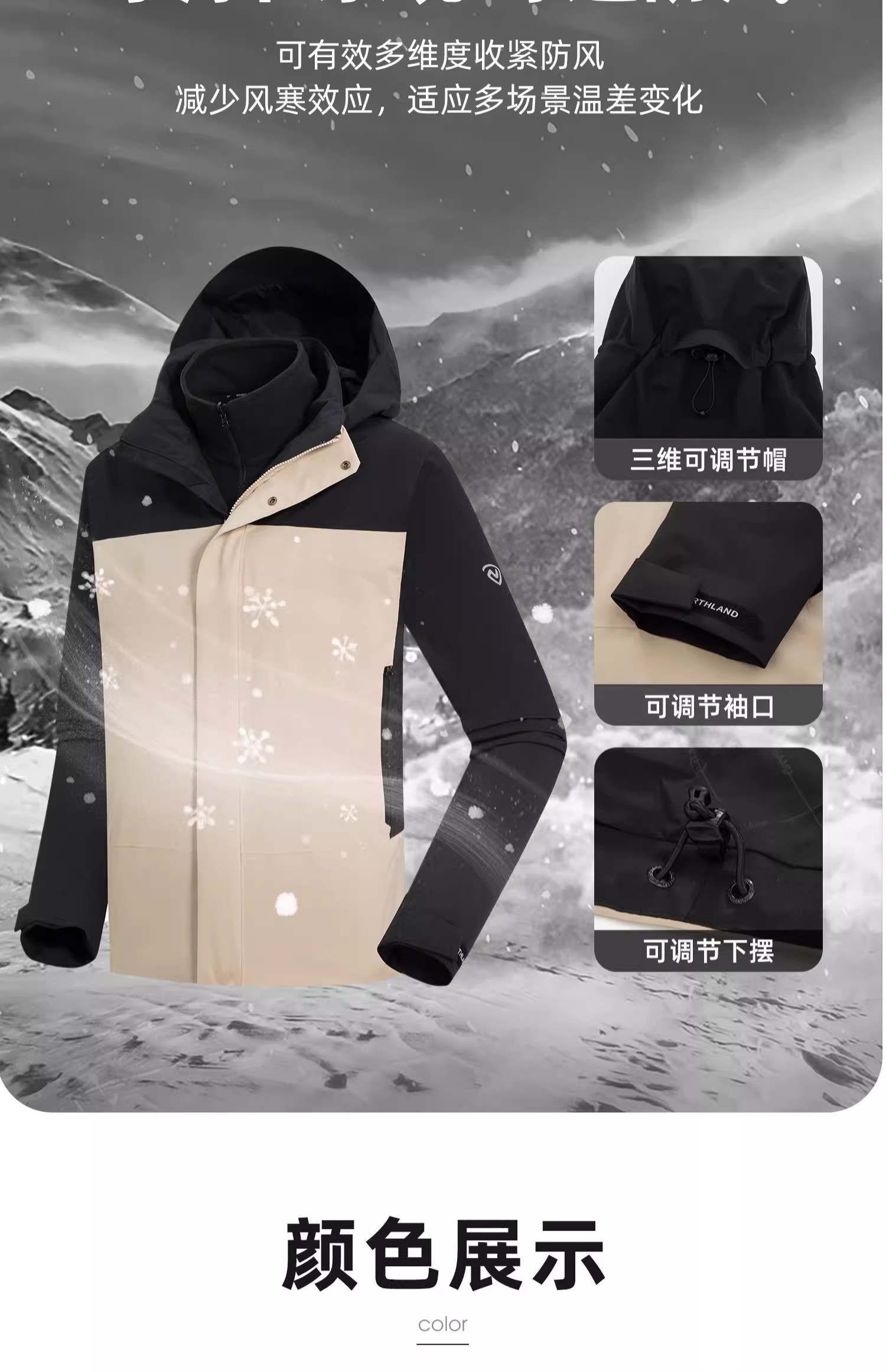 诺诗兰三合一冲锋衣男女秋冬户外防水防风徒步登山服加尔默II中性三合一冲锋衣NWJEH5605D