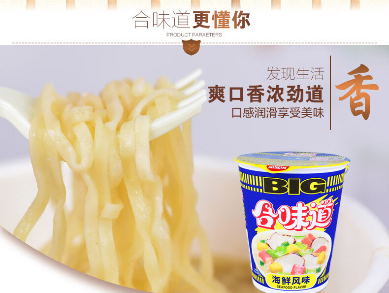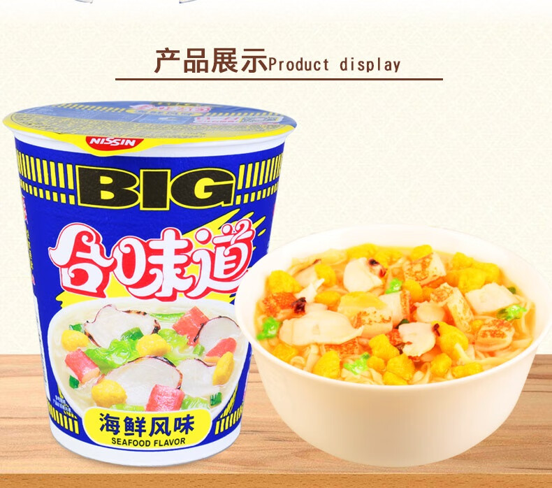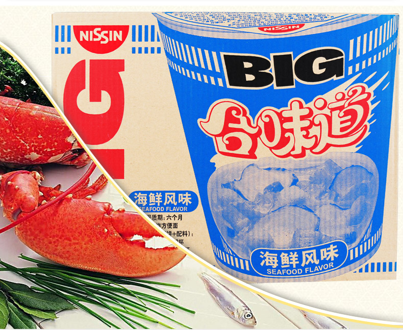 日清方便面BIG合味道海鲜风味108g*12杯整箱装大杯日清面