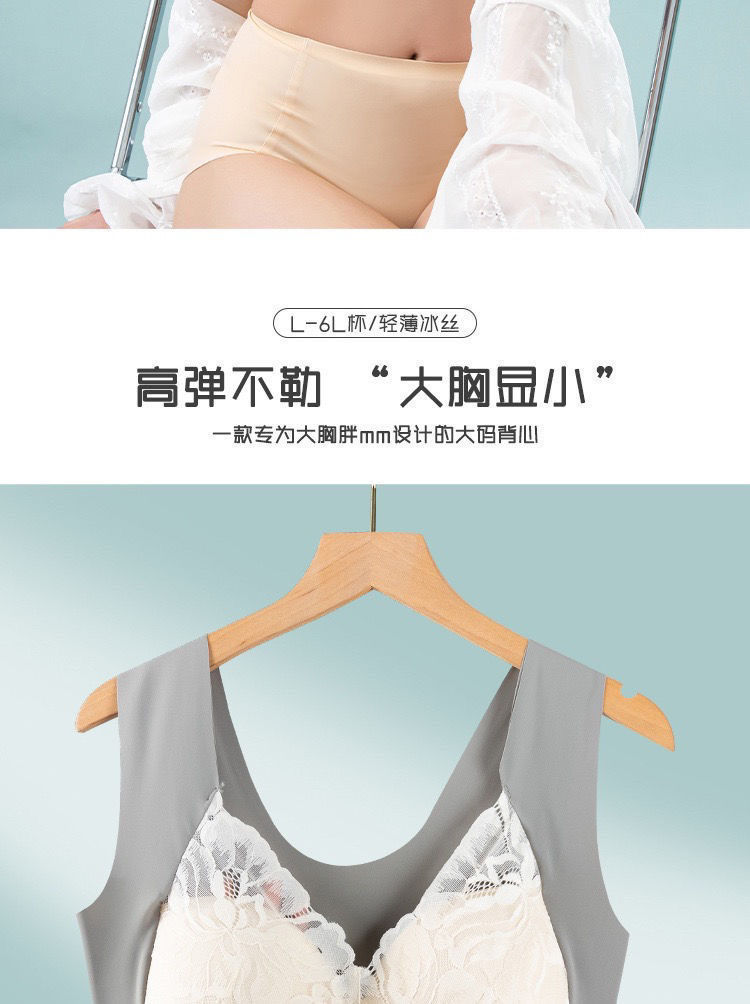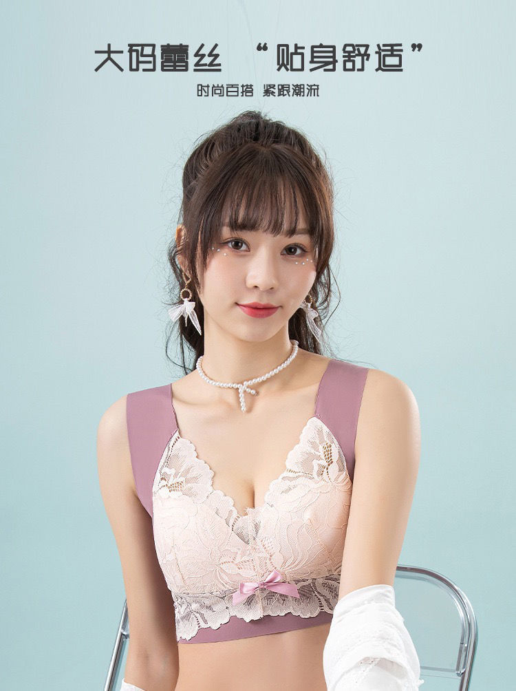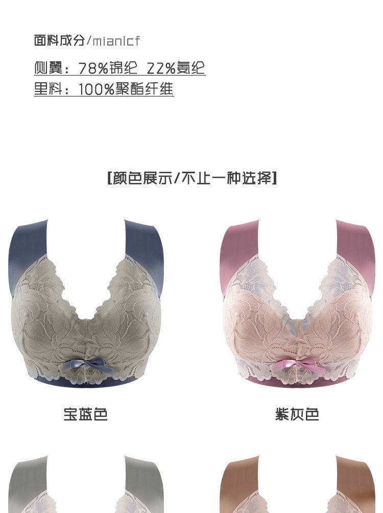 【大码蕾丝,贴身舒适】黛唯梵大码内衣200斤胖mm,大胸显小收副乳防下垂文胸,无痕运动薄款胸罩