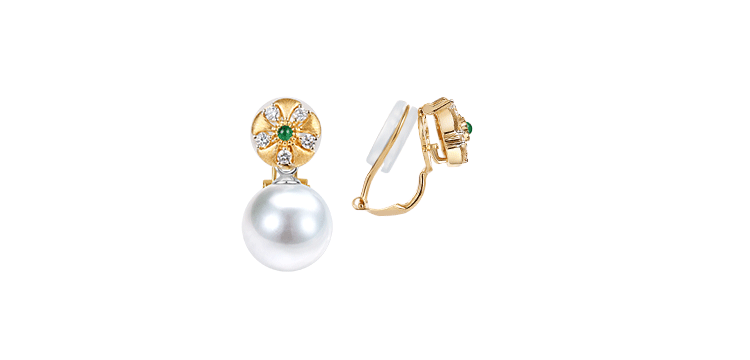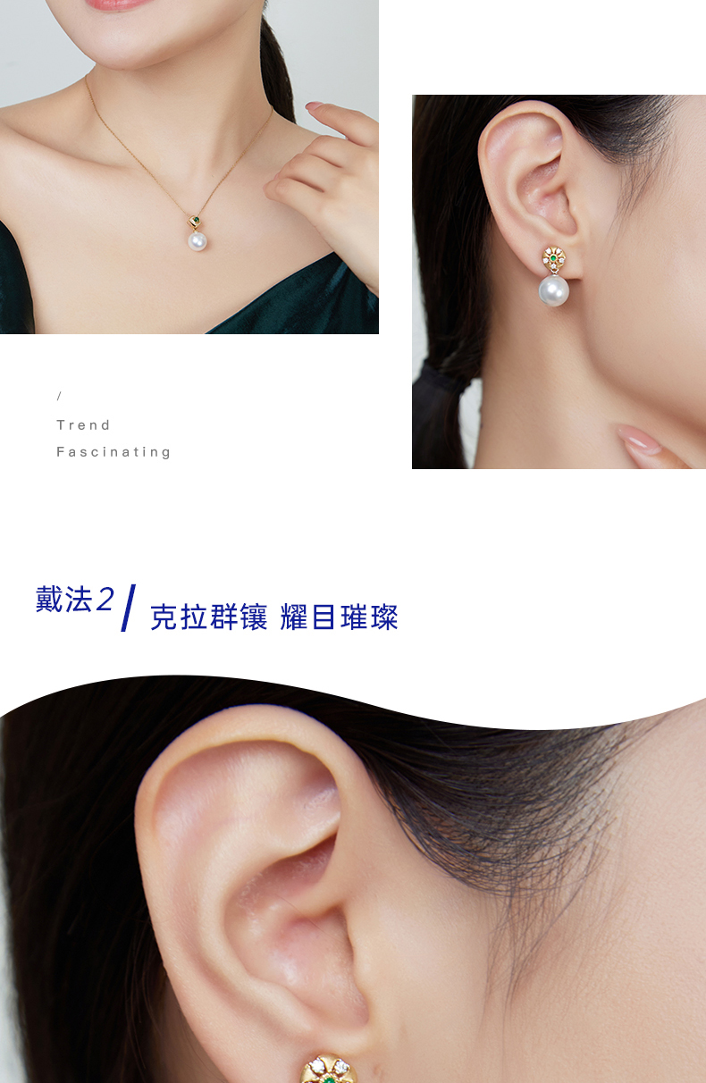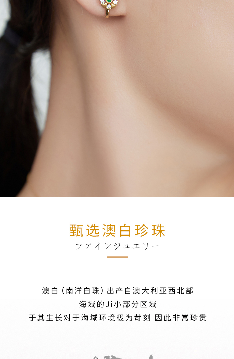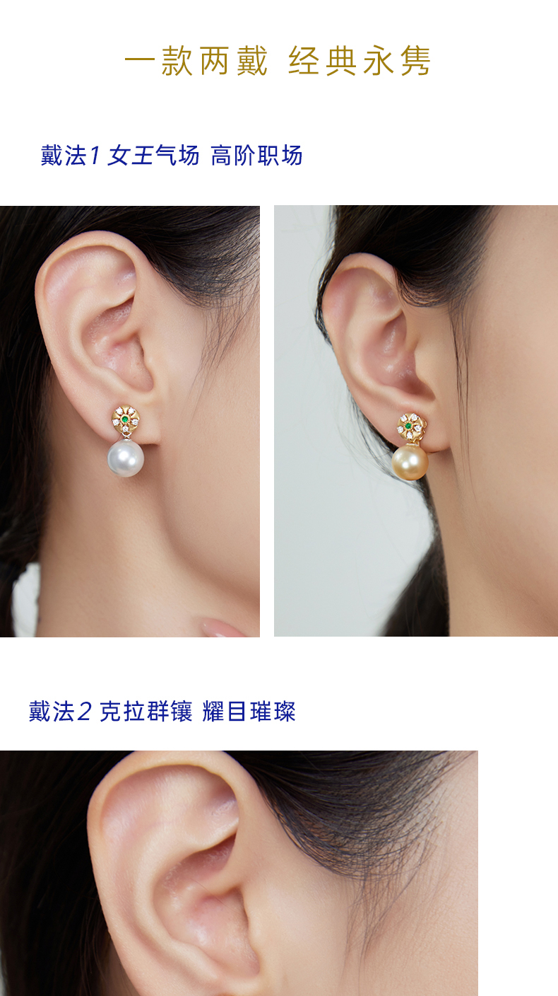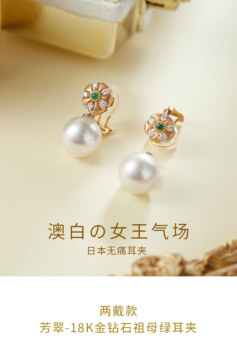 【天猫同款】18K金两戴款钻石祖母绿珍珠耳夹 芳翠