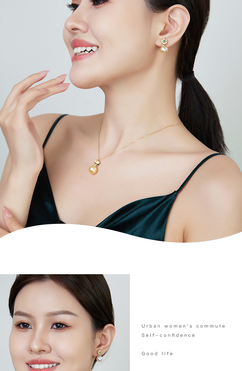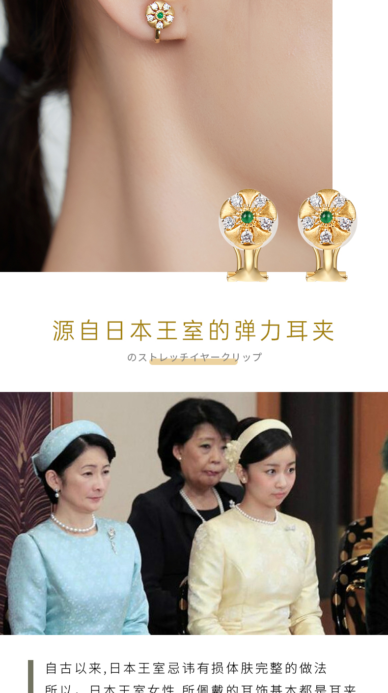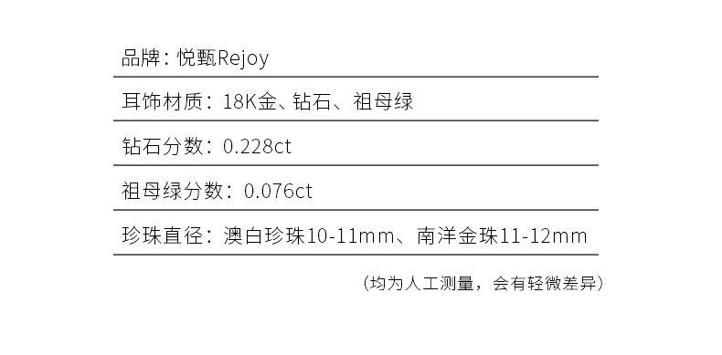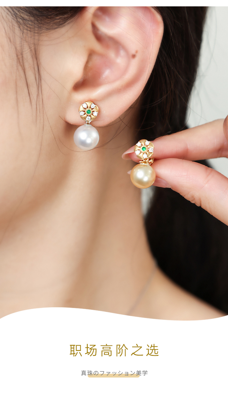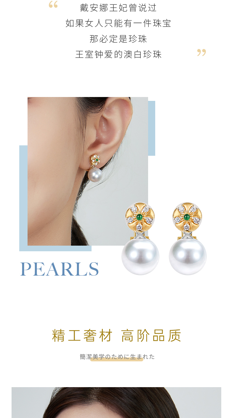 【天猫同款】18K金两戴款钻石祖母绿珍珠耳夹 芳翠