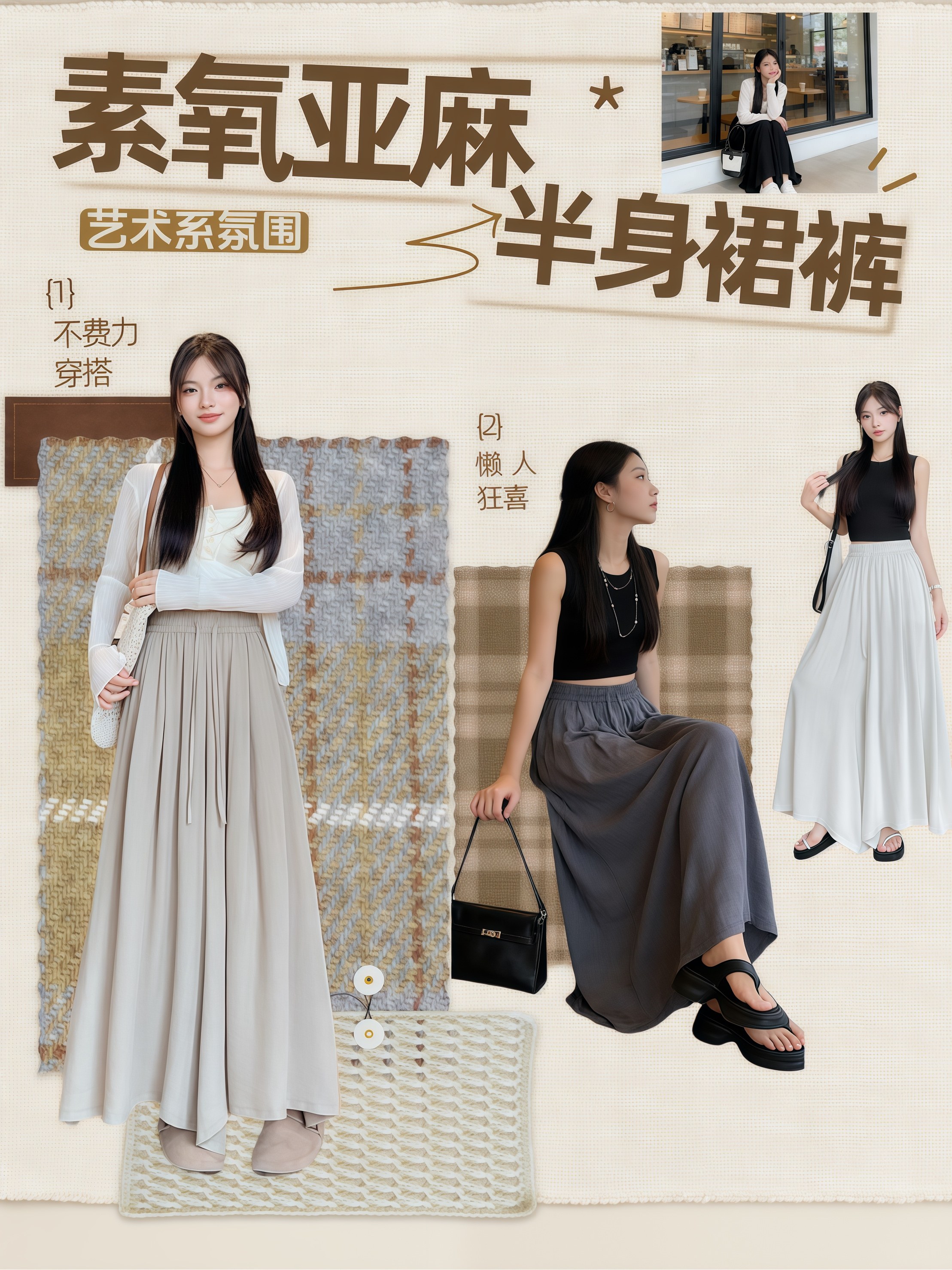 【GeLaiZi-素氧亚麻半身阔腿裙裤】软糯丝滑亚麻面料 自带空气感 遮胯藏肉 修饰腿型 拉高腰线 不挑年龄身材 轻松Get松弛感 微胖通勤约会百搭神裤