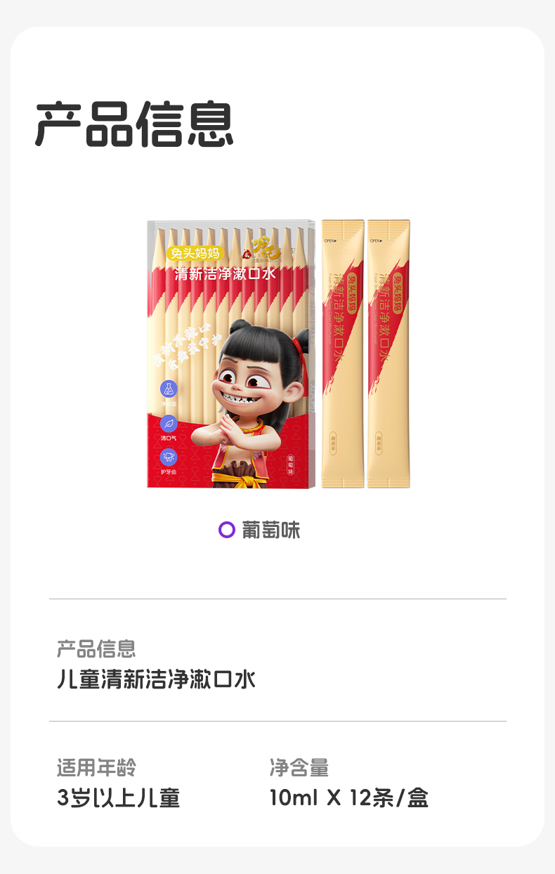 兔头妈妈【哪吒系列】儿童清新洁净漱口水 10ml*12条/盒