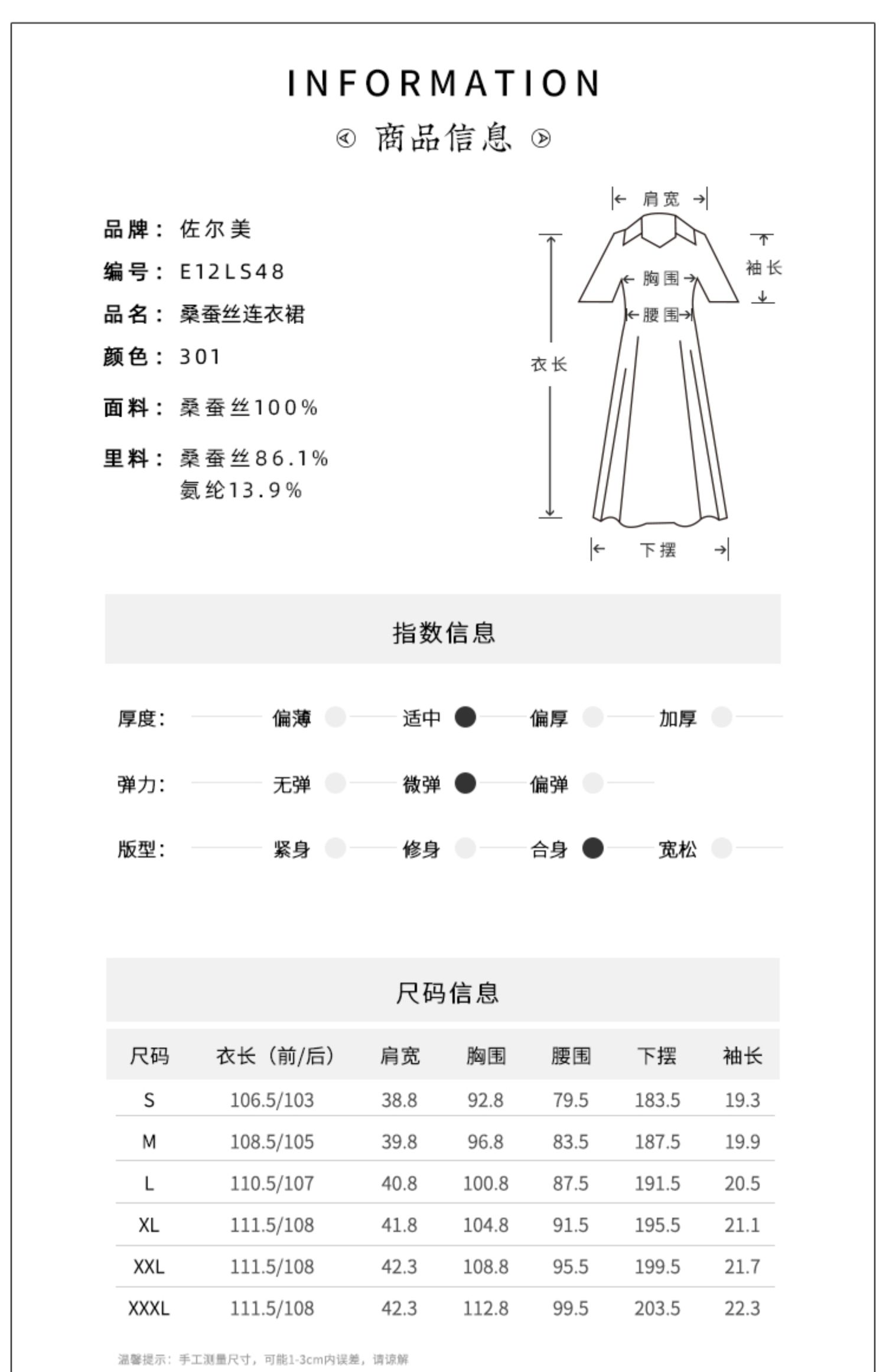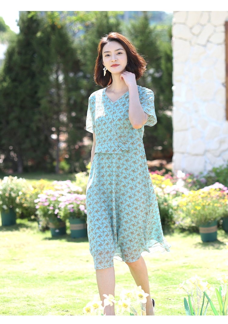 佐尔美夏季新款真丝桑蚕丝乔其连衣裙女E12LS48