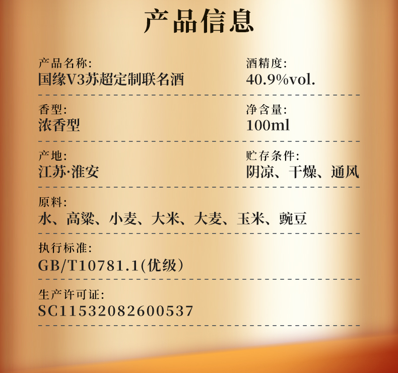 100ml 40.9度国缘v3苏超定制联名酒(可指定城市购买)
