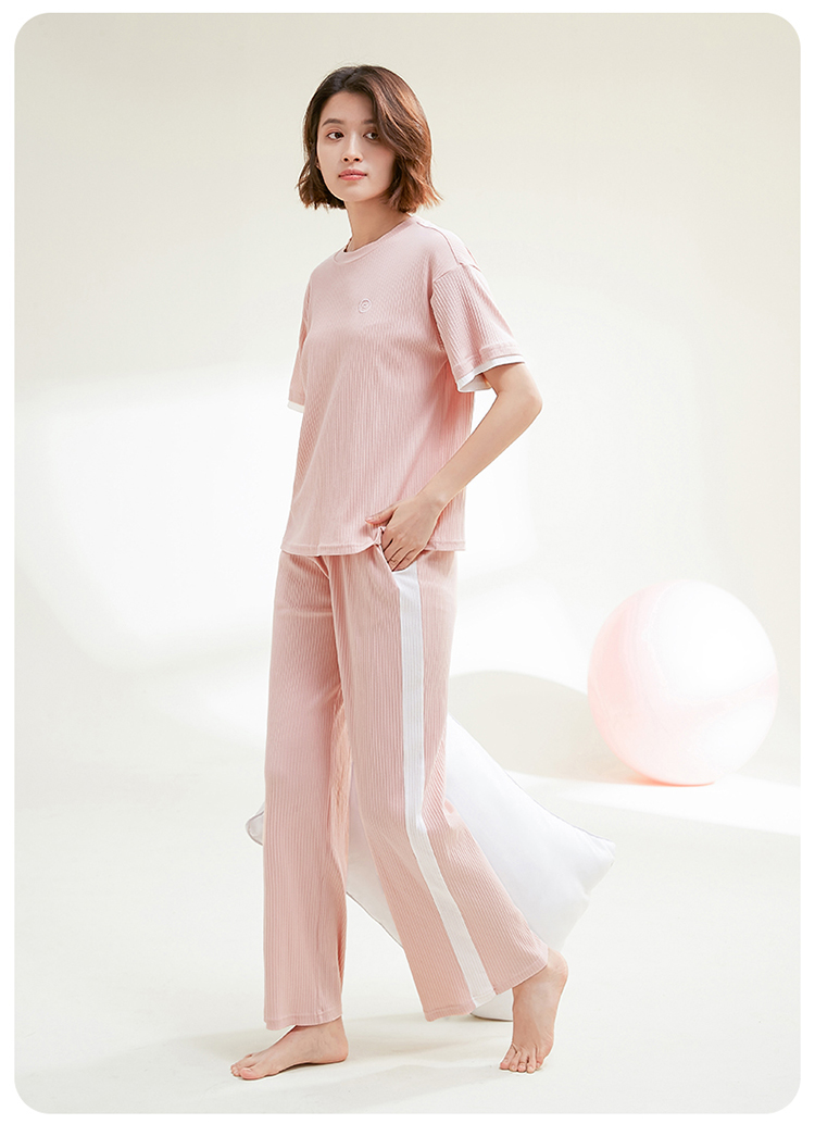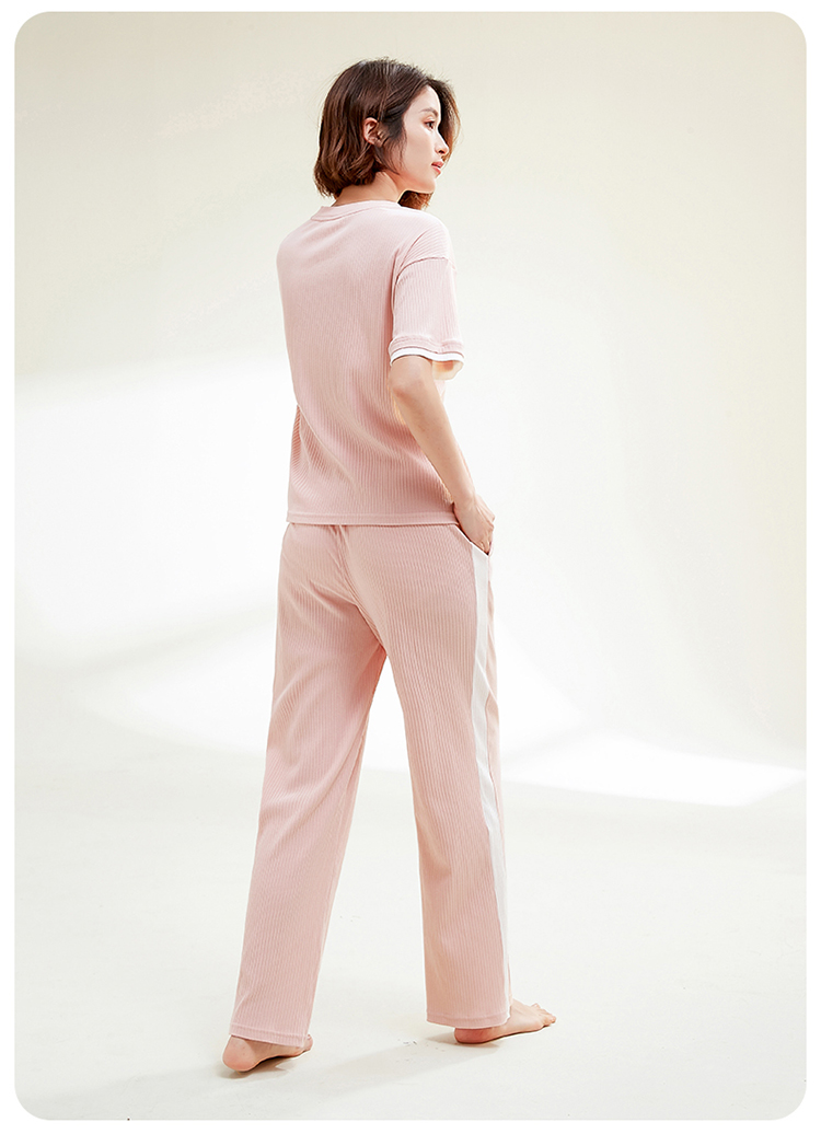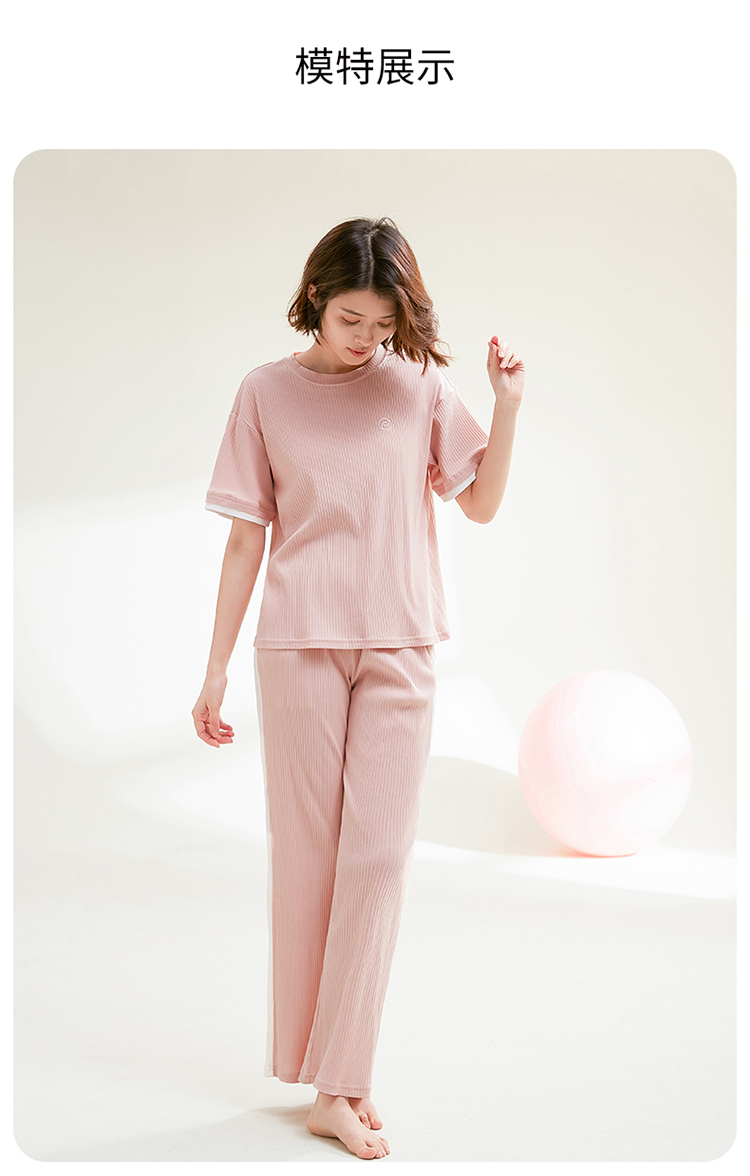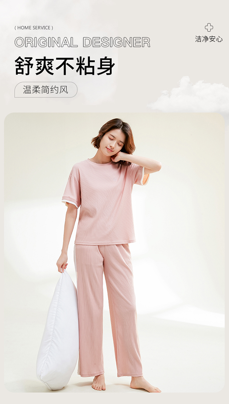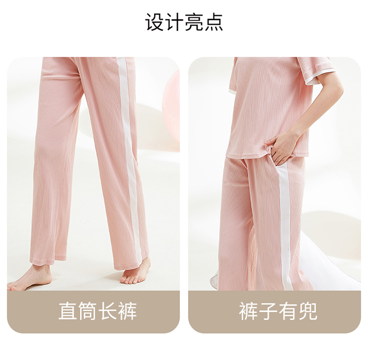 康妮雅睡衣女春夏季款女式短袖长裤套头套装