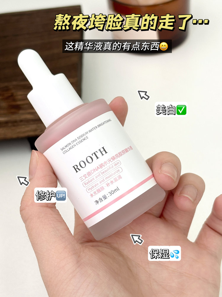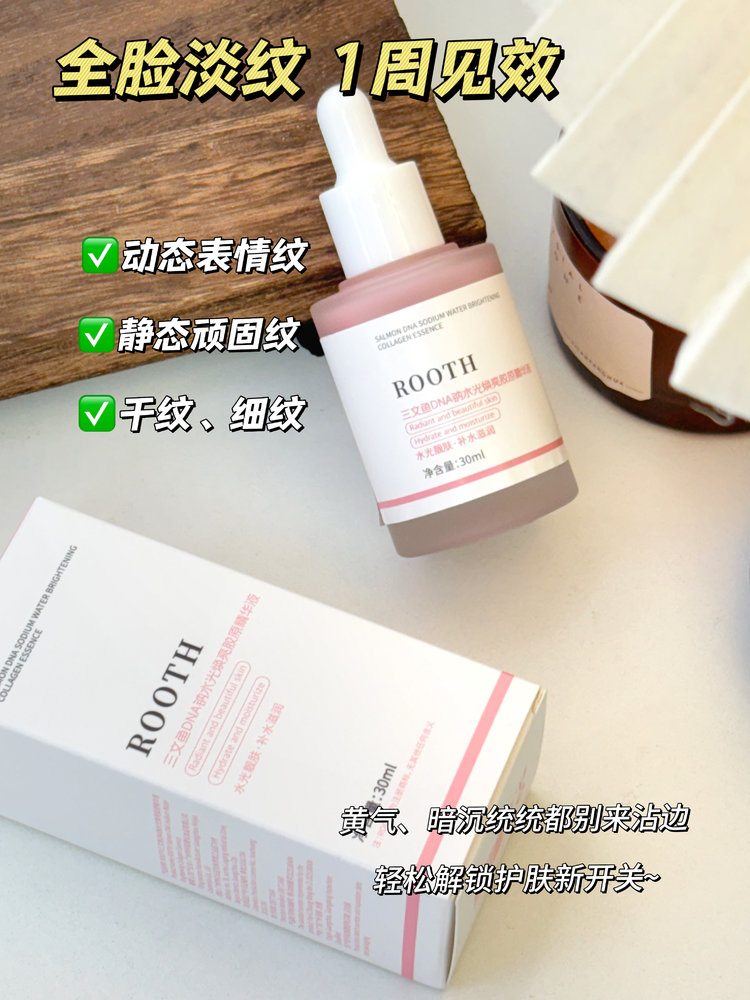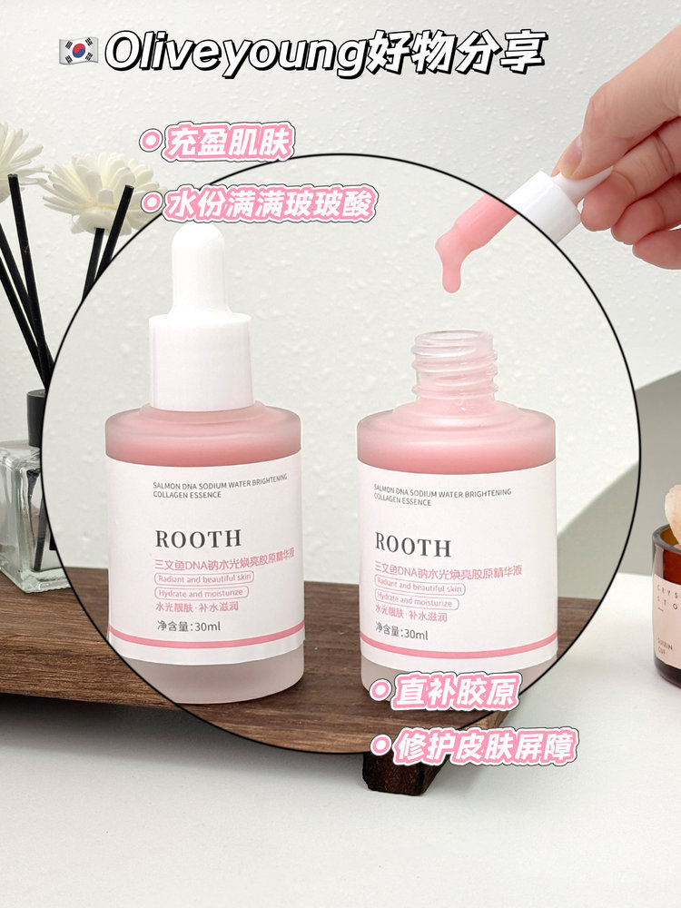 泛红皱纹一锅端‼暗沉松垮说拜拜39.9元拍一发二韩国同款三文鱼精华【ROOTH三文鱼DAN钠胶原精华液】 1瓶=修复精华+皱纹橡皮擦,韩女亮白肌的秘密~修护维稳、紧致抗氧,熬夜党超爱!
