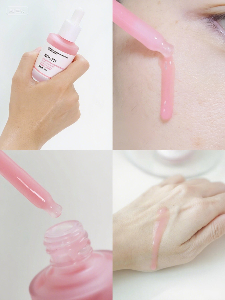 提升皮肤弹性,持久补水保湿粉色水润精华质地