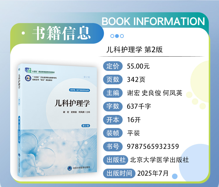 儿科护理学 第2二版 十四五卫生高等职业教育专科校院合作双元规划教材 谢宏 史良俊 何凤英 供护理等相关专业用北京大学医学出版社