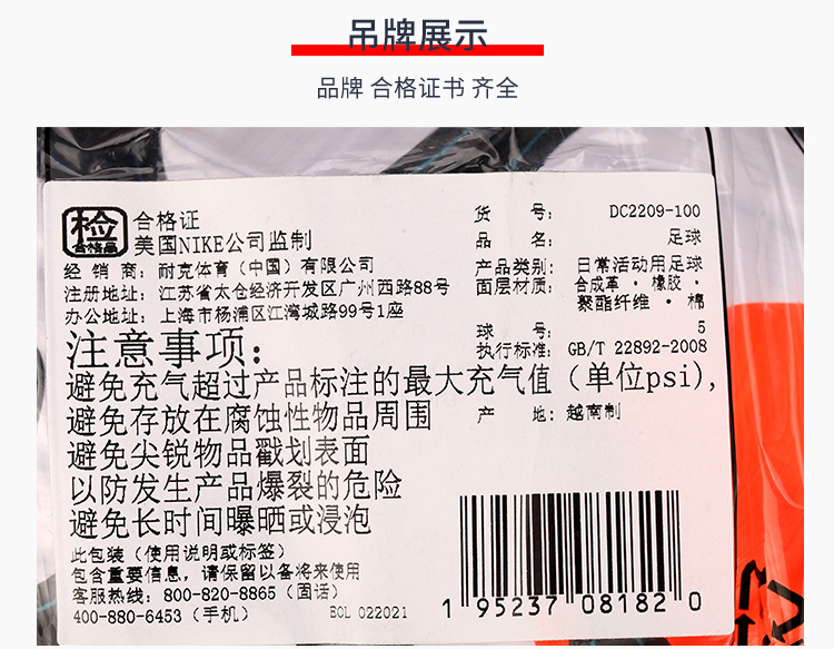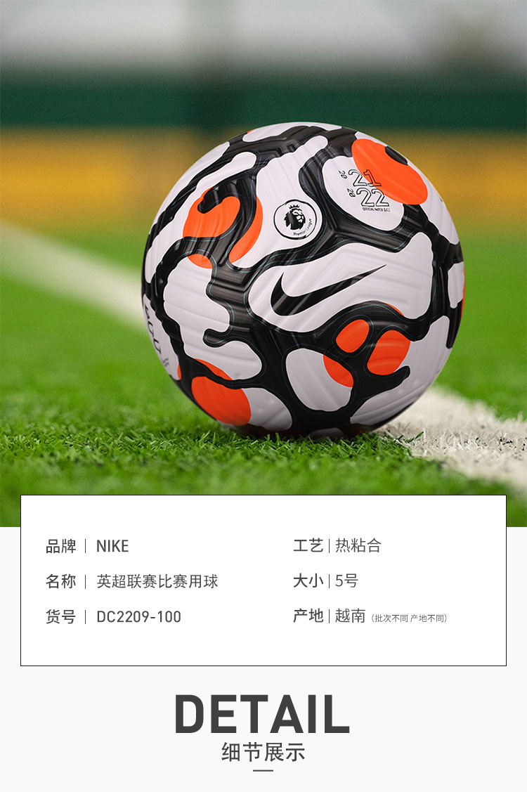小李子NIKE/耐克21-22赛季英超A标比赛热粘合5号足球男DC2209-100