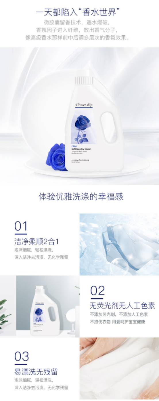 【FLOWER SHIP花卉诗蓝色妖姬洗衣液】 今天的价格折上天了💥✅原价246现在秒杀价2L*4瓶满满16斤 通过欧盟严苛认证天然植物成分无磷无荧光无增白剂无残留不伤手不伤衣 高端品牌Dior同款香味留香30小时以上💥