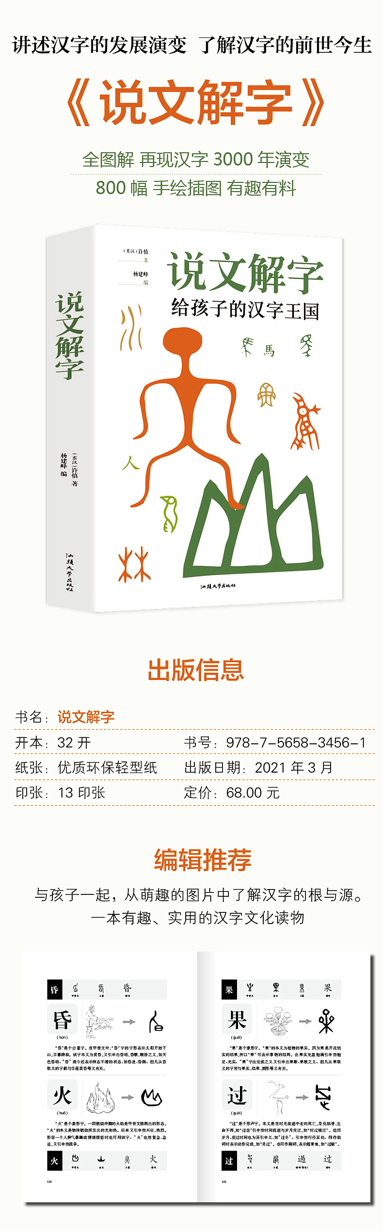 说文解字详解正版 给孩子的汉字王国许慎著 象形文字演变书图解 中小学生版注音版 古代汉语字典 儿童读物课外书学习画说部首今释