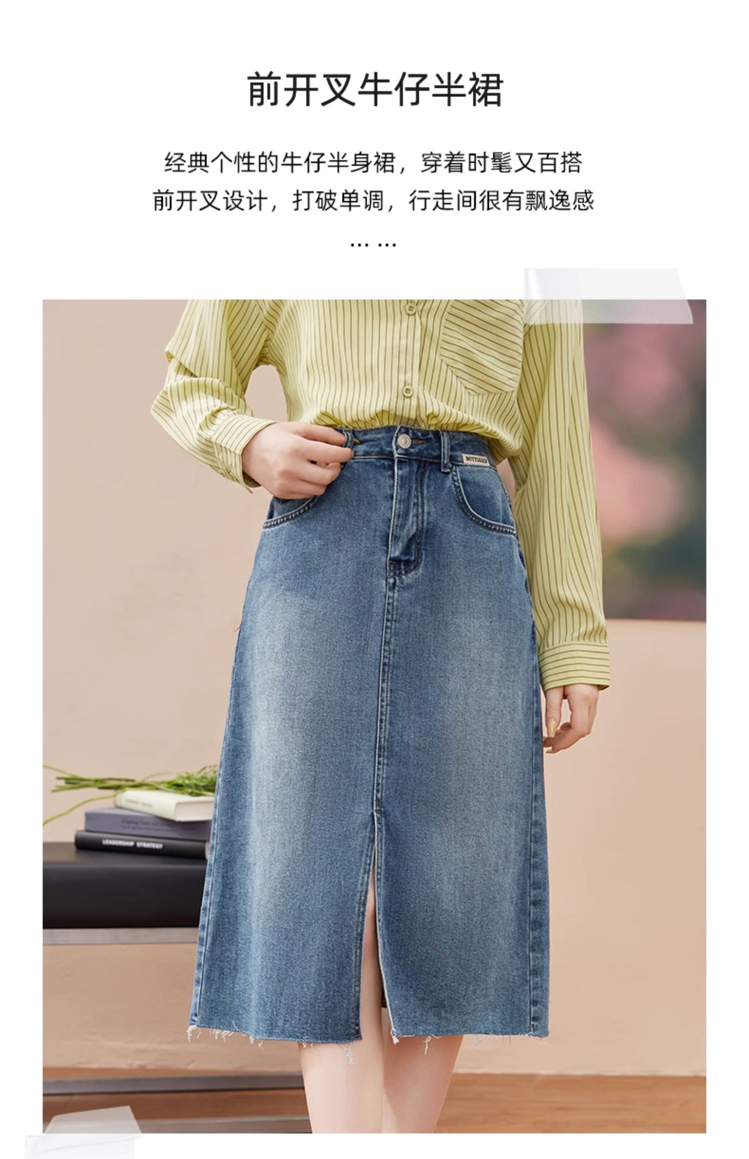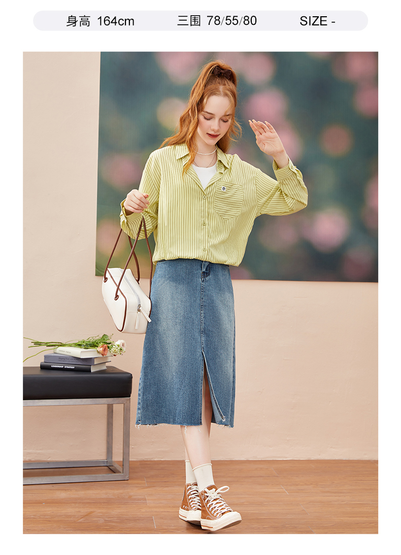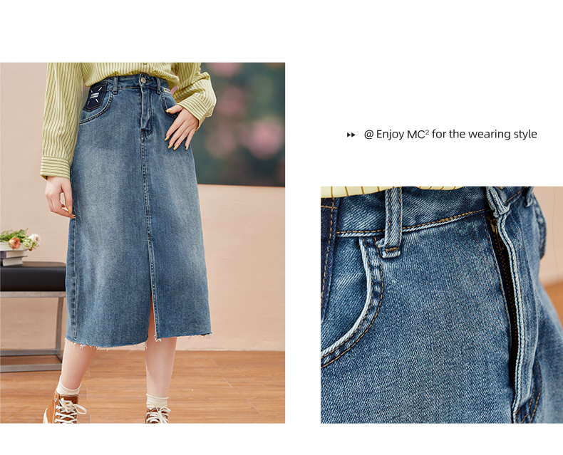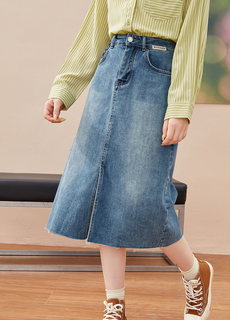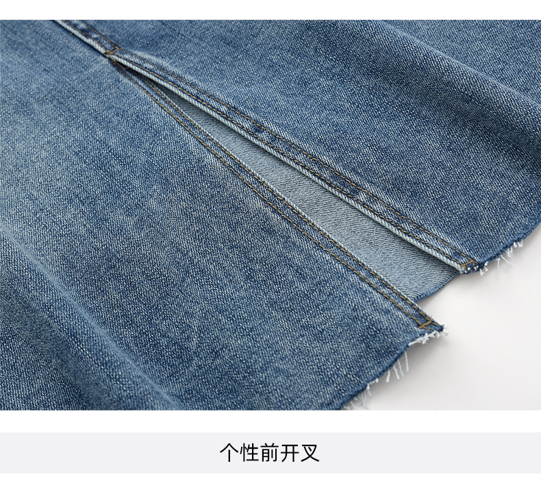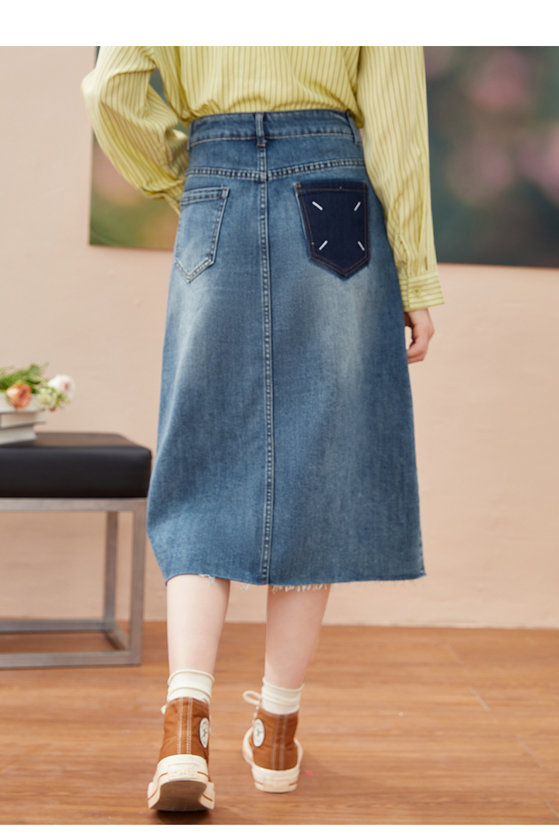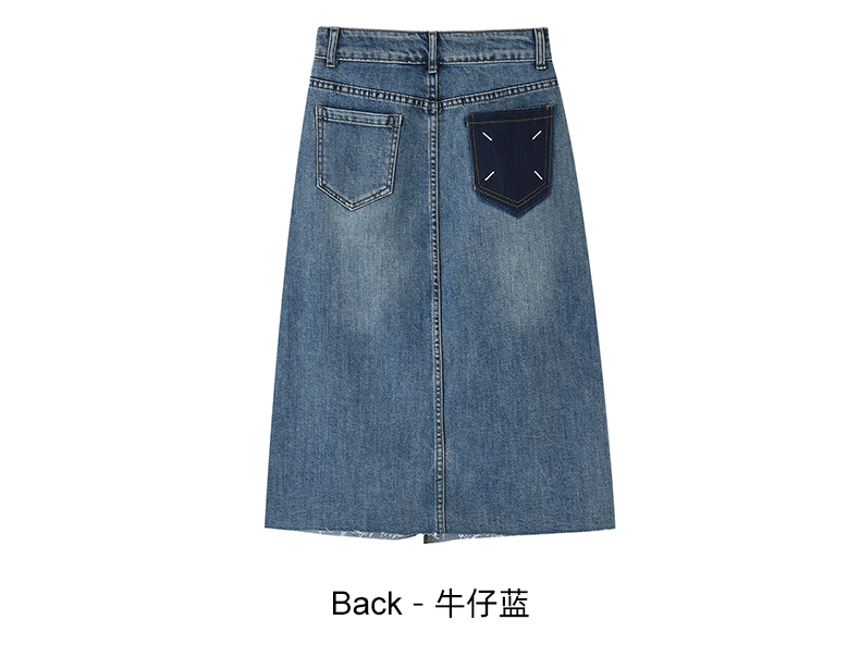 女装开扣前片开叉中长款牛仔半裙-7029Q3231511