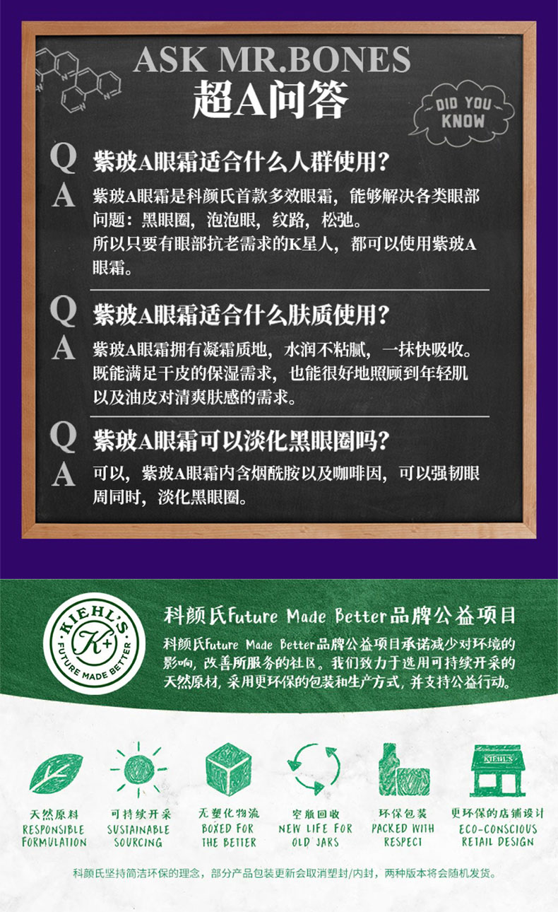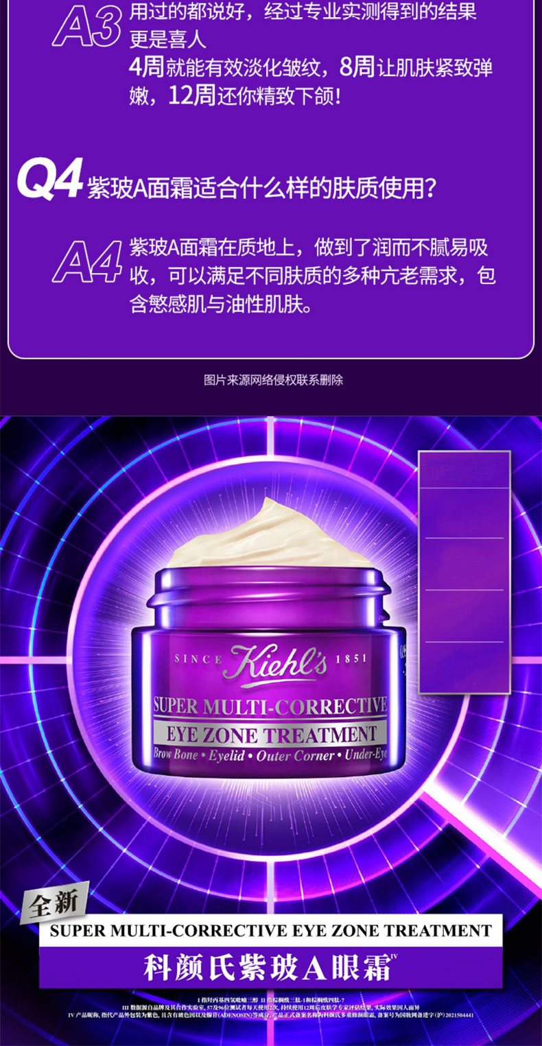 科颜氏紫玻A眼霜14ml,淡化黑眼圈细纹焕亮眼周