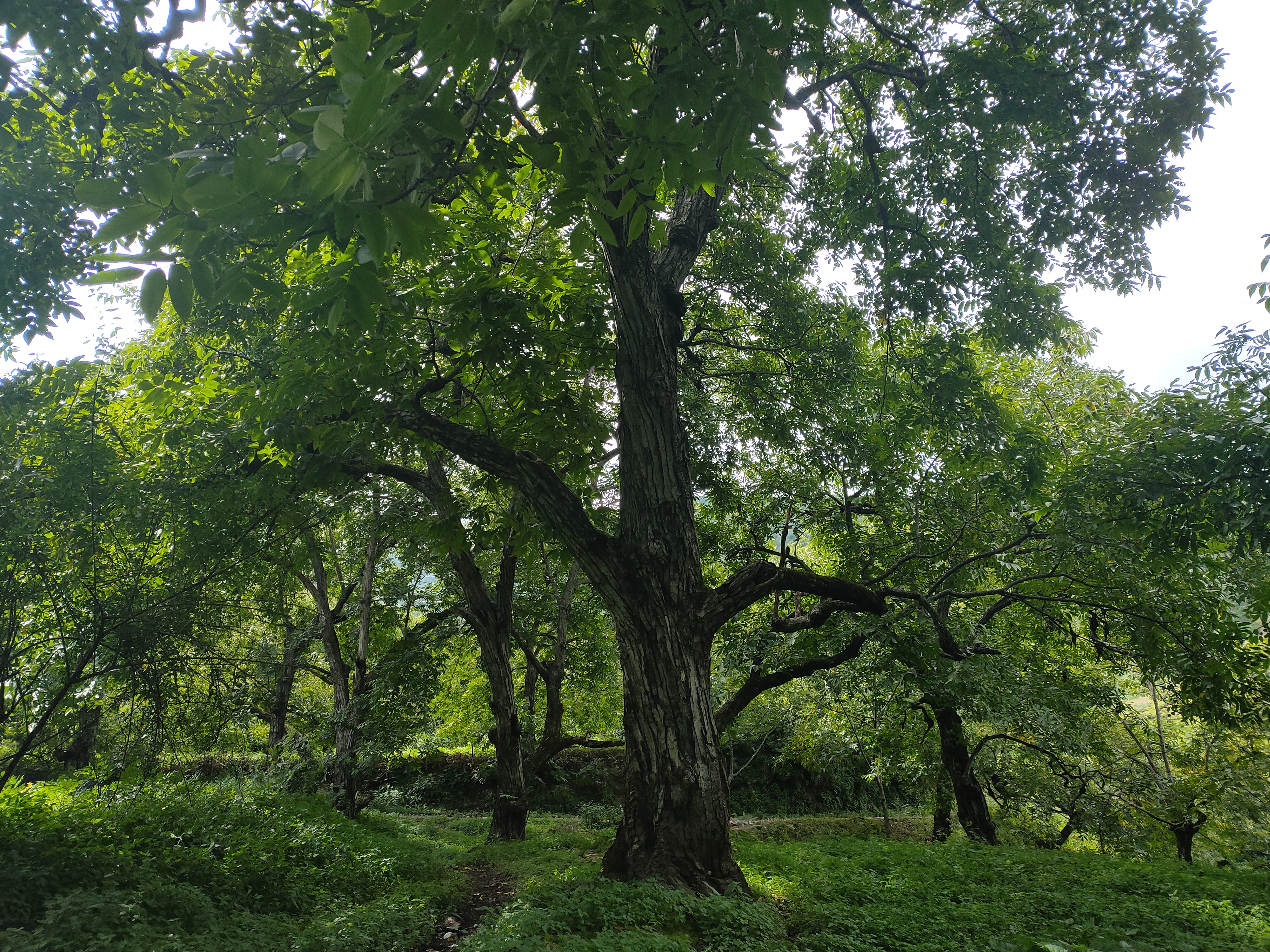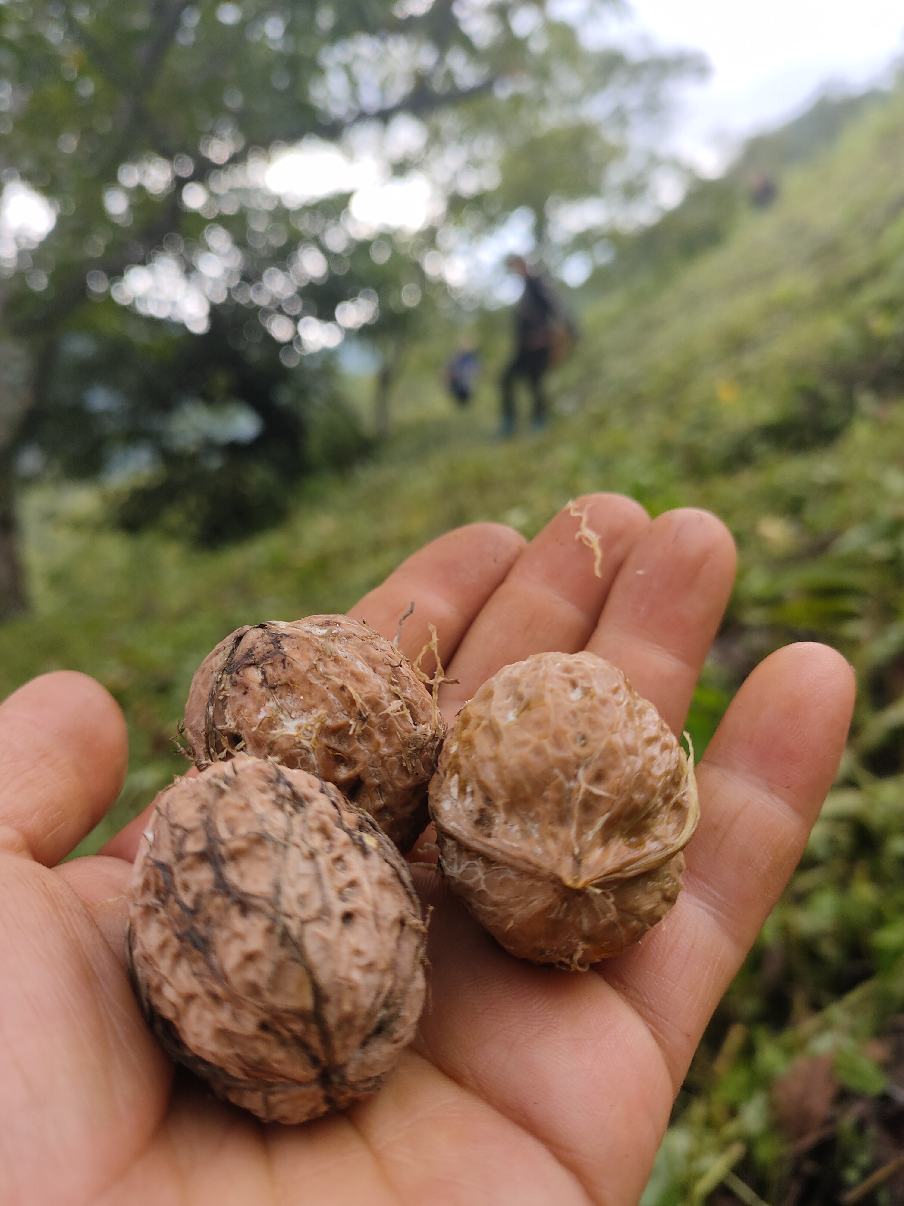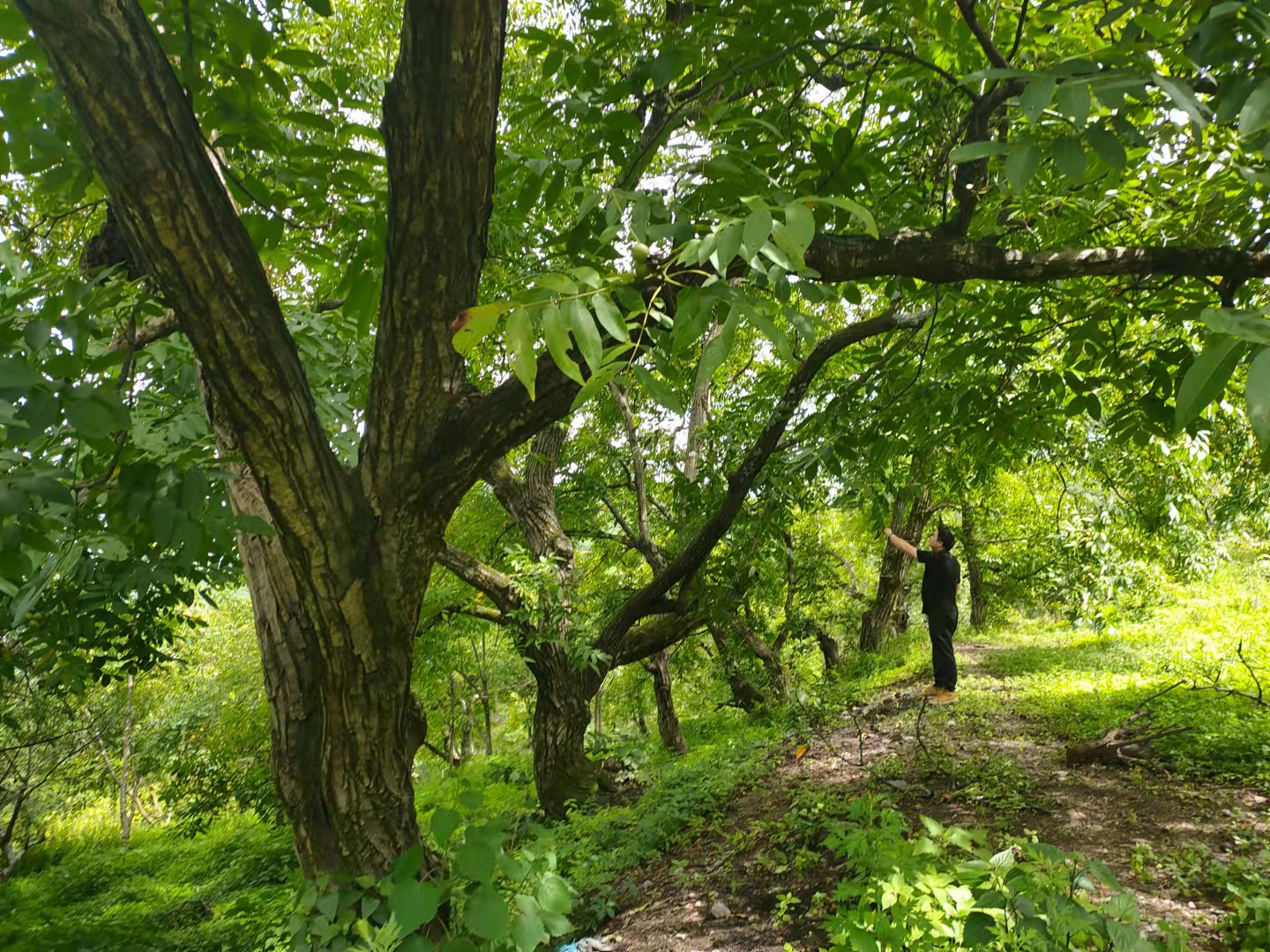 漫山遍野的核桃树,扛着打核桃的工具(长竹杆),牵着自家的畜,到山上打核桃去喽~