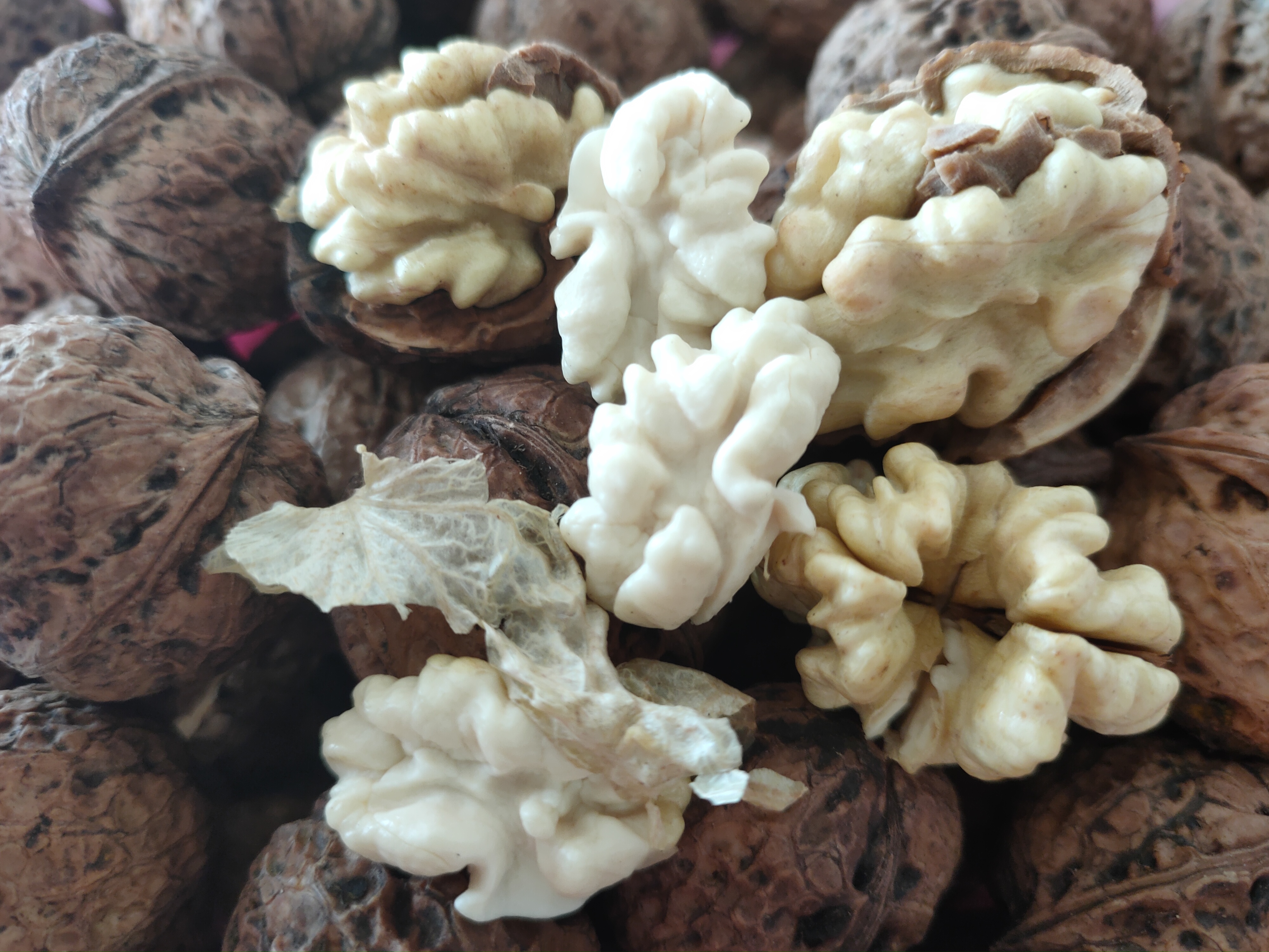 我们的干核桃,野生的核桃长的不太大,但个个饱满、皮薄、好剥、口感香甜,有木香味~