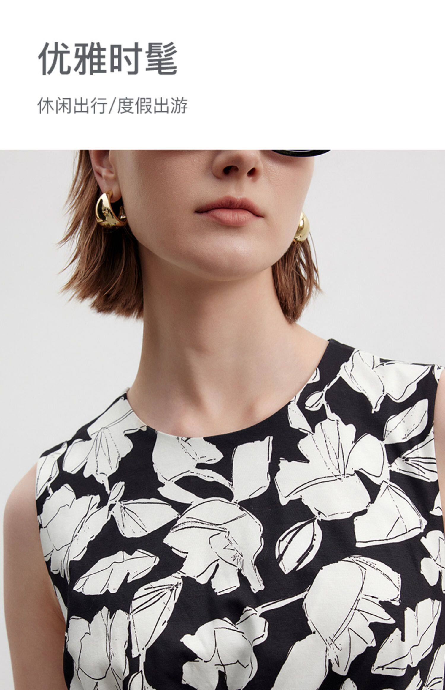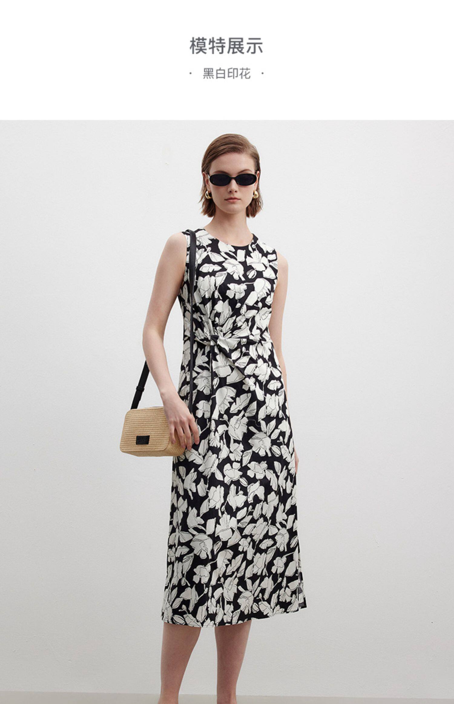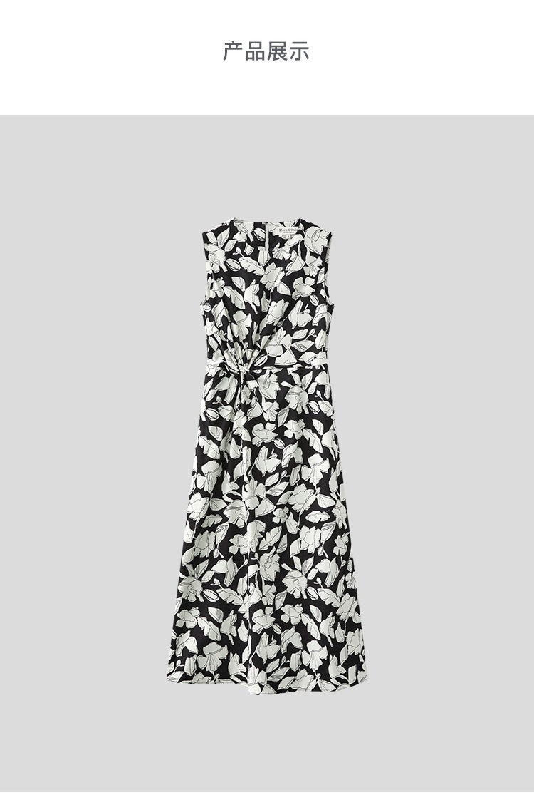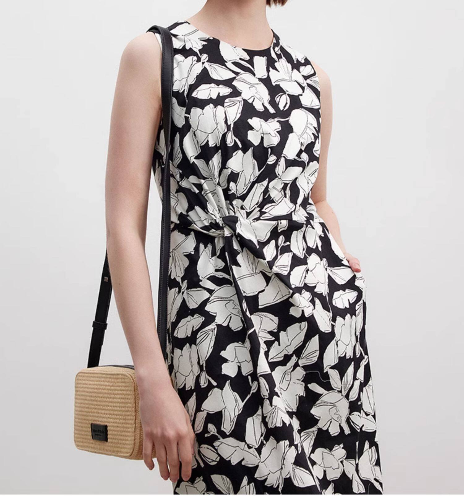 Marc O'Polo/MOP夏季新款好看黑白自然植物印花长款无袖连衣裙女
